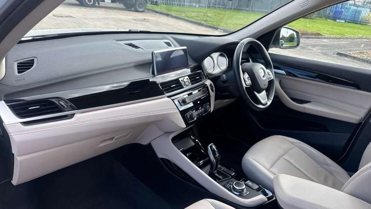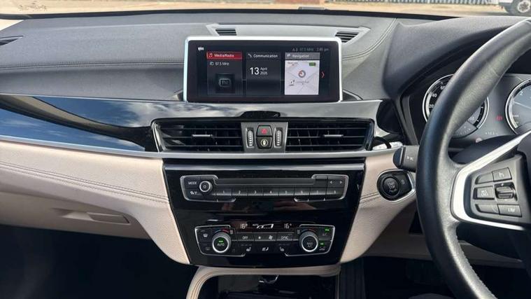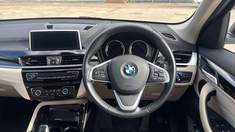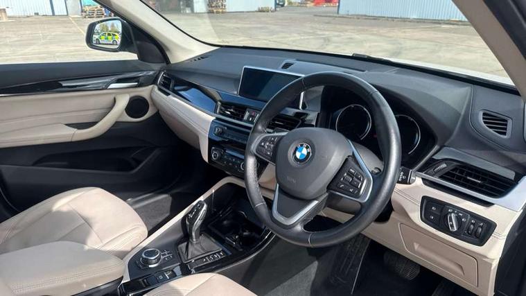 Active Guard incl speed limiting and lane departure functions with auto steering, and front collision warning with brake intervention, Ambient temperature display, Apple CarPlay, Arrow pointers, north up, direction of travel and perspective map displays, Attentiveness assist, Automatic tailgate opening, BMW ConnectedDrive, BMW Online services, BMW remote services, BMW Teleservices, Brake pad wear indicator in front and rear, Characteristic map controlled oil pump system, Cruise control with brake assist, Front axle single joint with specific axle kinematics to minimise drive influences on steering + provide increased rigidity agile driving behaviour, Front/rear park distance control (PDC), Instrument cluster with Black optic display featuring superimposed dials and 5.7" colour display, Instrument cluster with speedometer with miles per hour read out, tachometer and fuel gauge, Integrated hard drive with map data updates via USB interface, Lights on warning by audio warning signal when ignition is switched off, On board computer, Operation by iDrive with direct selection buttons and 8 programmable buttons, Optimum shift indicator, Outside temperature gauge, Park assist system, Personal Profile - automatic lock when driving away selectable, Real time traffic information, Rigidly mounted rear subframe - Multi link construction with separate spring / damper configuration and excellent driving characteristics, Service interval indicator, Servotronic PAS, Tyre puncture warning system, 12V compressor with integrated sealant injection bottle and hose, Aluminium lightweight construction including crankcase, Anti-roll bars, Balancer shaft, Double VANOS, Drive performance control with ECO PRO comfort + sport mode, High precision injection, Performance Control, Seven speed dual clutch automatic transmission (DCT), Standard suspension, Stop/start function, Turbocharger with Valvetronic, Twin tube gas filled shock absorbers with degressive characteristic curve, BMW professional radio includes amplifier power 100w, Two mide range speakers in door trims and two woofers as central bass speaker under front seats, DAB Digital radio, Adjustable headlights, Aero curtain, Automatically dimming rear view mirror, BMW Icon design LED daytime driving lights, Body colour bumpers, Body colour door handles, Body colour door mirrors, Direction indicator side lights integrated exterior mirrors, Dynamic brake lights, Electric windows - front and rear, with open/close fingertip control, anti-trap facility and comfort closing, Electrically adjustable door mirrors with aspheric on driver side, convex on passenger side with integrated indicators, Exclusive front door sill finishers with BMW designation, Exterior mirrors - electrically folding with anti-dazzle, Follow me home headlights, Front air guide finished in black silver, Front air inlets in matt black with silver finisher matt, Front and rear bumper system, Front bumper underbody protection in silver matt, Green tinted heat protection glazing glass, Headlight beam throw control, Heated door mirrors, Heated windscreen washer jets, High level third brake light, Kidney grille with 14 chrome matt aluminium fronted with black matt sides vertical bars, LED direction indicator lights in headlight eyebrow, LED front fog lights, Lightweight engineering, Model designation, Rain sensor including auto headlights activation, Rear bumper underbody protection in black silver with silver matt insert, Rear fog lights, Rear window aerial, Rear window wash/wipe, Reversing light in rear light cluster, Roof mouldings in matt black, Shark fin antenna, Sill cover matt black with matt silver insert, Single chrome exhaust tailpipe, Two eye face design on light, Visible VIN plate, Welcome lighting, 12v power point in centre console, 2 cup holders in front, 3 rear headrests, 3 spoke sport leather steering wheel, 40:20:40 split folding rear bench seat, Boot light, Centre armrest in 20 degree part rear seat backrest, Child seat ISOFIX attachment for two outer rear seats and front passenger seat with anchorage points, Conditioned based service, Dakota leather upholstery with perforation and contrast stitching, Driver and front passenger heated seats, Driver/front passenger seat backrest back with luggage net, Dual zone automatic air conditioning, Four grab handles integrated in roof linings, Front and rear side armrests integrated into door trim, Front centre armrest/sliding cover, Front centre interior light over interior mirror and rear centre automatic interior light when door is opened/ignition switched off or via remote key, Front/rear adjustable head restraints, Illuminated glovebox, Leather gearknob/gaiter/handbrake grip, LED ambient lighting in door trim, Luggage area underfloor compartment, Luggage compartment access via recessed handle below tailgate, Luggage compartment lighting, Luggage compartment loading edge with stainless steel insert, Manually adjustment steering wheel column, Multifunction steering wheel, Rear coded belt buckles, Standing free front adjustable armrest and fixed in different positions, Steering wheel gearshift paddles, Sunvisors with vanity mirrors and ticket pocket, Velour floor carpets, Extended lights pack - X1, Extended storage package - X1, ABS/EBD, Audio/visual collision warning system, Automatic Stability Control (ASC), Battery safety cut-off, BMW emergency call, Brake drying, Brake energy regeneration, Braking readiness, CBC - (Cornering brake control), Collision mitigation braking system, Crash Sensor - activates hazard/interior lighting + unlocks doors, Driver/Front Passenger airbags, Driver/front passenger side airbags, Dynamic brake control, Dynamic stability control + (DSC+), Dynamic Traction Control - DTC, Electronic differential lock control (EDLC), Electronic parking brake, Front and rear head airbags, Front passenger airbag deactivation, Front seatbelt force limiters, Front ventilated disc brakes, Hill start assist, Pyrotechnically pre-tensioned