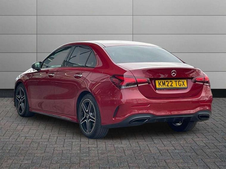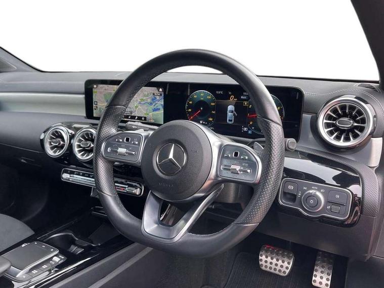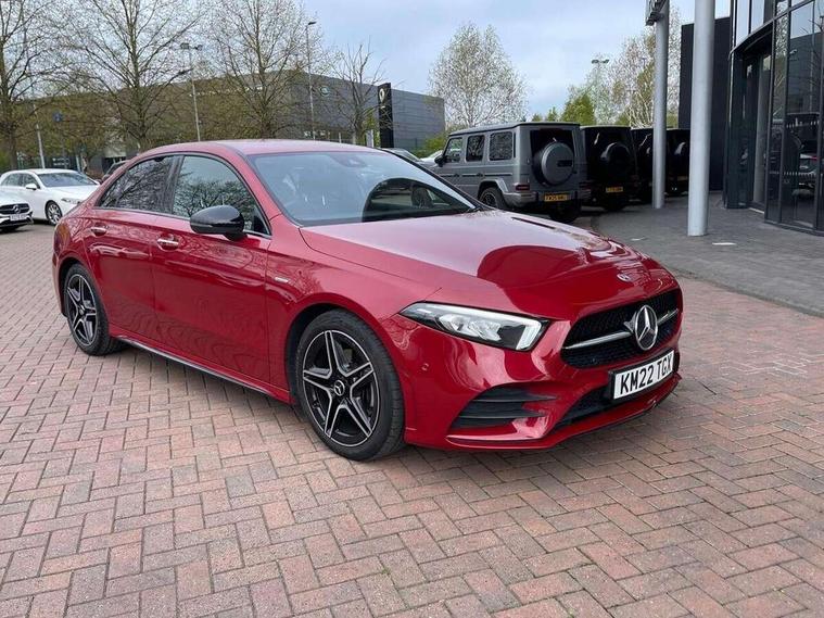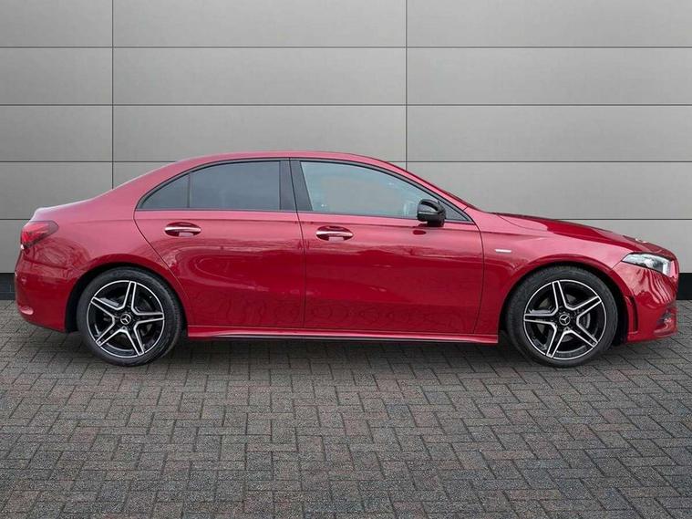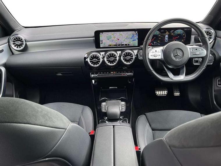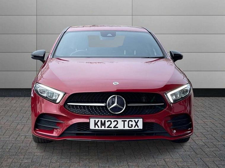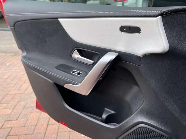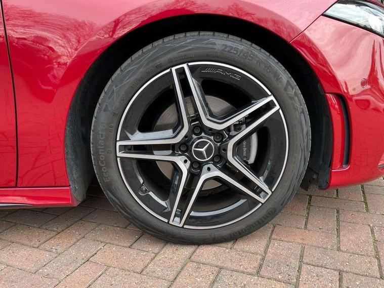 Ultrasonic sensors positioned in the front and rear bumpers, 10.25" Digital instrument cluster display screen, 10.25" media display, 180 degree rear view camera with parking guidelines, Active parking assist with visual and audible warning of detected obstacles, Attention assist, Brake pad wear indicator warning light, Car wash mode, Cruise control + speed limiter, Direct steering, Dual bluetooth interfaces, DYNAMIC SELECT with a choice of driving modes (ECO, Comfort, Sport and Individual), ECO start/stop function, Fluid level warning indicator for fuel, oil, coolant and washer fluid, Hard-disk navigation, Hey Mercedes Voice activation, Lamp failure indicator, Lane keeping system, Mercedes me connect including emergency call system, accident recovery, breakdown management and maintenance, Mercedes me remote services, Outside temperature gauge, Owners manual in English, Pre-installation for car sharing, Preinstallation for Mercedes Benz link, Service indicator (ASSYST), Smartphone integration with Apple CarPlay and Android auto, Speed sensitive power steering, Trip computer, Lowered comfort suspension, Rear axle torsion beam, 10 speakers, 2 USB ports (type C) in rear stowage compartment and one in front of center console, DAB Digital radio, MBUX multimedia system with DAB digital radio and touchpad including satellite navigation, Mercedes-Benz sound system - 100W, 4 Electric Front and Rear windows, Adaptive brake lights, AMG bodystyling - Front apron with splitter in chrome, rear apron with chrome trim and chrome visible trim elements in tailpipe, Automatic headlights, Black weather strip, Body colour bumpers, Body colour door handles, Body colour side skirt, Body coloured door mirrors, Electric adjustable and heated door mirrors with integrated LED side indicators, Exclusive diamond radiator grille, Exhaust system - Twin visible tailpipes in polished stainless steel, Headlamp assist automatic headlamp activation, Heated glass rear windscreen + timer control, High gloss black beltline, LED high performance headlamps with integrated LED daytime running lights, LED tail lamp, Privacy glass, Radio aerial, Rain sensing windscreen wipers with two sensitivity settings, Rear boot, Rear fog lights, Rear side wing doors, Third brake light featuring LED technology, Window line trim strip in high gloss black, 3 seat bench in 2nd row, 3 Spoke flat bottom leather multi function steering wheel with perforated leather in grip area, 40:20:40 split folding rear seats, Artico man-made leather/Microfibre Dinamica upholstery with contrast stitching in light grey, Auto Mercedes-Benz child seat recognition sensor, Black air vents with surround in silver chrome, Black roof lining, Brushed stainless steel sports pedals with rubber studs, Controller on centre console with chrome surround, Floor mats with black top stitching and embroidered edition logo and piping in light grey, Front centre armrest with storage compartment, Front seat backs luggage nets, Front seat cushion length adjustment, Galvanished gear shift paddles on steering wheel, Heated front seats, Height/reach adjustable steering column, Illuminated front door sills with changeable cover, Interior lighting - 64 colour Ambient lighting, Interior mirror with reading lamps in black and frameless, ISOFIX and top tether child seat fixing points in two outer rear seats, Manual height adjustable front seats, Rear armrest with 2 cupholders, Rear head restraints, Seat occupancy sensor for front passenger seat, Single front passenger seat, Sports seats with adjustable head restraints, Stowage compartment in centre console with retractable cover, Sunvisors with illuminated vanity mirrors, Touchpad on center console, Twin front cupholders, Two zone thermotronic luxury automatic climate control, Light and sight pack - A Class, Mirror package - A Class, Night pack - A Class Saloon/Hatchback, Seat comfort pack - A Class, 3 rear 3 point seatbelts, ABS with Brake Assist, Active bonnet, Active brake assist includes forward collision warning system with autonomous braking, Adaptive brake assist with hold function and hill start assist, Black seatbelts, Childproof locks manually operated for rear doors and electrically operated for rear power windows, Crash responsive emergency lighting, Driver and passenger head and side airbags, Drivers knee airbag, Dual stage driver/passenger airbags, Electronic parking brake, ESP curve dynamic assist, ESP with ASR, Front and rear seatbelt reminder, Front brake callipers with Mercedes Benz lettering, Tyre pressure monitoring system, Warning triangle and first aid kit, Window airbags, Alarm system/interior protection/immobiliser, Keyless entry lock/unlock, Keyless Go, Remote central locking and crash sensor with emergency opening function, Urban guard vehicle protection system with immobiliser and interior protection, Matrix look light longitudinal grain aluminium trim element, 18" AMG 5 twin spoke light alloy wheels aerodynamically optimised painted in black with highsheen finish, Summer tyres, Tirefit sealant kit,