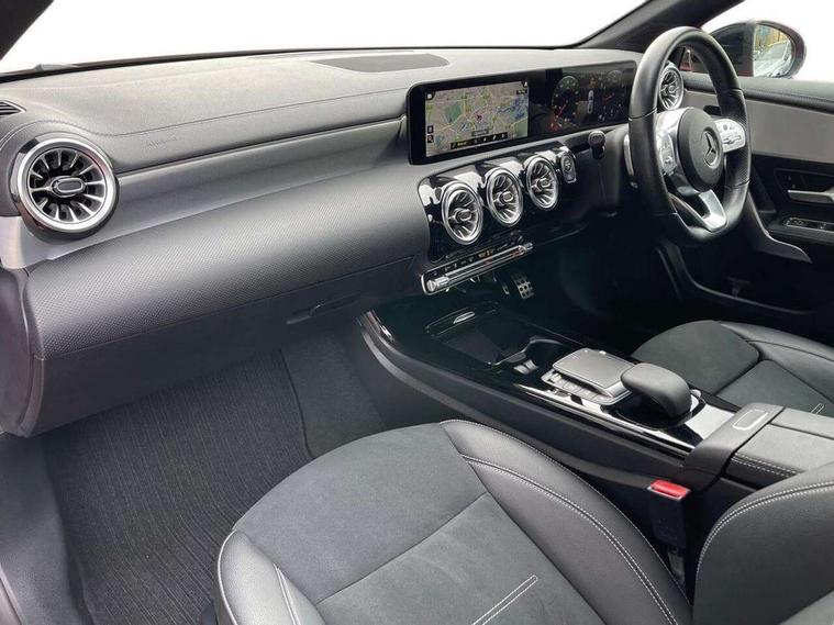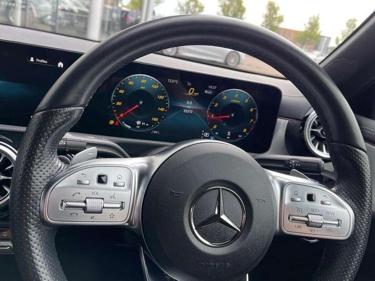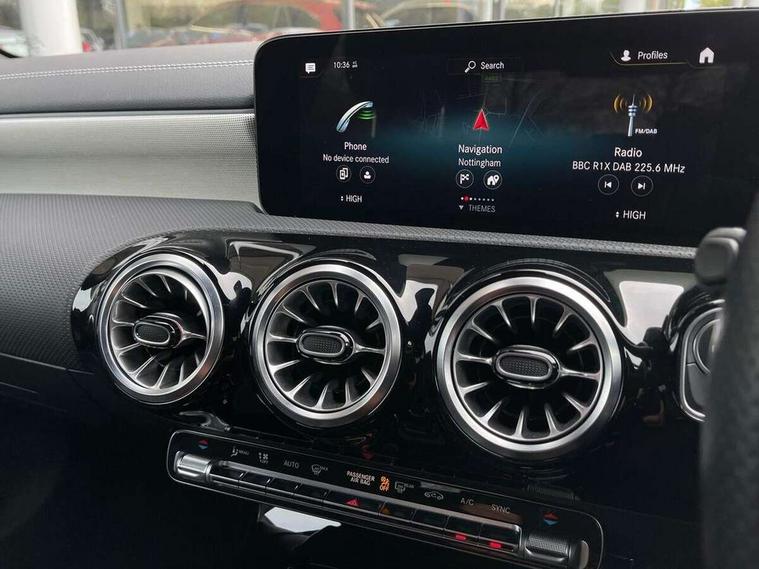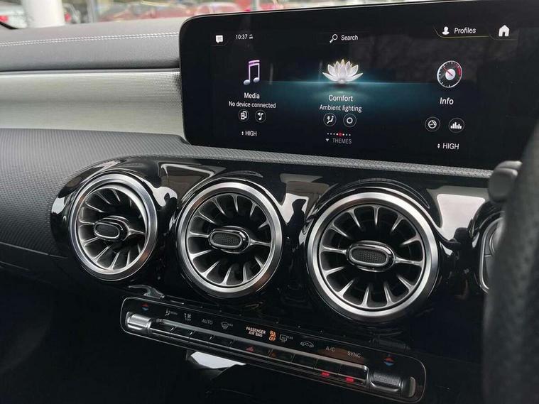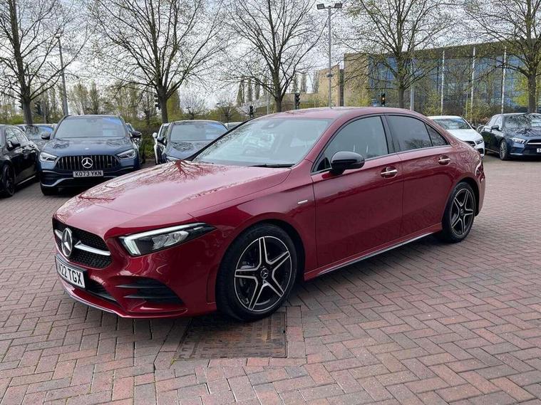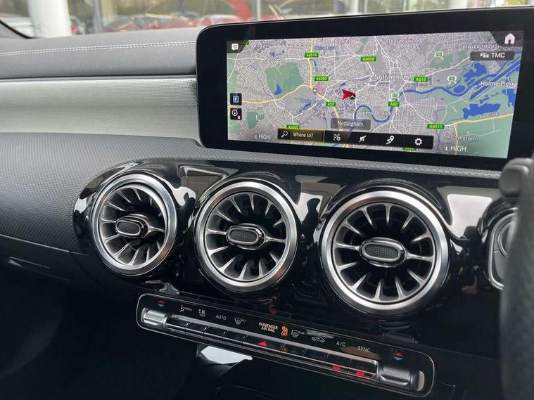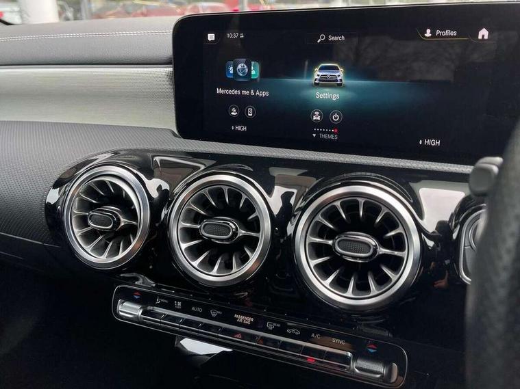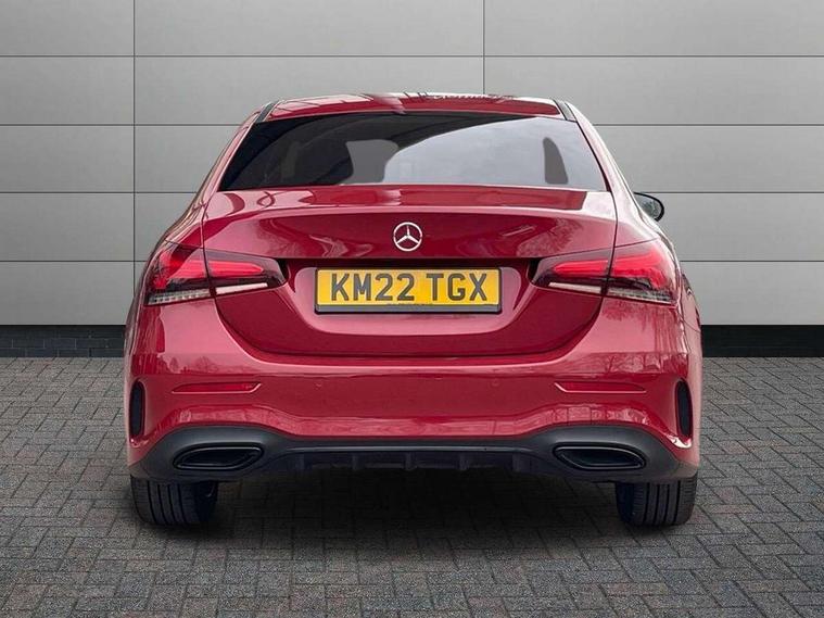 Ultrasonic sensors positioned in the front and rear bumpers, 10.25" Digital instrument cluster display screen, 10.25" media display, 180 degree rear view camera with parking guidelines, Active parking assist with visual and audible warning of detected obstacles, Attention assist, Brake pad wear indicator warning light, Car wash mode, Cruise control + speed limiter, Direct steering, Dual bluetooth interfaces, DYNAMIC SELECT with a choice of driving modes (ECO, Comfort, Sport and Individual), ECO start/stop function, Fluid level warning indicator for fuel, oil, coolant and washer fluid, Hard-disk navigation, Hey Mercedes Voice activation, Lamp failure indicator, Lane keeping system, Mercedes me connect including emergency call system, accident recovery, breakdown management and maintenance, Mercedes me remote services, Outside temperature gauge, Owners manual in English, Pre-installation for car sharing, Preinstallation for Mercedes Benz link, Service indicator (ASSYST), Smartphone integration with Apple CarPlay and Android auto, Speed sensitive power steering, Trip computer, Lowered comfort suspension, Rear axle torsion beam, 10 speakers, 2 USB ports (type C) in rear stowage compartment and one in front of center console, DAB Digital radio, MBUX multimedia system with DAB digital radio and touchpad including satellite navigation, Mercedes-Benz sound system - 100W, 4 Electric Front and Rear windows, Adaptive brake lights, AMG bodystyling - Front apron with splitter in chrome, rear apron with chrome trim and chrome visible trim elements in tailpipe, Automatic headlights, Black weather strip, Body colour bumpers, Body colour door handles, Body colour side skirt, Body coloured door mirrors, Electric adjustable and heated door mirrors with integrated LED side indicators, Exclusive diamond radiator grille, Exhaust system - Twin visible tailpipes in polished stainless steel, Headlamp assist automatic headlamp activation, Heated glass rear windscreen + timer control, High gloss black beltline, LED high performance headlamps with integrated LED daytime running lights, LED tail lamp, Privacy glass, Radio aerial, Rain sensing windscreen wipers with two sensitivity settings, Rear boot, Rear fog lights, Rear side wing doors, Third brake light featuring LED technology, Window line trim strip in high gloss black, 3 seat bench in 2nd row, 3 Spoke flat bottom leather multi function steering wheel with perforated leather in grip area, 40:20:40 split folding rear seats, Artico man-made leather/Microfibre Dinamica upholstery with contrast stitching in light grey, Auto Mercedes-Benz child seat recognition sensor, Black air vents with surround in silver chrome, Black roof lining, Brushed stainless steel sports pedals with rubber studs, Controller on centre console with chrome surround, Floor mats with black top stitching and embroidered edition logo and piping in light grey, Front centre armrest with storage compartment, Front seat backs luggage nets, Front seat cushion length adjustment, Galvanished gear shift paddles on steering wheel, Heated front seats, Height/reach adjustable steering column, Illuminated front door sills with changeable cover, Interior lighting - 64 colour Ambient lighting, Interior mirror with reading lamps in black and frameless, ISOFIX and top tether child seat fixing points in two outer rear seats, Manual height adjustable front seats, Rear armrest with 2 cupholders, Rear head restraints, Seat occupancy sensor for front passenger seat, Single front passenger seat, Sports seats with adjustable head restraints, Stowage compartment in centre console with retractable cover, Sunvisors with illuminated vanity mirrors, Touchpad on center console, Twin front cupholders, Two zone thermotronic luxury automatic climate control, Light and sight pack - A Class, Mirror package - A Class, Night pack - A Class Saloon/Hatchback, Seat comfort pack - A Class, 3 rear 3 point seatbelts, ABS with Brake Assist, Active bonnet, Active brake assist includes forward collision warning system with autonomous braking, Adaptive brake assist with hold function and hill start assist, Black seatbelts, Childproof locks manually operated for rear doors and electrically operated for rear power windows, Crash responsive emergency lighting, Driver and passenger head and side airbags, Drivers knee airbag, Dual stage driver/passenger airbags, Electronic parking brake, ESP curve dynamic assist, ESP with ASR, Front and rear seatbelt reminder, Front brake callipers with Mercedes Benz lettering, Tyre pressure monitoring system, Warning triangle and first aid kit, Window airbags, Alarm system/interior protection/immobiliser, Keyless entry lock/unlock, Keyless Go, Remote central locking and crash sensor with emergency opening function, Urban guard vehicle protection system with immobiliser and interior protection, Matrix look light longitudinal grain aluminium trim element, 18" AMG 5 twin spoke light alloy wheels aerodynamically optimised painted in black with highsheen finish, Summer tyres, Tirefit sealant kit,