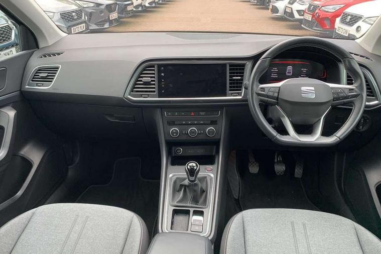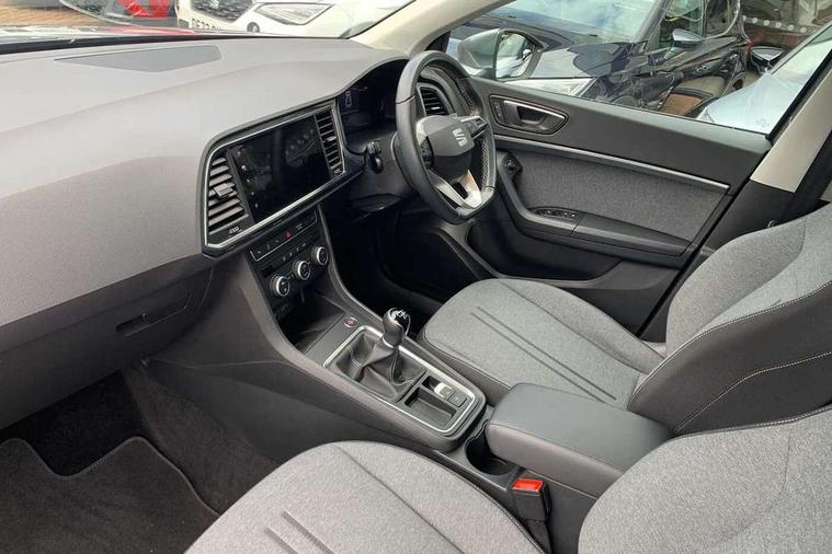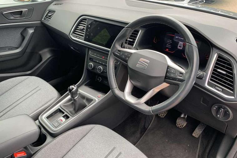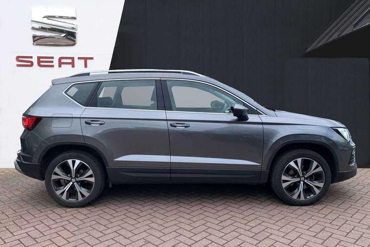 8" Digital cockpit, Colour multi-function on board computer display, Cruise control system with speed limiter, E-call, Outside temperature gauge, PAS, SEAT drive profile with driving experience button - Normal, Sport, Eco and Individual mode, steering and throttle response, Self parking functionality (includes front and rear parking sensors), Start/stop system, Tailgate, Trip computer, Wireless full link smartphone integration, Wireless phone charger, Steering wheel mounted audio/phone controls, Black wheel arch surrounds, Body colour bumpers, Chrome front grille frame, Chrome roof rails, Chrome side window trim, Daytime running lights, Door mirrors with welcome light silhouette, Dynamic headlight range control with self adjusting whilst driving, Electric adjustable/heated/folding door mirrors, Front and rear electric windows, Full LED headlamps with lens and LED front fog lamps with cornering function, LED rear tail lights with dynamic indicators, Rear fog lights, Rear side wing doors, Rear wash/wipe, Simulated exhaust pipes, Variable front intermittent wipers, 12V socket in front, 3 seat bench in 2nd row, 60/40 split folding rear seat, Cloth upholstery with front comfort seats, Drawer under right front seat, Dual zone climate control, Front and rear head restraints, Front centre armrest, Front seat back storage pockets, Height adjustable driver and passenger seat with lumbar adjustment, ISOFIX points in outer rear seats with top tether anchorage points, Leather steering wheel and gear knob, Rear armrest and easy back seat release mechanism from boot, Single front passenger seat, Interior lighting pack - Ateca, Navigation system pack with DAB - Ateca, 3x3 point rear seatbelts, ABS, Traction control system (TCS), Electronic stability control (ESC) and Electronic differential lock system (XDS), Airbags - Driver and front passenger airbag with deactivation, front side, two curtain and driver's knee airbags, Electric parking brake with auto hold function, Front and rear seatbelt reminder, Front assist with autonomous emergency braking, Hill hold control, Manual rear child locks, Single tone horn, Tiredness recognition system, Traction control, Tyre pressure monitoring system, Alarm, Keyless entry, Locking wheel bolts, Remote central locking, Chrome interior detailing, 18" Performance machined alloy wheels 36/2 in nuclear grey,