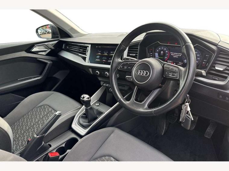 10.25" Digital instrument cluster display classis style instrument dials + speed, odometer, time, outside temperature, telephone menu + fuel level warning, Audi connect safety emergency and service including E-call, Audi drive select - power steering assistance + engine, Audi smartphone interface with connect compatible smartphone via USB directly MMI display + Nav, music, third party apps controlled via MMI controller, Automatic start/stop system, Bluetooth interface, Cruise control, Driver's information system, Electromechanical power steering, Lane departure warning system, Rear parking sensor, Service interval indicator, Speed limiter, Voice control system, Washer fluid level indicator, Dynamic suspension, 1 x SDXC card reader, 1 x USB type C and 1 USB type A charging points, DAB Digital radio, MMI radio plus with 8.8" colour MMI display screen and MMI touch, Auto dimming rear view mirror, Body coloured bumpers, Body coloured door mirrors, Electric front and rear windows, Electrically adjustable, heated, folding door mirrors with integrated LED side indicator, Front side air inlets in grained matt black and C frame in titanium black, Heat insulating glass windscreen and side windows, Heated rear windscreen, LED headlights with LED rear lights + dynamic rear indicators + headlight adjustment and high beam, turning light + LED daytime running lights, Radiator grille and rear diffuser in matt titanium black, Radiator protective grille frame in matt aluminium silver, Rain and light sensors, Rear fog lights, Rear wiper, Scandium grey tailpipe trim, Side front spoiler lips in grained matt black, 12V socket in centre console with two cup holders, 3 rear seats with headrests, 40:60 Split folding rear seat or folded fully, Door sill trims with aluminium inlay, Driver and passenger seat with manual height adjust with forward and backwards adjustment, Front head restraints, Front/rear floor mats, Height and reach adjustable steering wheel, ISOFIX child seat mounting for front passenger and outer rear seats including top tether attachment point of outer rear seats, Leather gear knob with aluminium trim, Leatherette handbrake grip, Luggage compartment light with front and rear reading lights, Manually adjustable lumbar support in front seats, Novum cloth upholstery with front sport seats, Titanium grey cloth headlining, Luggage compartment pack - A1, 3x3 point rear seatbelts, Audi pre-sense front with pedestrain and cyclist recognition, Brake assist function, Driver and front passenger airbag with front side and head airbags, Electronic Stability Control including ABS, EBD, ASR and EDL, Front and rear seatbelt reminder, Front passenger airbag deactivation switch, Hill hold assist, Seatbelt height adjustment for front seats, Seatbelt monitoring, Tyre pressure warning light, Warning triangle and first aid kit, Anti theft alarm, Anti theft wheel bolts and loose wheel warning, Immobiliser, Remote central locking with 2 foldaway keys, Aluminium trim for control switches, air vents and digital instrument cluster, Silver grey accent areas including air vents, door handle recesses and centre console in diamond paint finish, Slate grey inlays polygon structure in fine paint finish,