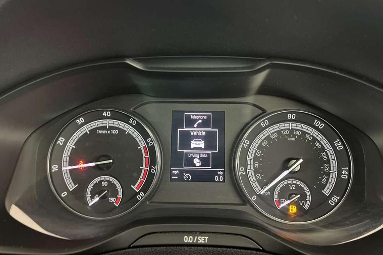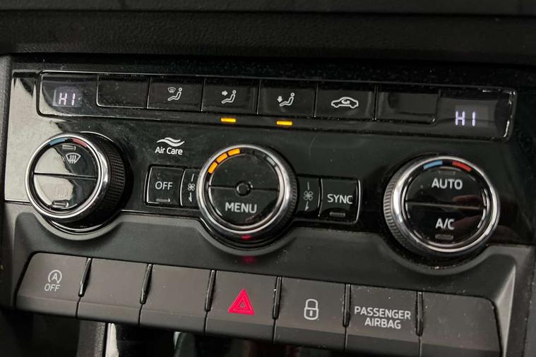 Driver alert system, Driver fatigue sensor, Driver profile selection, Electro-mechanical PAS, Outside temperature gauge, Service interval indicator, Start/stop system with regenerative braking, DAB radio with Bluetooth, SD card slot, USB connection, Acoustic glass, Aero front windscreen wipers with intermittent function, Automatic headlight control system, Body colour door mirrors and handles, Body coloured bumpers, Electrically adjustable heated folding and auto dimming door mirrors with boarding spots, Heated rear windscreen, LED rear lights with high functionality, Light assistant (coming/leaving home/tunnel light), Privacy glass, Safety reflectors on front doors, Third brake light, 1.5 litre bottle holders in driver and front passenger door panels, 12V socket in boot, 12v socket in front centre armrest with storage compartment and rear air vents, 2 Folding hooks and nets in boot, 2 Front readings lights for driver and passenger, 3 rear height adjustable headrests, 4 foldable roof handles with rear coat hooks, 4 lashing points on luggage floor, Backrest release, Cargo elements in boot, Chrome inner door handles, Driver and passenger seats height adjust, Dual zone climate control, Folding tables on the front seat backrests, Front seat and rear pockets, Height adjustable front three point seats belts with tensioners, Height/reach adjust steering wheel, Ice scraper, Illuminated and cooled glovebox, Illuminated luggage compartment, Isofix child seat preparation outer rear, Manual lumbar support for front seats, Net programme in boot, Pen holder, Pollen filter, Rear boot cover, Rear reading lights, Rear seats fixed folding and divided 60:40, Removable LED torch in the boot, Safety vest holder, Storage box in upper central dashboard closed, Storage net on centre console passenger side, Sunglasses storage compartment, Sunvisors with illuminated vanity mirrors, Umbrella under passenger seat, Airbags - Front side, head, knee and curtain, Automatic door unlocking in case of crash, Automatic fuel cut off in case of crash, Driver airbag, Electronic parking brake with auto hold function, Emergency rear braking signal, ESC including ABS, MSR, ASR, EDS, HBA, DSR, RBS, MKB and traction control, Front assist radar scanning of the space in front of the car with automatic braking, Hill hold control, Passenger airbag with switch-off function, Pedestrian monitor, Seatbelt reminder signalisation and pretensioner for all seats, Three point seatbelts rear, Two tone horn, Tyre pressure display, Tyre pressure monitor, Alarm with interior monitoring, back up horn and tilt sensor with safe function, Electronic engine immobiliser, Remote central locking with 2 remote folding keys, Chrome framed air vents, Storage on wheel cover,
