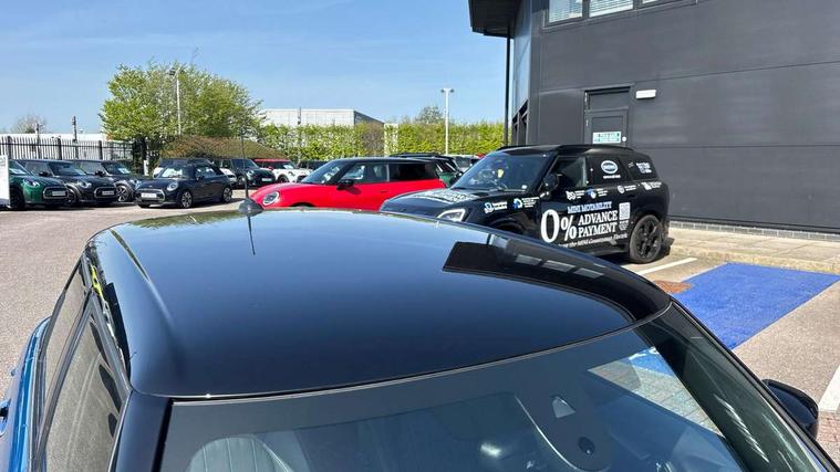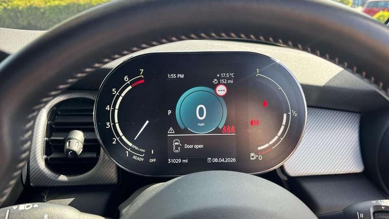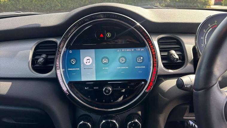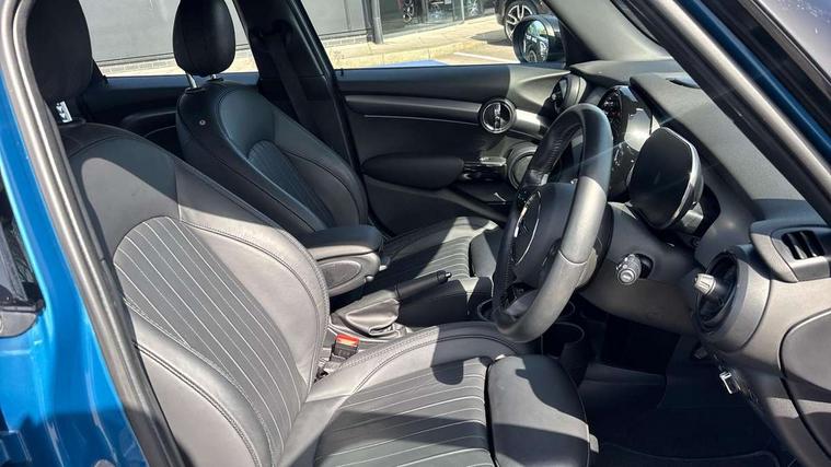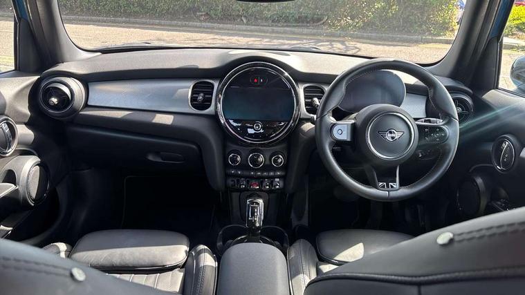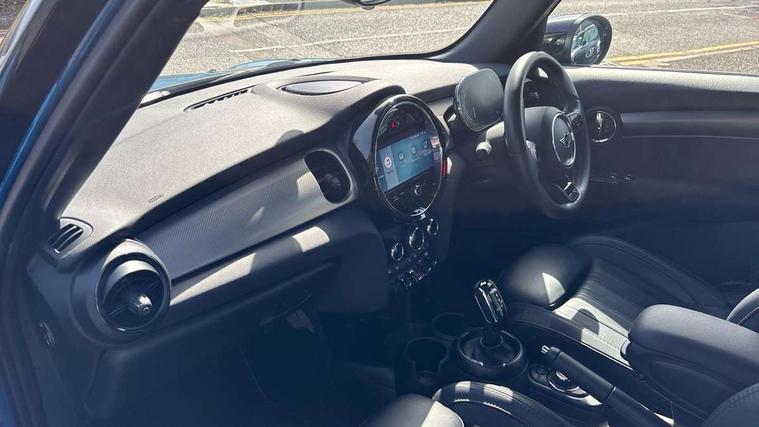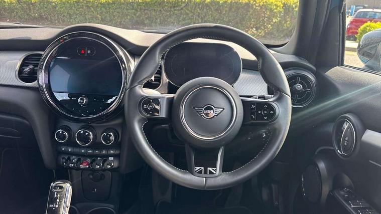 Apple CarPlay, Automatic start/stop function with brake energy recuperation, Compatible mobile phone bluetooth with audio streaming, Electro-mechanical speed dependant steering assistance, Flexible car sharing preparation, MINI Driving Modes - centre toggle switch to control driving setting (sport, mid and green), Mini E-call, MINI TeleServices, On board computer, Rear park distance control, Service interval indicator, Double Vanos system, Fully variable valve control, Gear change indicator display, High precision injection, Performance Control, Steptronic transmission with double clutch, 8.8" touchscreen with LED ring, FM tuner and DAB digital radio, 3rd brake light, Automatic headlight activation switch, Body colour fuel filler cap, Chrome line exterior - radiator grille bars, tailgate handle, lower front grille grating and rear central fog-light, Dynamic brake lights, Electric front+rear windows, Heated rear window, Heated windscreen washer jets, Metal door sill strips with MINI imprint, Model logo Cooper on right of tailgate, Rain sensor window wipers, Rear fog lights, Rear LED lights with union jack design, Rear side wing doors, Rear window wiper, Side scuttle panel with integrated indicator, Sun/heat protection glass, White indicator lenses, 12V Accessory socket in centre console, 3 seat bench in 2nd row, 4 lashing eyes in luggage compartment, 60/40 split folding rear seat, Anthracite headliner including grab handles and clothes hooks, Carbon black colour line - Knee roll and door armrest, Chrome interior highlights, Chrome line interior - air vents, gear lever base, door handles and speakers in doors, Cupholders, Front and rear head restraints, Front and rear isofix with front passenger airbag deactivation, Front and rear velour floor mats, Glove compartment, Height and length steering column adjustment, Interior lighting with 12 different colours across the dashboard, underneath door bezel with illuminated laser-engraved design on central display, Leatherette gearshift lever and handbrake gaiters, LED reading lights, vanity mirror lights, front foot well light and spotlight on front seats, Mechanical seat adjustment - forward/back & backrest for front seats and driver seat height adjust, MINI yours badge on exterior pillar, Multifunction steering wheel, Single front passenger seat, Storage compartments in doors, Sunvisors with vanity mirrors, Tool kit, Walknappa leather steering wheel with grey seam and MINI Yours badge on Piano Black lower steering wheel spoke, 3 point seatbelts on all five seats, 6 Airbags - front, side, head and seat belt tensioners, Anti-lock braking system (ABS), Child locks on rear doors, DSC - Dynamic Stability Control, Front and rear disc brakes, Hill start assist, Single tone fanfare horn, Tyre pressure monitoring system, Alarm system with tilt sensor, monitoring doors, bonnet interior and tailgate, Electronic vehicle immobiliser, Start/stop toggle with keyless go,