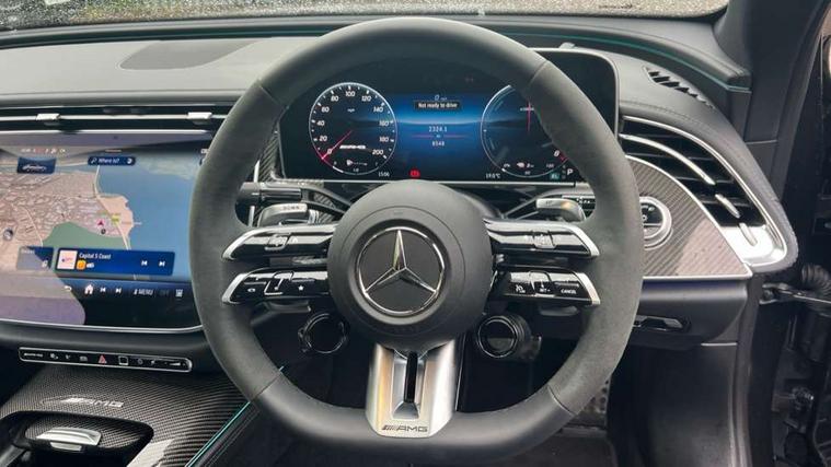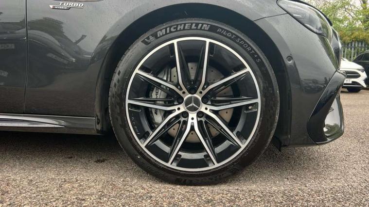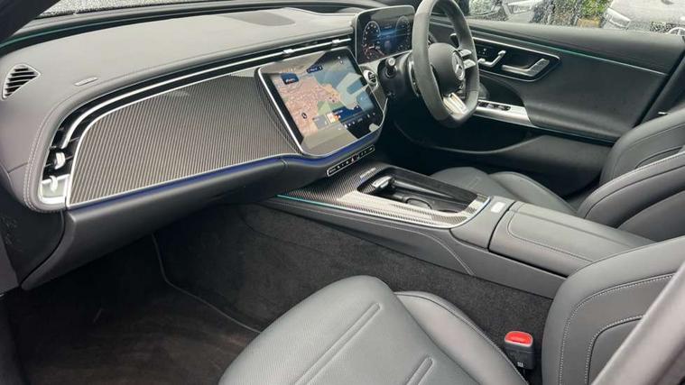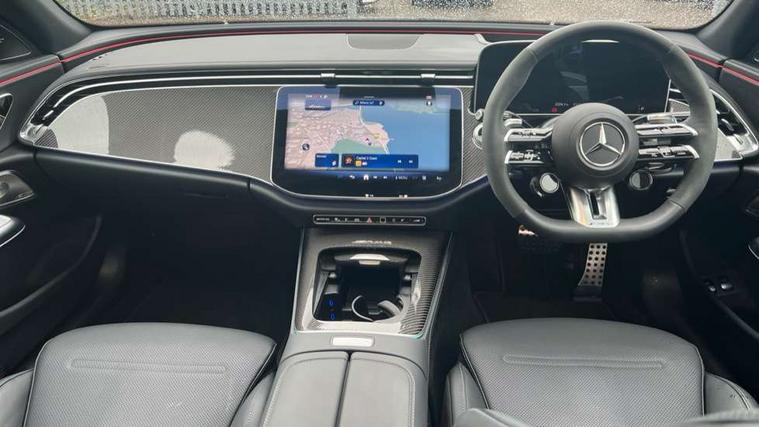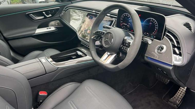 360 camera, 5G Communications module, Acoustic presence indicator, Active park assist with parktronic system, Attention assist, Brake wear warning display, Direct steer speed sensitive steering, ECO start/stop function, Fingerprint scanner, Fluorescent jacket for driver, Hard disc navigation, Head up Display, MBUX augmented reality for navigation, MBUX voice control, Mercedes-Benz emergency call system, Outside temperature display, Passive person presence reminder, Preinstallation for live traffic, Rear axle steering, Remote and charging services plus, Remote bootlid closing, Service indicator (ASSYST), Status display for rear seat belts in instrument cluster, Trip computer in multifunction display showing current fuel consumption, Wireless charging, Wireless smartphone integration with Apple CarPlay and Android auto, 66 litre fuel tank, AC charging, AMG SPEEDSHIFT TCT 9G 9 speed automatic transmission, Charging cable for household socket, DC charging, Mode 3 charging cable for public charging and domestic charging stations, Residual engine heat utilisation, Burmester 4D surround sound system, DAB Digital radio, MBUX multimedia system, Sound personalisation, 3rd brake light, Adaptive brake lights, Aerial integrated in rear window, AMG bodystyling, AMG boot lip spoiler, AMG exterior, AMG Real Performance Sound, Auto dimming driver's door mirror, Auto dimming rear view mirror, Digital air vent control, Electric folding door mirrors, Electric windows with one touch opening/closing and obstruction sensors, Electrically adjustable and heated door mirrors, Heat insulating privacy glass, Illuminated front door sills, interchangeable cover with 'AMG' lettering, Illuminated radiator grille, LED daytime running lights, LED digital light with adaptive highbeam assist plus, Panoramic sliding sunroof, Pre-installation for roof rail systems, Rear boot, Rear side wing doors, Surround lighting with logo projection, 3 seat bench in 2nd row, Active ambient lighting, AMG Carbon fibre centre console trim, AMG Centre console badge, AMG floor mats, AMG interior, AMG steering wheel buttons, Automatic child seat recognition sensor, Central stowage compartment with USB socket for use with Android Auto and Apple CarPlay, Courtesy lights in rear grab handles with reading light functionality, Folding rear seat backrest, Front centre armrest with stowage compartment, Glove compartment - lockable, air conditioned and illuminated, Head restraints for driver and front passenger (four-way adjustability) and in rear (two-way), Multicontour front seats with massage, Nappa leather upholstery, Roof liner in black fabric, Seat occupancy sensor for front passenger seat, Single front passenger seat, Sunvisors with illuminated vanity mirrors, THERMOTRONIC 4 zone automatic climate control, Acoustic comfort pack - E Class, Air balance pack - E Class, AMG night pack - E Class, Energizing plus package - E Class, Keyless Go comfort package - E Class, Leather pack - E Class, MBUX superscreen pack - E Class, Memory package - E Class, USB plus package - E Class, Winter pack - E Class, 3x3 point rear seatbelts, Active bonnet pedestrian safety measure which detects an impact and raises bonnet, Anti-lock braking system (ABS), Automatic front passenger airbag deactivation, Central airbag, Childproof locks manually operated for rear doors and electrically operated for rear power windows, Driver and front passenger airbags, Electronic parking brake, Electronic Stability Programme, Hill start assist, ISOFIX child seat attachment points two outer rear seats, Knee airbags, Pedestrian protection, Pre-Safe anticipatory safety system, Seat occupancy sensor for rear seats, Tyre pressure monitoring system, Warning triangle and first aid kit, Window airbags, Anti theft alarm system with preinstallation for collision detection, Central locking with interior switch, automatic locking and crash sensor with emergency opening function, Dashcam, Guard 360 degree vehicle protection plus, Interior monitoring system, Urban guard vehicle protection plus, AMG carbon fibre trim and centre console, AMG logo in centre console trim, Dashboard and door beltlines in Artico nappa look man made leather, Noise reduced tyre with foam absorber, Summer tyres, TIREFIT with tyre inflation compressor,