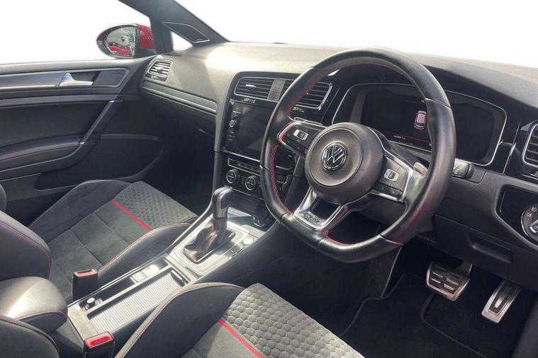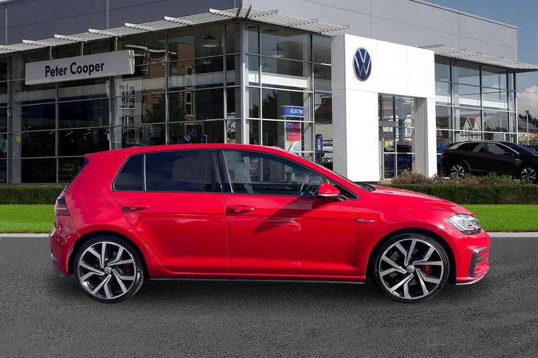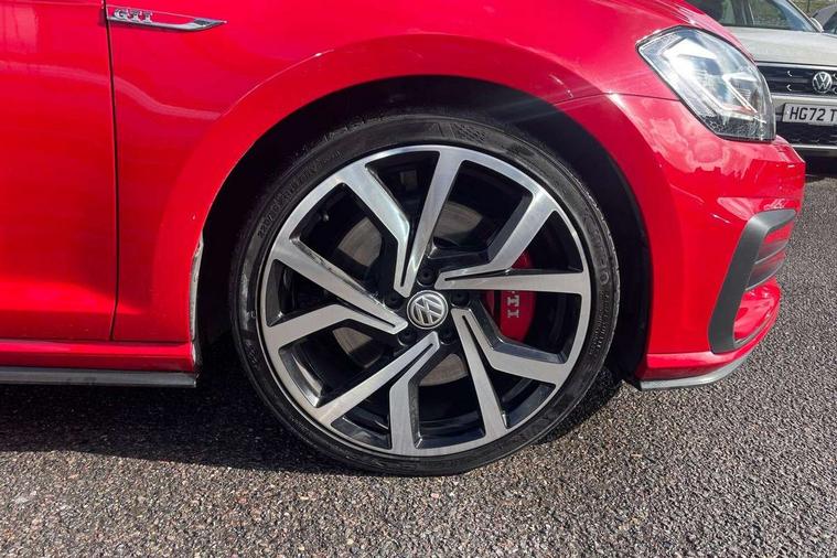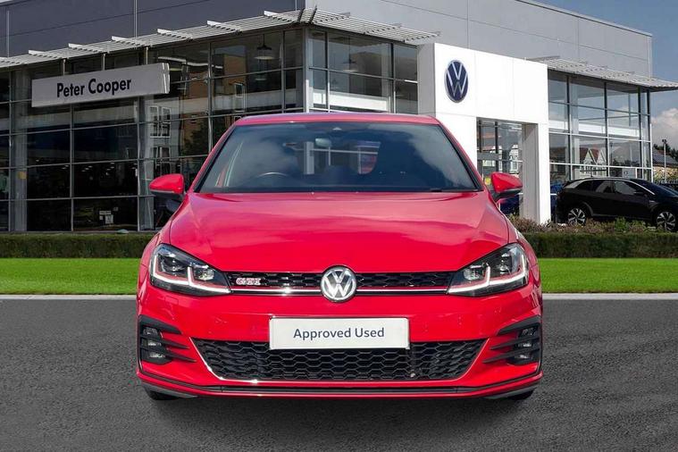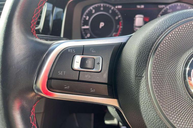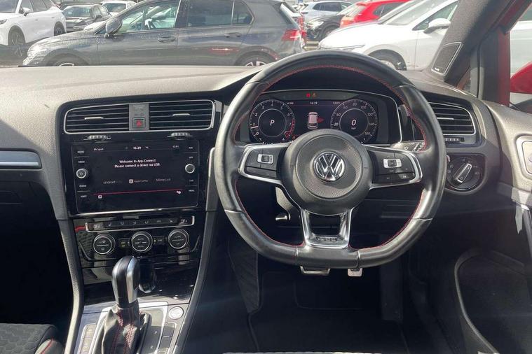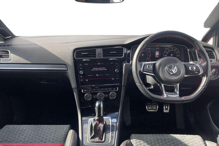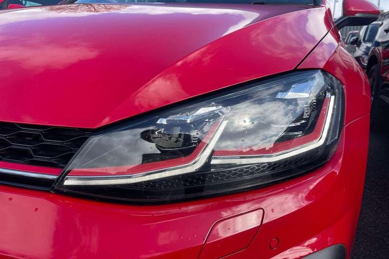 'Lights On' Reminder warning buzzer, ACC - Adaptive cruise control with front assist, forward collision warning, distance monitoring, city emergency brake and speed limiter, Active information display - 12.3" high resolution TFT display, Bluetooth telephone and audio connection for compatible devices, Brake pad wear indicator warning light, Driver alert system, Driving Mode Selection with four preset modes - Eco, normal, sport or individual modes, Multifunction computer with visual gear change recommendation for fuel consumption, Progressive steering, Push tank flap, Rear view camera, Speed limit display, Speedo, rev counter, electronic odometer, trip, service interval display, exterior temperature and fuel gauge, Stop/start system, Think blue trainer driver tips and journey analysis, Unique GTI instrument cluster, Warning buzzer and light for front seatbelts unfastened, Anti-tramp function, Battery regeneration during braking, Mechanical limited slip differential, Composition media system, DAB Digital radio receiver, Driver Personalisation profile selection, MP3/WMA compatability, Multi device interface (MDI) via USB connection, Premium USB cable in choice of either Apple or Android smartphone compatibility, SMS Functionality, Title and cover art display, USB and SD card connectivity, Volkswagen media control, 3D-LED tinted rear light clusters with indicator sweep function, Black front air intake and radiator grille with chrome insert, Body colour door handles, Body colour door mirrors with integrated indicators, Body colour rear roof spoiler, Dusk sensor + automatic driving lights, Electric front windows, Electric rear windows, Electrically adjustable and heated door mirrors, Extended sill strips flared, Front and rear unique GTI badging in red, Fully galvanised body, GTI logo in red on front and back, GTI logo lettering on front wings on right and left, Heated rear windscreen, High level 3rd brake light incorporating LED Technology, Honeycomb front air intake - Black, Honeycomb radiator grille with red stripe, LED daytime running lights incorporating red stripe, LED front fog lights, LED headlights with dynamic light assist, Rear fog lamp, Rear number plate lights incorporating LED technology, Rear window aerial, Rear window wash/wipe with intermittent wipe, Reflectors in all doors, Uniquely shaped front/rear bumpers, Windscreen wipers/ intermittent wipe + 4 position delay, 12V socket in luggage compartment, 3 rear headrests, 4 load lashing points in luggage compartment, 60/40 split folding rear seat backrest, Bag hook in luggage compartment x 2, Black rear diffuser with chrome exhaust tailpipes in left and right, Black roof lining, Climate control - 2 zone electronic air conditioning with automatic air recirculation and allergy filter, Cooled glovebox, Cover for storage compartment in centre, Dust/pollen filter, Front + rear carpet mats, Front centre armrest with storage compartment and two rear air vents, Front seat back storage pockets, Grab handles front x 2, rear x 2 with integrated coat hooks, Height and reach adjustable steering wheel, Illuminated vanity mirrors, Interior light delay, Isofix preparation for 2 rear child seats, Leather gear knob and handbrake grip, Load through provision with rear centre armrest and cupholders x2, Luggage compartment lighting, Overhead storage box, Stainless steel pedals, Storage box in luggage compartment, Storage compartment in roof console with cover, Storage compartments in centre console, Storage compartments in front doors, Storage compartments in rear doors, Stowable luggage compartment cover, Sun visors, Three spoke multifunction leather steering wheel with GTI logo and red stitching including gearknob gaiter, Variable boot floor, height adjustable and removable, Ambient lighting pack - Golf, Convenience Pack - Golf, Mirror pack - Golf, Winter pack - Golf, 3 rear three point seatbelts, Airbags - Driver's and front passenger's, curtain airbag, Driver's knee, front side impact and passenger's airbag deactivation switch, Anti-lock Braking System (ABS) with Hydraulic Brake Assist (HBA), Automatic post collision braking system, Child locks on rear doors, Driver/Passenger optimised head restraints, Electronic parking brake with auto hold, Electronic stability control (ESC) including Electronic differential lock (EDL) and ASR (Traction control) with deactivation via infotainment system, Front ventilated disc brakes and rear disc brakes, Larger diameter brake discs and GTI logo on red brake calipers, Pre crash preventive occupant protection, Three point height adjustable front seatbelts with tensioners, Tyre pressure loss indicator, Alarm with interior protection and deactivation via infotainment system, Electronic engine immobiliser, Keyless entry with start/stop button on centre console, Chrome plated air vent surround, Chrome plated electric mirror adjustment switch surround, Chrome-plated light switch surround, Honeycomb black decorative inserts, Piano black decorative inserts in centre console, Steel space saver spare wheel,