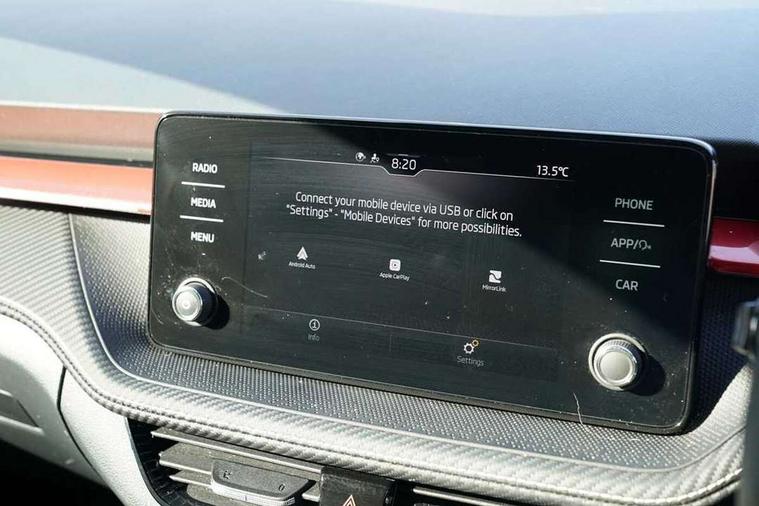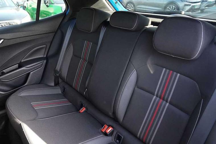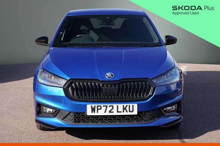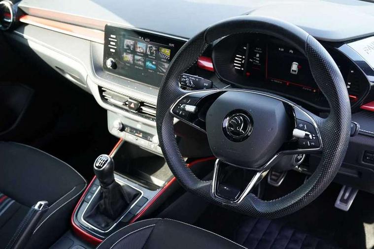 Bluetooth connection, Driver alert system - DAS, Electromechanical power steering, Exterior temperature gauge, Service interval indicator, 2x USB-C in the front (for data transmission and charging), 6 Speakers (4 in front and 2 in rear), Auxiliary socket for external MP3 player, Bolero radio with 8" colour display, DAB digital radio reception, Auto dimming rear view mirror, Basic rear light, Black radiator grille, Body coloured bumpers, Door mirror integrated indicators, Electrically adjustable and heated door mirrors, Front and rear electric windows, Front window wiper intermittent control, Headlight range control - Automatic, Ice scraper in fuel cap, LED daytime running lights with coming and leaving home feature, Monte Carlo badging, Privacy glass, Rear LED fog light, Rear side wing doors, Rear window wiper with washing nozzles, Roof mounted spoiler, SKODA tailgate lettering in black, Sports bumpers, Third brake light, 3 rear headrests, Aluminium pedals, Backrest split and folding, Black headlining, Central console with removable cup holder and storage box, Chrome handbrake release button, Fabric/artificial leather upholstery, Front sports seats, Gearshift knob/handle in leather, Hand brake lever handle in leather, Height adjustable front headrests, Height adjustable steering wheel, ISOFIX and TopTether anchorage points to the outer rear seats, ISOFIX and TopTether on the front passenger seat, Luggage compartment lighting, Metallic painted red central console cover, Metallic red interior door handles, Monte Carlo door sills, Pollen filter, Rear seat bench unsplit, Single front passenger seat, Sun visors with mirror and airbag label on passenger side, Textile floor mats, Ticket holder, Umbrella in drivers door, Ambient lighting pack 2 - Fabia Hatchback, 3-point height adjustable front seats belts with pretensioner and force limiter, Automatic warning lights in case of crash, Driver and passengers airbag with switch off function, e-Call+, ESC including ABS, MSR, ASR, EDS, HBA and XDS, Front and rear seat belt warning, FRONT ASSIST (AEB City and AEB Inter Urban), Front side airbags, Head airbags, One tone horn, Pedestrian protection, Three rear 3-points safety seat belts with pretensioner and force limiter including stop function for outer rear seat belts, Tyre pressure monitoring system, Anti-theft alarm system including immobiliser, interior monitoring, backup horn, and towing protection, Carbon effect door and side trim panels, Carbon effect lower decorative trim with white stitching, Red metallic upper decorative trim, Anti-theft wheel bolts protection, Super-low rolling resistance tyres,