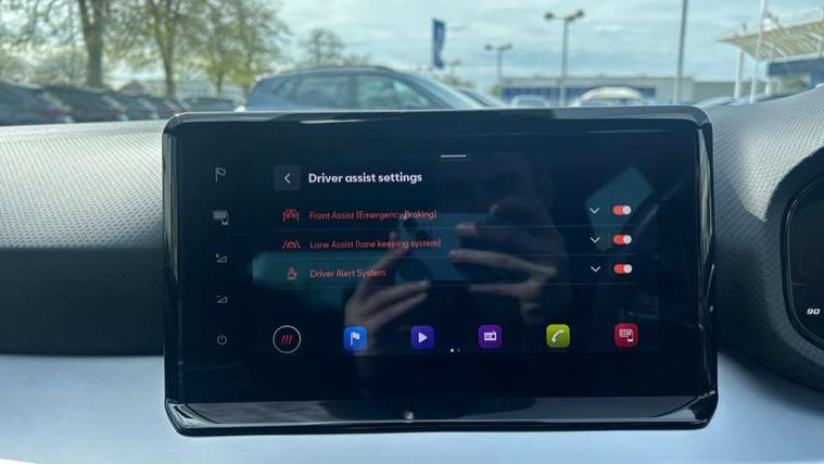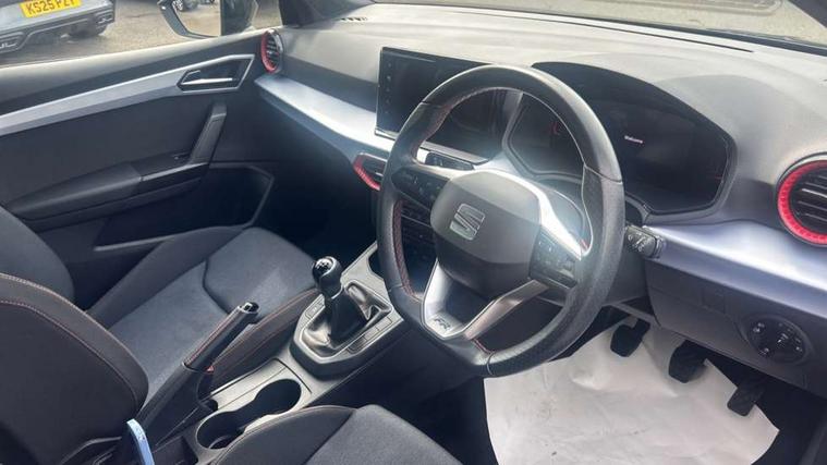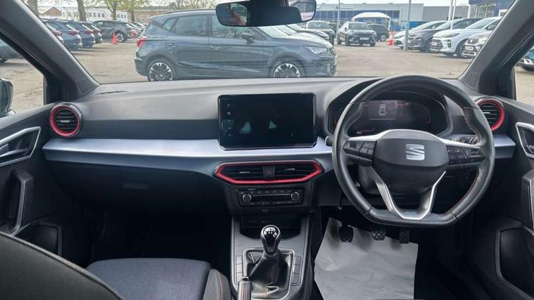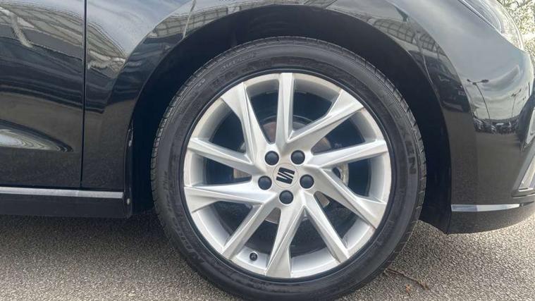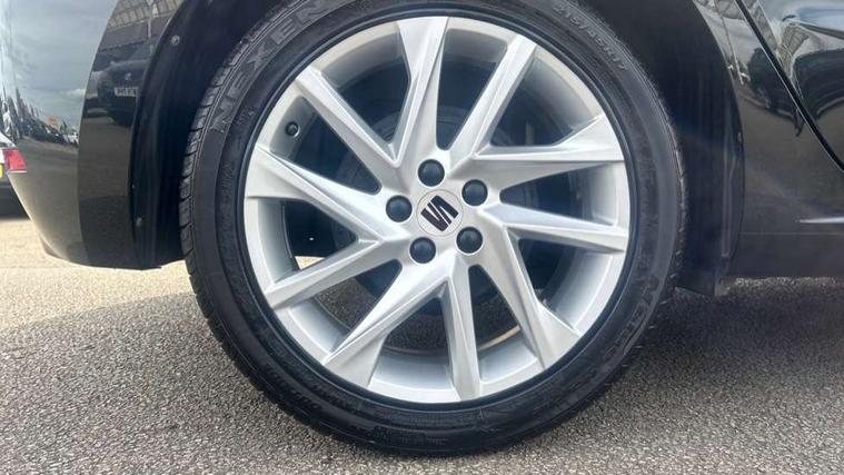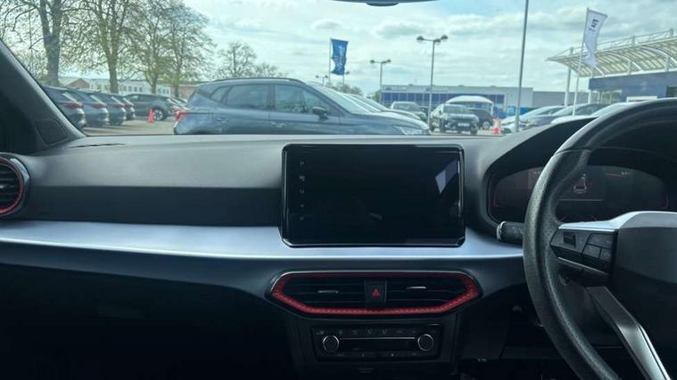 'Lights On' Reminder warning buzzer, 8" Digital cockpit, 9.2" touchscreen navigation system with type C USB socket, Voice control and DAB/AM/FM radio, Auto start and stop system, Bluetooth audio streaming with handsfree system, Digital clock, E-call, Full link smartphone integration with mirror link, wireless apple carplay, Google android auto + USB Type C cable for apple and android devices, Lane assist, Low fuel warning light, Outside temperature gauge, Power Steering, Seat connect with safety, service, remote and online, SEAT drive profiles and ECO function, SEAT logo boot release, Speed limiter, Trip computer, Sports suspension, Auxiliary input socket, Radio/MP3 player, SD card slot, Steering wheel mounted controls, Anti theft roof antenna, Auto dimming rear view mirror, Automatic rain sensing wipers, Black door mirrors, Body colour bumpers, Body colour door handles, Brilliant black window surrounds, Dark tinted rear windows, Electric adjustable/heated/folding door mirrors, Electric front windows, Electric headlight adjustment, Electric rear windows, Front/rear fog lights, FULL LED automatic headlights with dynamic headlight range control, coming and leaving home, LED daytime running lights, LED tail lights, Rear side wing doors, Rear spoiler with FR twin exhausts, Rear wiper, Third brake light, 3 seat bench in 2nd row, 60/40 split folding rear seat, Ambient interior lighting, Chrome detailing and black headlining, Cloth upholstery, Dual zone climate control with combination filter, Front courtesy lights, Front cupholders x 2, Front reading lights, Gear shift indicator, Glovebox, Height adjustable front and rear headrests (five), Height adjustable front seats, Height/reach adjust steering wheel, Illuminated air vent surrounds, Illuminated boot, Instrument lighting with brightness control, Isofix, Leather multifunction flat bottomed sports steering wheel, Passenger sunvisor, Single front passenger seat, Sports seats, Sunvisors with mirror and driver side card holder, 3 point seatbelts on all 3 rear seats, ABS, Active front headrests, Child locks on rear doors, Electronic stability control, Energy recovery system, Front assist forward collision warning and autonomous emergency braking, Front driver and passenger side airbags with curtain airbag and front passenger airbag deactivation, Hill hold control, Multi-Collision braking, Seat belt reminder for front and rear seats, Tiredness recognition system, Tyre pressure monitoring system, Electronic engine immobiliser, Locking wheel bolts, Perimeter alarm and interior monitoring with backup horn and tow away protection, Remote central locking + deadlocks, 17" alloy wheels in Brilliant silver,