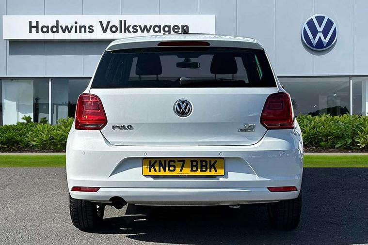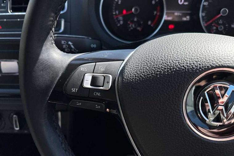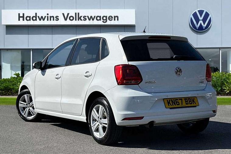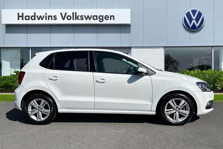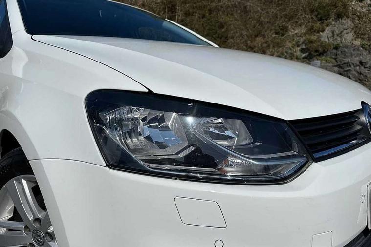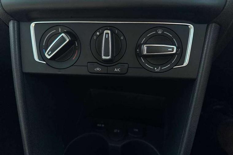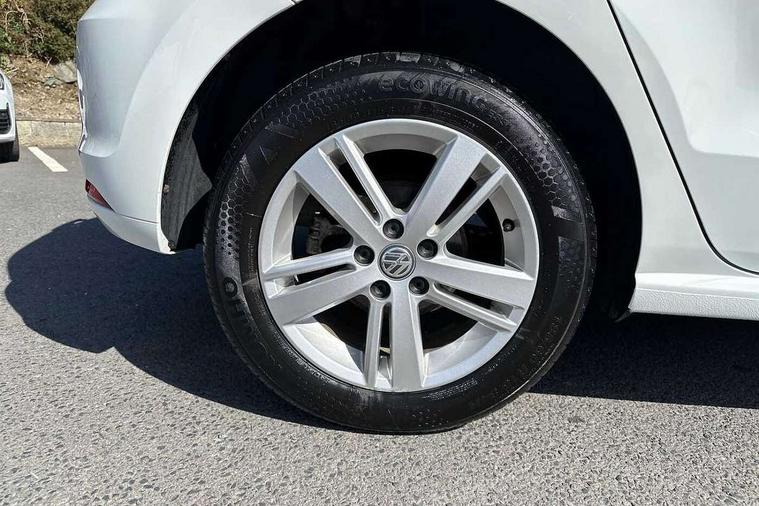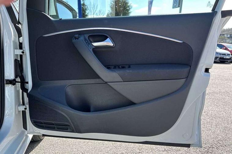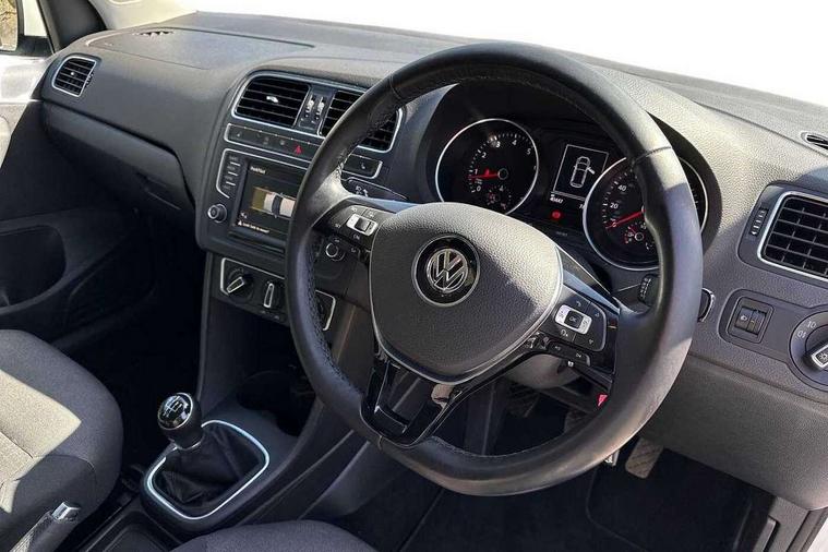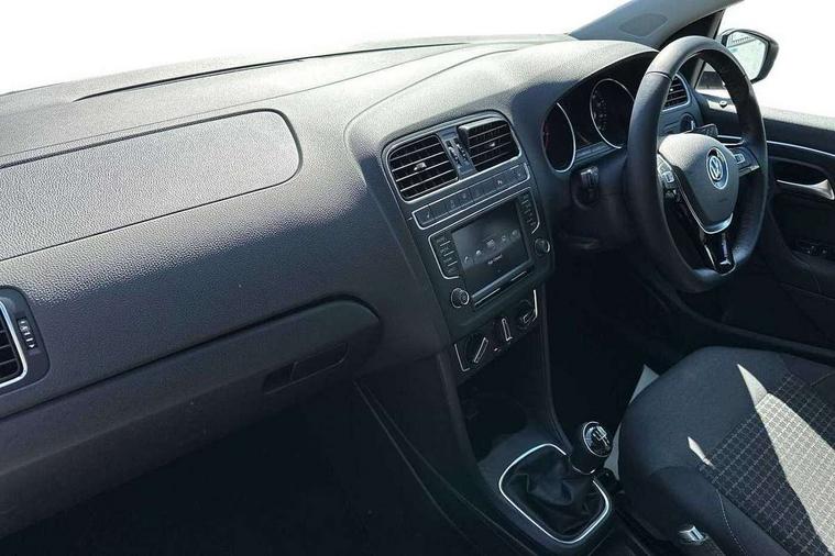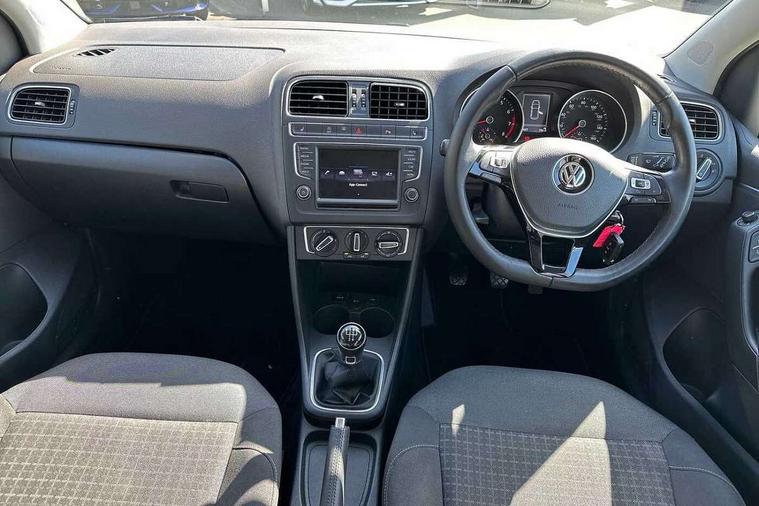 App-Connect, Bluetooth Telephone preparation, Driver alert system, Multi function display, Multifunction computer, PAS - speed related, Service interval indicator, Ultrasonic front and rear optical and audible parking sensors, Warning buzzer and light for front seatbelts unfastened, 6 speakers, Composition media system with radio, glovebox mounted CD, colour touch screen, SD card, aux-in, USB, multimedia interface, DAB Digital radio, Black grille with chrome surround, Body colour bumpers, Body colour door handles, Body colour door mirrors, Body coloured side sills, Chrome trimmed front air intake surrounds, Electric folding door mirrors, Electric front windows, Electric operated/heated door mirrors, Front fog lights with static cornering function, Front wash/wipe with interval delay, Heat insulated tinted glass 65% light absorbing from B pillar back, Heated rear window with auto timer, Rear electric windows, Rear windscreen washer and wiper with interval delay, 12V power socket in centre console, 2 bag hooks in luggage compartment, 2 cupholders, 3 rear head restraints, 3 spoke steering wheel, 4 grab handles, 60/40 split folding rear seat, Centre console storage, Chrome interior door handles, Driver and passenger sunvisors, Driver seat height adjust, Dust/pollen filter, Front door pockets, Front passenger seat height adjust, Front seat backrest storage nets, Front/rear reading lights, Glovebox, Height/reach adjustable steering column, Illuminated vanity mirror, Interior light with delay, Isofix Preparation 2 Rear child seats, Luggage compartment cover, removable, Luggage compartment lighting, Matt chrome gear lever gaiter surround, Multifunction leather steering wheel with leather gear knob/handbrake grip, Storage compartment in front doors, Storage compartment in rear doors, Sunglasses holder, Variable boot floor, Light and sight pack - Polo, 3 point height adj front seatbelts + pretensioners, 3x3 point rear seatbelts, ABS, Automatic post collision braking, Driver/front passenger airbag, Driver/Passenger whiplash optimised head restraints, ESC - Electronic Stability Control + traction control, ESP with EDL + ASR, Hill hold control, Hydraulic Brake Assist (HBA), Tyre pressure monitoring system, Alarm with remote central locking and interior protection, Electronic engine immobiliser, Air vents in Matt chrome, Matt chrome interior trim, 15" steel spare wheel,