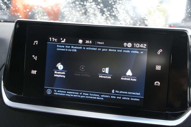 Bluetooth telephone facility, Driver attention warning, Emergency call service, Exterior temperature indicator with ice warning, Lane keep assist, Mirror screen with mirror link, apple carplay and android auto, Multi function trip computer, PEUGEOT i-Cockpit with 3.5" instrument panel display, PEUGEOT i-Cockpit with compact steering wheel, Programmable cruise control and speed limiter, Push button start, Rear parking sensors, Smart phone docking station, Speed limit recognition and recommendation, Start/stop system, 1x USB socket in front, 6 speakers radio with mp3 compatible, DAB Digital radio, Voice recognition for radio, navigation and telephony features, 2 X Rear number plate lights, Automatic hazard light activation upon heavy brake application, Automatic lights, Automatic windscreen wipers, Body coloured exterior door handles, Dark tinted rear side and tailgate windows, Diamond black rear spoiler (roof), Eco LED headlights, Electric front windows + one touch + anti-pinch, Electric rear windows with one touch/anti-pinch, Electrically adjustable, heated and power folding door mirrors, Electrochrome rear view mirror, Follow me home headlights, Gloss black rear cluster connecting strip, Headlights left on audible warning, LED daytime running lights with distinctive tooth design, LED third brake light, Model designation badges front and rear, Nera black door mirror shells, Radiator grille chrome chequered, Rear reversing lights, Rear side wing doors, Rear windscreen wiper triggered automatically in reverse gear, Roof mounted aerial, Roof spoiler, Single exhaust tailpipe, Tailgate with heated rear windscreen and wiper blade, Variable front intermittent wipers, 1/3 to 2/3 split folding rear seats, 12V socket, 3 seat bench in 2nd row, Automatic air conditioning, Driver and front passenger comfort seats, Driver and front passenger seat manual adjustment in longitudinal and back rest angle, Driver seat mechanical height adjustment, Electric power steering with reach and rake adjustable steering column, Front interior light with 2 reading spotlights, Gear shift indicator, Leather steering wheel, Low centre console, Map pockets on the backs of the front seats, Piano keys gloss black plated toggle switches to access main functions of the vehicle, Rear centre headrest, Roof lining - light grey, Seatbelt unfastened on the move audible and visual alert for front and rear seats, Single front passenger seat, Tri material cloth upholstery, 2x Isofix child seat fitting on outer rear seats, 3 rear 3 point seatbelts, ABS (Anti-lock Braking System) with EBD (Electronic Brakeforce Distribution) and EBA (Emergency Braking Assistance), Adaptive driver and front passenger airbags with passenger airbag deactivation function, Child locking functionality on rear doors, Driver/front passenger side airbags, ESP with Hill Assist, Front and rear curtain airbags, Front and rear disc brakes, Front optimised safety headrests and 3 x rear retractable headrests with height adjustable, Front three point retractable seatbelts with force limiters, Manual parking brake, Pedestrians active safety brake, Tyre pressure sensor, Acoustic vehicle alert system (AVAS), Automatic door locking when moving off, Deadlock, Electronic code immobiliser, Remote central locking, Thatcham cat. 1 alarm with anti lift sensor, Carbon effect Dashboard, front and rear door panel finish, 16" Soho diamond cut alloy wheels,