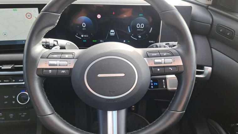 12.3" LCD display with driver's supervision instrument cluster, 12.3" widescreen navigation with bluelink and mapcare, Blind spot view monitor, Bluetooth system, Cruise control - smart adaptive speed control with stop and go function, Digital clock, Drive mode selector, Driver attention warning, E-call, Emergency stop signalling system, Forward Collision Avoidance Assist (FCA) - Car, Pedestrian and Cycle, Forward Collision Avoidance Assist Junction Turning (FCAJX), Front and rear parking sensors, Front, rear and side parking distance warning, Highway Driving Assist (HDA), Hyundai road side assistance, Intelligent speed limit assist, Lane follow assist, Lane keep assist, Over the air updates(OTA), Parking collision avoidance assist (PCA), PAS, Rear camera and guidance parking system, Rev counter, Smart power tailgate, Surround view monitor, Tailgate open warning light, Trip computer, Trip odometer, Voice recognition, Water temperature gauge, Windscreen washer fluid sensor and warning indicator, Wireless Apple CarPlay/Android Auto, Wireless phone charging pad, 2 front and 2 rear USB-C ports, DAB Digital radio, Krell premium audio system with 8 speakers and subwoofer, Steering wheel mounted audio/phone controls, Adjustable intermittent front windscreen wipers with aero wiper blade, Auto dimming rear view mirror, Automatic defog system, Automatic headlights with dusk sensor, Automatic windscreen wipers with rain sensor, Black wheel arches, Body colour bumpers, Body colour door mirrors with integrated indicators, Body colour exterior door handles, Electric tilt/slide panoramic sunroof, Electrically adjustable, heated and power folding door mirrors, Follow me home headlights, Front and rear electric windows with anti-trap mechanism and one touch control, Front fog lights, LED 3rd brake light, LED daytime running lights, LED rear lights, Matrix LED headlights, Positioning Lights - LED, Privacy glass - Rear windows and tailgate, Rear side wing doors, Rear wash/wipe with intermittent wipe setting, Roof rails, Tinted glass with windscreen shade band, Trailer stability assist, 12V power outlets in front console and luggage compartment, 3 seat bench in 2nd row, 40/20/40 split folding rear seat, 64 colours interior ambient lighting, Adjustable head restraints (Up and down), Cupholders in rear armrest, Door courtesy lights, Driver and passenger sunvisors with illuminated LED vanity mirrors, Driver's seat electric adjustments, Driver's seat memory, Front and rear door pockets, Front armrest with storage box, Front centre console and door bottle holders, Front passenger's seat electric adjustments, Heated front seats, Heated rear seats, Heated steering wheel, Height/reach adjustable steering column, Illuminated/air conditioned glove compartment, ISOFIX child seat anchorage points attached on outer rear seats, Leather upholstery, Leather wrapped steering wheel and gear knob, Luggage compartment lighting, Luggage cover, Luggage hooks, Luggage net, Map and reading lights, Rear seat remote folding function, Rear side window sunblind, Reclining rear seats, Retractable load cover, Single front passenger seat, Sunglasses holder, Three zone climate control, Touch sensitive climate controls with temperature dials, TUCSON branded metal door scuff plate, Underfloor boot compartment, Ventilated front seats, Trailer wiring package - Tucson, 3x3 point rear seatbelts, Active bonnet, Airbag - Front, front side, curtain and centre front airbags, Anti-lock brake system (ABS), Brake assist function, Childproof rear door locks, Curtain airbag roll over sensor, Downhill brake control, Electric parking brake, Electronic stability control, Front and rear seatbelt reminder, Front passenger airbag deactivation switch, Front seatbelt pretensioners, Hill start assist control (HAC), Multi-Collision braking, Outer rear seatbelt height adjustment, Seatbelt height adjustment for front seats, Traction control, Tyre pressure monitoring system with individual tyre pressure display - TPMS, Vehicle stability management, Deadlocks, Immobiliser, Locking wheel nuts, Remote control central locking, Smart key with keyless entry and engine start/stop button, Speed sensitive auto door locking, Thatcham category 1 alarm, 19" Alloy wheels, Tyre repair kit,
