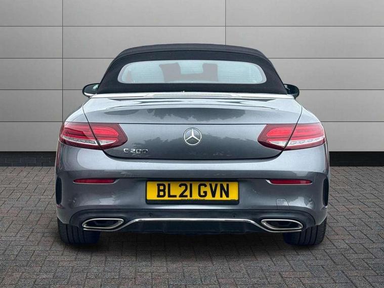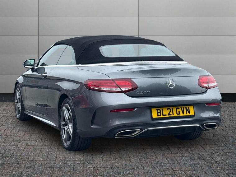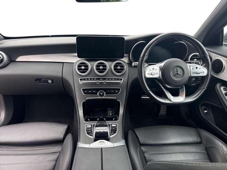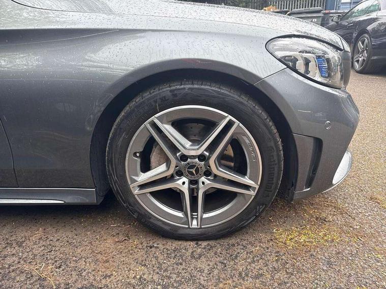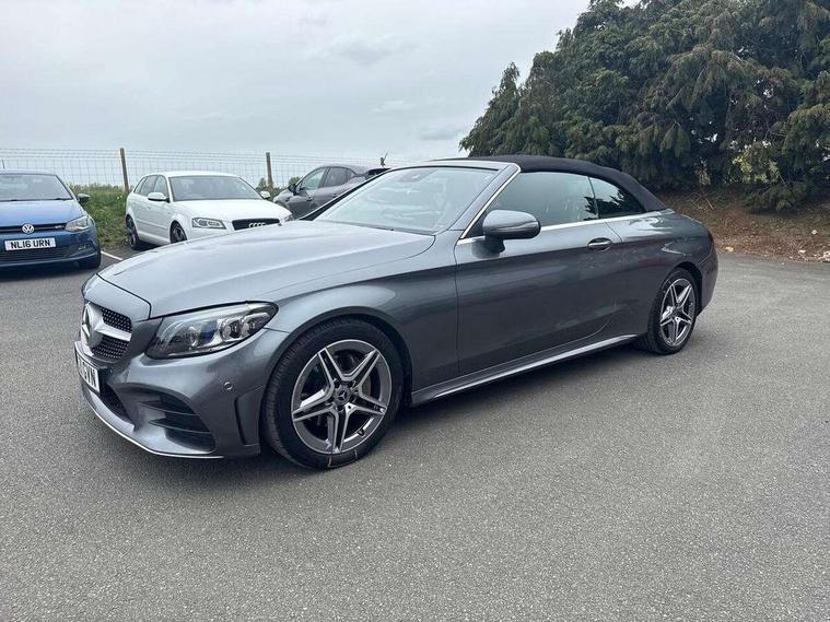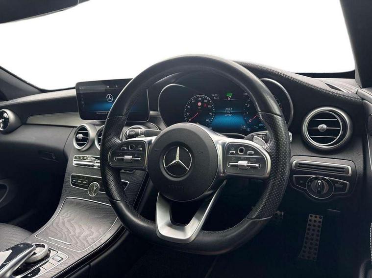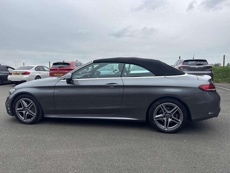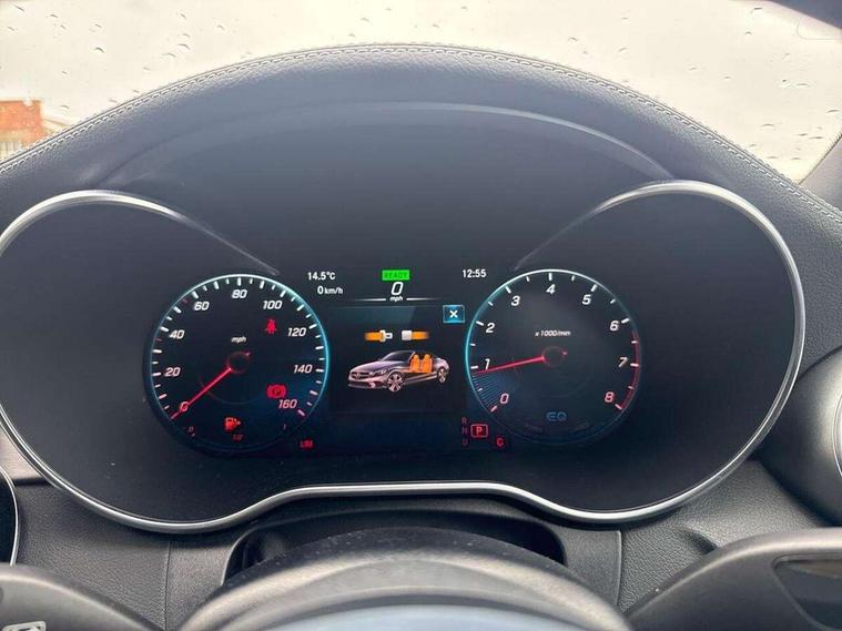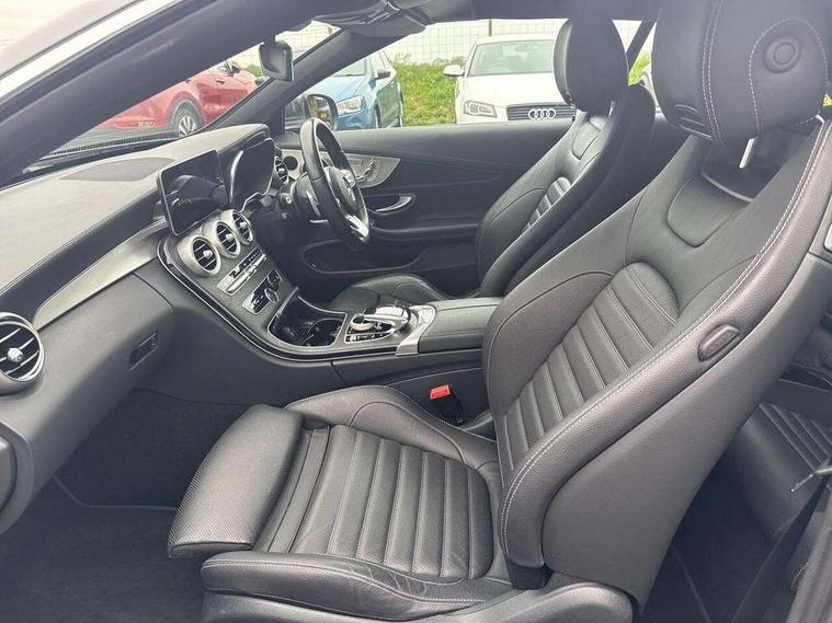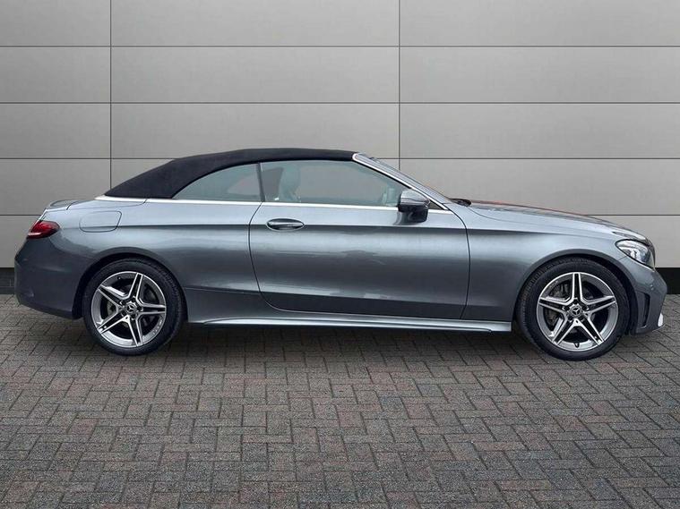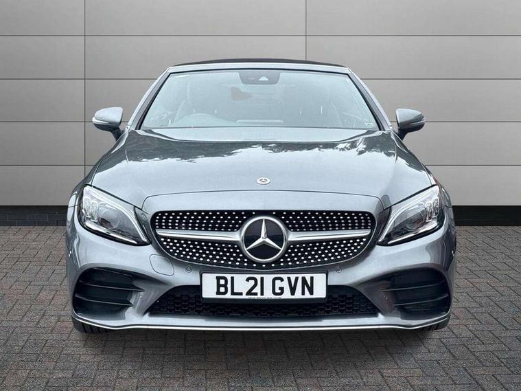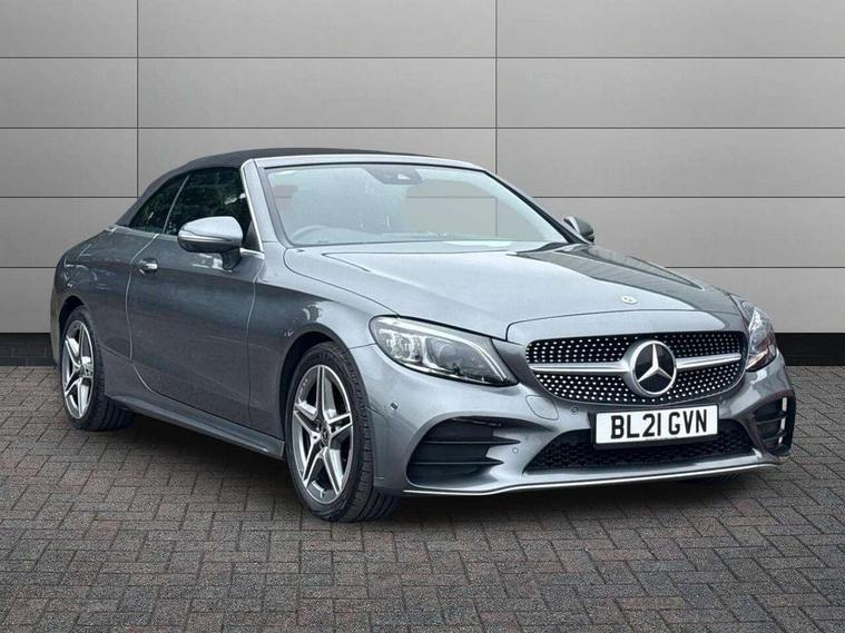 12.3" digital instrument cluster display, Active park assist with parktronic system, Attention assist, Bluetooth interface for hands free telephone, Collision prevention assist plus, Comand Online HDD Nav with media interface, radio/CD/DVD/MP3, 10.25 screen, linguatronic voice control, Cruise control with speedtronic variable speed limiter, DYNAMIC SELECT with a choice of driving modes (ECO, Comfort, Sport, Sport+ and Individual), ECO start/stop function, High resolution 10.25" multimedia colour display, Instrument cluster with 5.5-inch TFT multi-function display, Mercedes me connect including emergency call system, accident recovery, breakdown and maintenance management, Multi function trip computer, Outside temperature display, Pre-wiring for SD navigation system, Remote boot release, Reversing camera, Service indicator (ASSYST), Sports direct steer speed sensitive steering, Status display for rear seat belts in instrument cluster, Wireless charging, 66l fuel tank with increased capacity, 9G Tronic plus 9 speed automatic, Agility control sports suspension lowered by 15 mm, Petrol Particulate Filter, Sport exhaust system, DAB digital radio tuner, Frontbass loudspeakers, Mid-range sound system, SD card slot, Two USB ports and one SD Card slot in centre console, Acoustic soft-top with enhanced climate and noise comfort, Adaptive brake lights, AIRCAP wind deflector and draught stop, AMG bodystyling front and rear aprons, side skirts, Body coloured bumpers, Chrome pins diamond radiator grille with integrated stars, Door sill panels with Mercedes Benz lettering, Electric windows with one touch opening/closing and obstruction sensors, Exterior mirrors heated and electronically adjustable, Full LED tail lamps, Green tinted glass, LED daytime running lights, LED Indicators, LED third brake light, Multi beam LED headlights, Radio aerial integrated into rear window, Rain sensor windscreen wipers, Semi-automatic boot separator, Side windows surround in polished aluminium, Visible twin pipe exhaust trim integrated into rear bumper, 2 cupholders in front centre console, 2 rear head restraints, 3-spoke leather multi function AMG steering wheel with flattened bottom section and chrome inserts with perforated leather in grip area, 40:20:40 split folding rear seats, Airscarf - neck level heating, Ambient lighting, AMG sports seats, Auto Mercedes-Benz child seat recognition sensor, Black floor mats with AMG lettering, Front centre armrest with storage compartment, Front head restraints, Front LED reading lights, Heated front seats, Height/reach adjustable steering column, Illuminated glove compartment stowage, Leather upholstery, Sports pedals with stainless steel surfaces and rubber studs, Steering wheel gearshift paddles, Steering wheel touch control buttons for audio and onboard settings, Sunvisors with illuminated vanity mirrors, THERMATIC 2 zone automatic climate control, Interior lighting package - C Class, Memory pack with Electric adjustable steering wheel - C Class, Mirror package - C Class, Seat comfort pack - C Class, Stowage space pack - C Class, 2 rear seatbelts, 3 point automatic seatbelts, Active bonnet, Adaptive brake system with hold function, hill start assist and brake drying function, Anti-lock braking system (ABS), Automatic seatbelt pretensioner for driver and front passenger, Black seat belts, Brake calipers with Mercedes-Benz lettering + perforated brake discs, Dual stage airbags - driver and front passenger, front sidebags, driver kneebag, pelvis bag and windowbags for driver, front and rear passengers, Electronic parking brake, Electronic Stability Programme (ESP), ISOFIX child seat attachment points with top tether in rear, Tyre pressure monitoring system, Warning triangle and first aid kit, Anti-theft alarm system/interior protection with tow-away protection and interior monitoring systems, Central locking with interior switch, automatic locking and crash sensor with emergency opening function, Chrome surround in electric key, Immobiliser, Artico man-made leather dashboard, Black ash wood with brushed aluminium trim, 18" 5 spoke aero alloy wheels in Silver, TIREFIT with tyre inflation compressor,