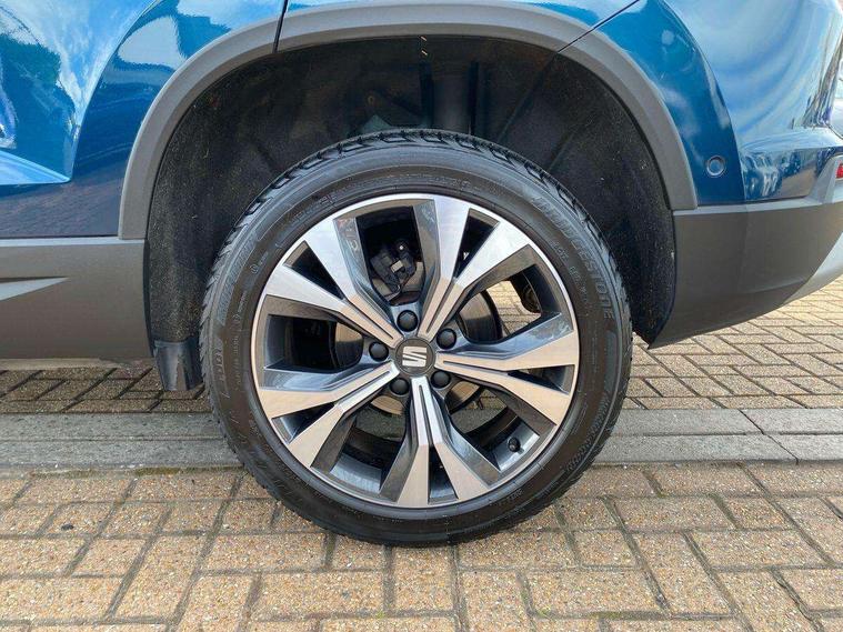 8" Digital cockpit, Colour multi-function on board computer display, Cruise control system with speed limiter, E-call, Outside temperature gauge, PAS, Self parking functionality (includes front and rear parking sensors), Start/stop system, Tailgate, Trip computer, Wireless full link smartphone integration, Wireless phone charger, Steering wheel mounted audio/phone controls, Black wheel arch surrounds, Body colour bumpers, Chrome front grille frame, Chrome roof rails, Chrome side window trim, Daytime running lights, Door mirrors with welcome light silhouette, Dynamic headlight range control with self adjusting whilst driving, Electric adjustable/heated/folding door mirrors, Front and rear electric windows, Full LED headlamps with lens and LED front fog lamps with cornering function, LED rear tail lights with dynamic indicators, Rear fog lights, Rear side wing doors, Rear wash/wipe, Simulated exhaust pipes, Third brake light, Variable front intermittent wipers, 12V socket in front, 3 seat bench in 2nd row, 60/40 split folding rear seat, Cloth upholstery with front comfort seats, Drawer under right front seat, Dual zone climate control, Front and rear head restraints, Front centre armrest, Front seat back storage pockets, Height adjustable driver and passenger seat with lumbar adjustment, ISOFIX points in outer rear seats with top tether anchorage points, Leather steering wheel and gear knob, Rear armrest and easy back seat release mechanism from boot, Single front passenger seat, Interior lighting pack - Ateca, Navigation system pack with DAB - Ateca, 3x3 point rear seatbelts, ABS, Traction control system (TCS), Electronic stability control (ESC) and Electronic differential lock system (XDS), Airbags - Driver and front passenger airbag with deactivation, front side, two curtain and driver's knee airbags, Electric parking brake with auto hold function, Front and rear seatbelt reminder, Front assist with autonomous emergency braking, Hill hold control, Manual rear child locks, Single tone horn, Tiredness recognition system, Traction control, Tyre pressure monitoring system, Alarm, Keyless entry, Locking wheel bolts, Remote central locking, Chrome interior detailing, 18" Performance machined alloy wheels 36/2 in nuclear grey,