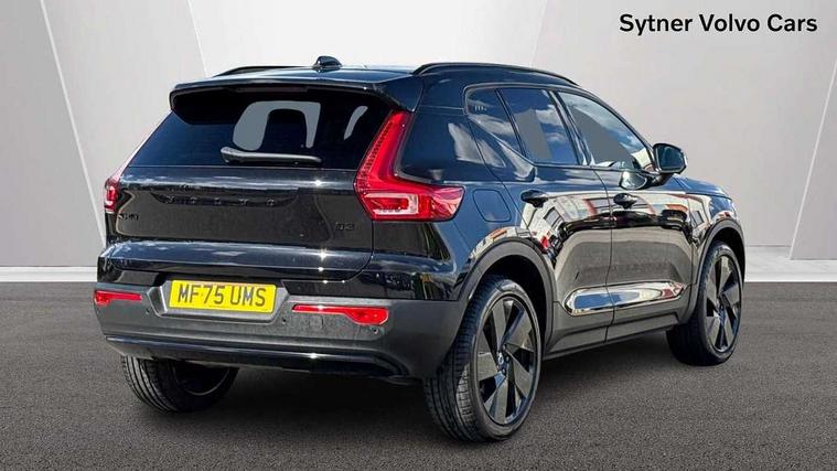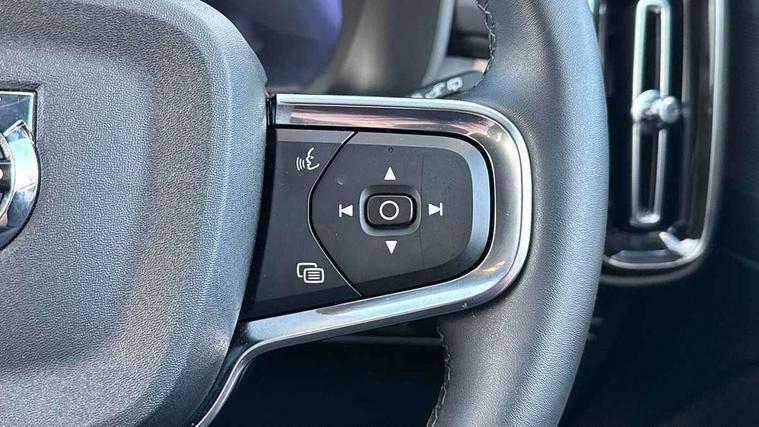 12.3" Progressive Driver Display, 9" centre console portrait touch screen, Adjustable steering wheel force, Android auto (Wired), Apple carplay (wired), Bluetooth handsfree system, Driver alert control, Driver assistance (pilot assist and adaptive cruise control), Driver awareness - Blind spot information system with steer assist, cross traffic alert with autobrake and rear collision warning and mitigation, E-call, Front and rear parking sensors, Front park assist, Google automotive services - Enabled entertainment apps, navigation with google maps, voice recognition with google assistant, Hands free power tailgate, Intelligent speed assistance, Lane keeping aid, Oncoming Lane Mitigation, Speed sensitive steering, Volvo cars services with app - Driving journal, engine remote start, remote door locking/unlocking and vehicle dashboard, Wireless/Inductive Mobile Phone Charging, Automatic transmission with start/stop and manual change functions, Dynamic chassis, DAB Digital radio, Steering wheel mounted remote controls, Adaptive brake lights with high level LED brake lights, Auto dimming feature for exterior door mirrors, Auto dimming interior mirror, Auto folding and heated power door mirrors, Automatic headlamp levelling, Automatic LED Headlights + Active high beam incorporating daytime running lights, Dark tinted windows - rear side windows and rear screen, Front aluminium tread plates, Front and rear electric windows, High gloss black front and rear skid plate, High gloss black front bumper deco, High gloss black front grille strikethrough and ironmark, High gloss black rear model, engine and volvo logo badges, High gloss black window trim, Home safe and approach lighting, Integrated roof rails in high gloss black, LED front fog lights, Puddle lights, Rain sensor with automatic windscreen wiper activation, Rear side wing doors, Rear wiper, Roof antenna, Roof spoiler, Visible VIN plate, 12V socket in front tunnel console and luggage compartment, 2-Zone electronic climate control with CleanZone air quality system and pollen filter, 3 seat bench in 2nd row, 3 Spoke tailored steering wheel with chrome trim, 60/40 versatile split folding rear seat, Centre console cupholders and storage, Charcoal carpet and floor mats, Charcoal headlining, Connect suede textile/microtech upholstery, Flexible load floor and grocery bag holder, Front headrests, Front seat cushion extensions, Glovebox bag hook, Heated front seats, Height adjustable passenger seat, Height/reach adjustable steering column, High gloss centre tunnel deco, High level illumination - Front door pocket, front side step (under door), tailgate, instrument panel, front door inlay, rear courtesy&reading lights, Integrated waste bin, Isofix attachments on outer rear seats, Load cover, Load protection net, Mid level illumination - Front footwell, luggage & glovebox compartment, front cabin courtesy & reading lights, illuminated vanity mirrors+ticket holder, Multi directional lumbar support for driver and passenger seat, Power driver seat with memory + exterior mirrors memory, Rear armrest with cupholders, Rear headrests, Single front passenger seat, Underfloor luggage compartment storage, Climate pack without heated front seats - XC40, 3x3 point rear seatbelts, City safety with steering support with Pedestrian + cyclist + front collision warning with full auto brake and rear auto brake, Driver and passenger airbags, Drivers knee airbag, Electronic parking brake with auto hold, First aid kit, Front and outer rear seatbelt reminder and pretensioners, Front seats SIPS airbags, Hill descent control - Off-road drive mode, Hill start assist, IC (Inflatable Curtains) - Full Length, Passenger airbag cut-off device, Power child locks on rear doors, Road sign information display, Run off Road Protection, SIPS (Side Impact Protection System), Slippery road and hazard light alert, Stability and Traction Control with Spin control, Engine Drag Control and Corner Traction Control, Tyre pressure monitoring system, Vehicle deceleration control with Anti-lock Brake System, Electronic Brake Distribution and Emergency Brake Assist, Warning triangle, WHIPS whiplash protection system - front, 2 x Key integrated remote control central locking including with deadlocking system and auto open/close windows, Anti-theft alarm including immobiliser/volume sensor + level sensor, Keyless drive includes keyless entry and keyless start, Locking wheel nuts, 20" 5 spoke high gloss black alloy wheels,