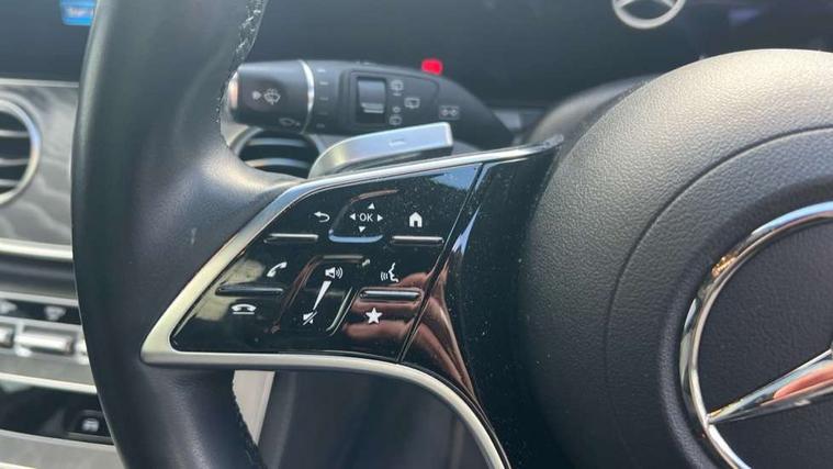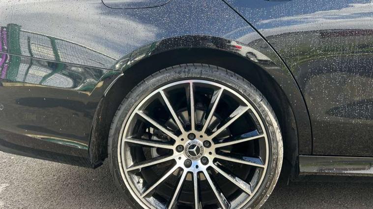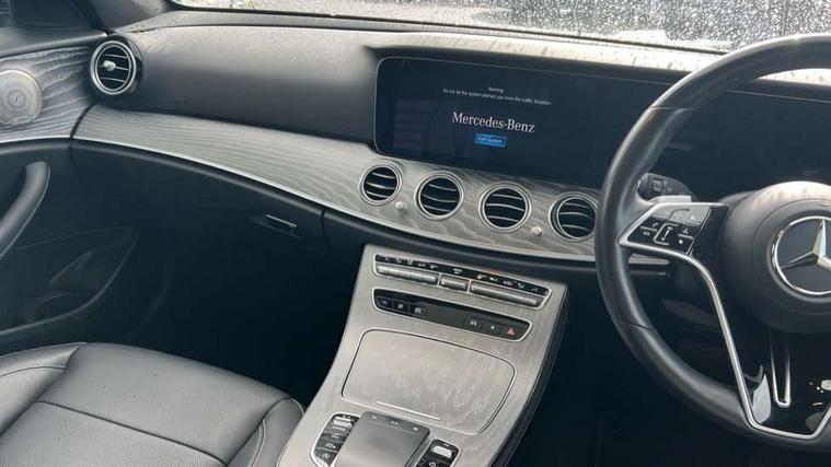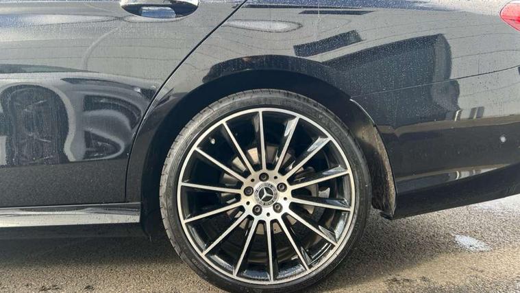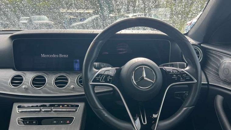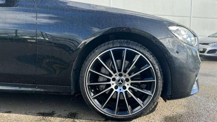 Attention assist, Brake wear warning display, Cockpit display 10.25" widescreen digital instrument cluster, Direct steer speed sensitive steering, DYNAMIC SELECT with a choice of driving modes (ECO, Comfort, Sport, Sport+ and Individual), Easy-pack tailgate - Powered opening/closing automatically, ECO start/stop function, Emergency call service, High resolution 10.25" multimedia colour display, MBUX voice control activated by keywords "Hey Mercedes", Mercedes connect me, Outside temperature display, Remote boot release, Service indicator (ASSYST), Smartphone integration via Android Auto/Apple CarPlay, Media Interface, USB and Bluetooth interface, Status display for rear seat belts in instrument cluster, Touchpad without controller, Traffic sign assist, Trip computer in multifunction display showing current fuel consumption, Wireless charging, 25 litre AdBlue tank, 66 litre fuel tank, 9G TRONIC 9 speed automatic transmission, Agility control sports suspension with selective damping system and lowered by 15mm, Diesel particulate filter, Incorrect fuelling protection, Rear air suspension with level control, 2 USB ports in centre console, 2 USB ports in the rear, Burmester surround sound system with 13 speakers and a 9 channel amplifier with total output of 590 watts, MBUX multimedia system with DAB digital radio and touchpad including satellite navigation, 3rd brake light, Adaptive brake lights, Aerial integrated in rear window, AMG bodystyling front and rear aprons in polished aluminium, Chrome pins diamond radiator grille, surround in high gloss black, single louvre in chrome with insert in high gloss black and integral star, Chrome roof rails, Electric windows with one touch opening/closing and obstruction sensors, Electrically adjustable and heated door mirrors, Front apron in high gloss black, High gloss black exterior mirror housing, High gloss black rear bumper with chrome trim, Illuminated front door sill panels with Mercedes-Benz lettering, LED High Performance headlamps including integral LED daytime running lamps and adaptive highbeam assist, LED rear lights, Panoramic electric glass sunroof, Privacy glass Includes rear side windows and rear windscreen, Rain sensor with automatic headlight activation, Rear side wing doors, Rear wiper, Tail lights, Top surround of side windows in polished aluminium, Visible twin pipe exhaust system integrated into bumper, Waistline trim strip in high gloss black, 3 seat bench in 2nd row, 3 spoke multifunction flat bottom AMG steering wheel with chrome inserts and touch control buttons, trimmed in black nappa leather, 40:20:40 split folding rear bench seat, Artico man-made leather upper dashboard and beltlines with contrast stitching, Automatic child seat recognition sensor, Black door pins, Black roof lining, Central stowage compartment with 12 V socket in centre console, USB socket for use with Android Auto and Apple CarPlay, Courtesy lights in rear grab handles with reading light functionality, Floor mats with AMG lettering, Four way partially front electric seat adjustment, Front centre armrest with stowage compartment, Glasses compartment in overhead control panel, Glove compartment - lockable, air conditioned and illuminated, Head restraints for driver and front passenger (four-way adjustability)and in rear (two-way), Heated front seats, Interior lighting - 64 colour Ambient lighting, ISOFIX child seat attachment points two outer rear seats, Leather upholstery, Seat occupancy sensor for front passenger seat, Single front passenger seat, Steering column electrically adjustable for height and reach, Steering wheel multifunction with gearshift paddles, Steering wheel touch control buttons for audio and onboard settings, Sunvisors with illuminated vanity mirrors, THERMOTRONIC automatic climate control system with 3 climate zones, Mirror pack - E Class, Parking package including 360 degree camera - E Class, Seat comfort pack - E Class, Stowage pack - E Class Estate, 3x3 point rear seatbelts, Active bonnet pedestrian safety measure which detects an impact and raises bonnet, Adaptive brake system with HOLD function and brake drying in the wet, Airbags - sidebag for driver and front passenger with combined thorax/pelvis bag, Anti-lock braking system (ABS), Childproof locks manually operated for rear doors and electrically operated for rear power windows, Driver and adaptive front passenger airbags, Drivers knee airbag, Electronic parking brake, Electronic Stability Programme, Hill start assist, Perforated brake discs with Mercedes Benz lettering, Pre-Safe anticipatory safety system, Tyre pressure monitoring system, Warning triangle and first aid kit, Window airbags, Alarm system/interior protection/immobiliser, Central locking with interior switch, automatic locking and crash sensor with emergency opening function, Chrome surround electric key, Keyless entry go starting function, Grey open pore ash wood trim and centre console in grey open pored ash wood, 20" AMG multi spoke light alloy wheels painted in high gloss black with high sheen finsih, Summer tyres, TIREFIT with tyre inflation compressor,