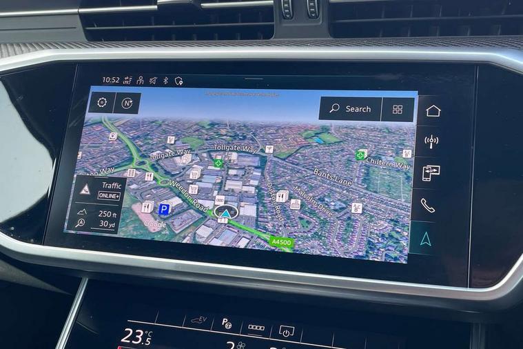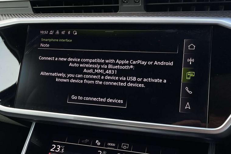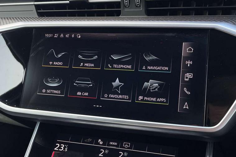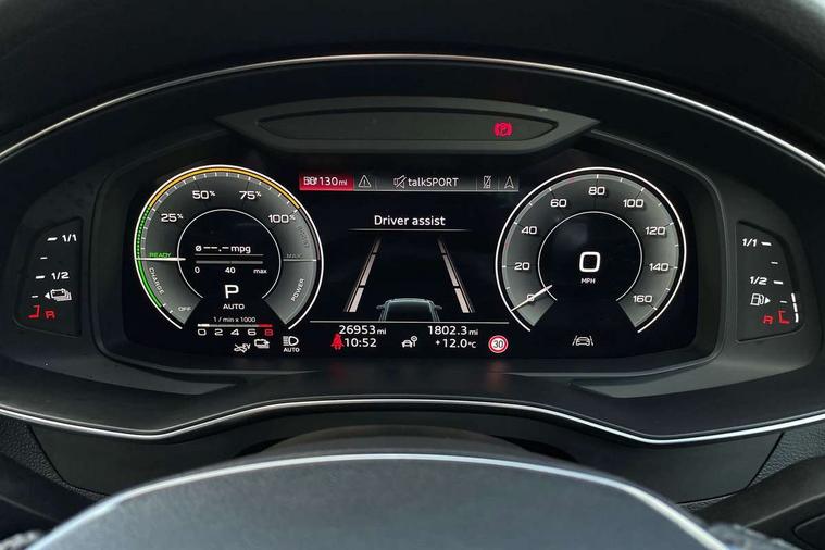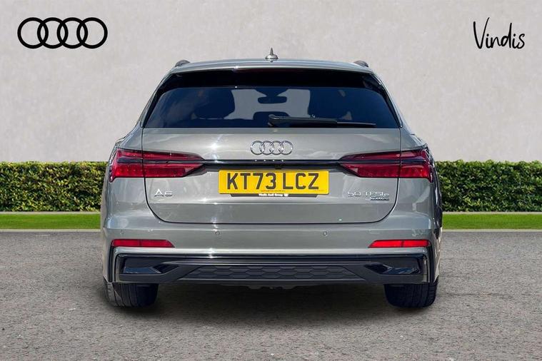 7" high resolution colour driver information display system, Audi connect safety and service (e-call), Audi connect with Amazon Alexa Integration, Audi drive select, Automatic start/stop system with coasting functionality, Bluetooth interface, Electric boot lid release, Lane departure warning system, Progressive steering, Service interval indicator, Smartphone interface includes wireless Apple carplay/Android Auto, Voice control system, 3 pin 10 amp domestic charging cable, 52 litre fuel tank, 7.4 kW onboard charger, Hybrid propulsion system, Quattro on demand, Sports suspension, Type 2 mode 3 32 amp charging cable, Type 2 socket for AC charging, Audi front music interface, Auxiliary input socket, DAB Digital radio, USB connection, Black roof rails, Electric front/rear windows, Frameless auto dimming interior rear view mirror, Front intermittent wipers, Gloss black highlights on the exterior area of the Audi Single frame, Gloss black highlights on the front and rear bumpers, Gloss black highlights on the radiator grille, Gloss black highlights on the side windows trim strips, Headlight washers, Heat insulating darkened glass in side and rear windows, Heat insulating glass in windshield, LED signature front daytime running light, LED third brake light, Matrix LED headlights, Matt black rear diffuser with diffuser strip and tailpipes in chrome, Matt black side air intake grille with inlay in matt aluminium, Privacy glass, Rain and light sensors, Rear side wing doors, Rear wiper, Signature rear LED light design, 4 way electric lumbar support for driver and front passenger, 4 zone deluxe automatic climate control, 40/20/40 split folding 3 rear seat bench in 3 parts with rear centre armrest, Black cloth headlining, Black front and rear carpet floor mat, Black steering wheel insert, Electrically adjustable front seats with driver memory, Front centre armrest, Front head restraints, Heated front seats, Height/reach adjust steering wheel, Illuminated door sill trims with S logo, Illuminated sun visors with vanity mirrors, ISOFIX child seat mounting and Top Tether with front passenger airbag deactivation, Leather gear knob, Rear headrests, Single front passenger seat, Stainless steel pedals and foot rest, Comfort and sound pack - A6, Non smoking pack - A6, Technology pack - A6, 3 point seatbelts on all seats, Airbags - Front side, front and rear including head, Audi pre-sense front, EBD - Electronic brakeforce distribution, Electromechanical parking brake, Electronic Stability Control (ESC) including ABS, ASR and EDL, Extended pedestrian protection measures, Manual child proof rear door locks, Seatbelt monitoring, Tyre pressure warning light, Warning triangle and first aid kit, Anti theft alarm with tow away protection, Anti-theft wheel bolts and wheel loosening detection, Immobiliser, Remote central locking, Black seatbelts, Carbon twill inlays, 20" 5 V spoke star design Audi sport cast aluminium alloy wheels in matt grey look, Tool kit, Tyre repair kit,