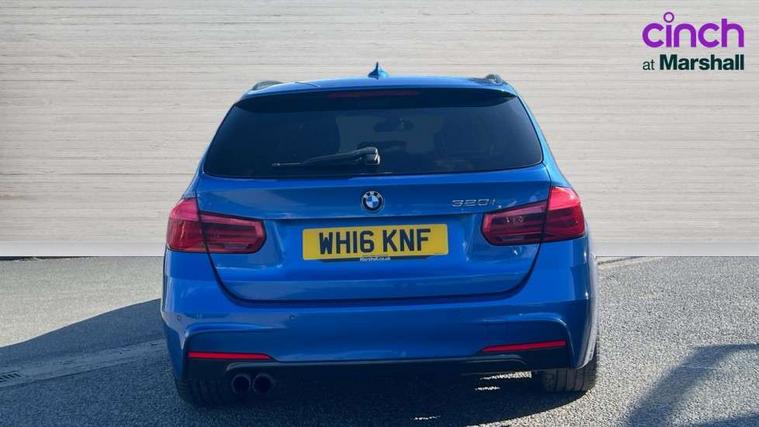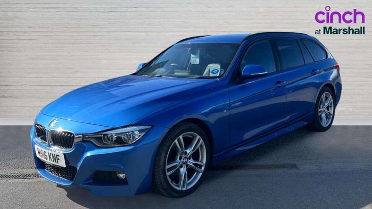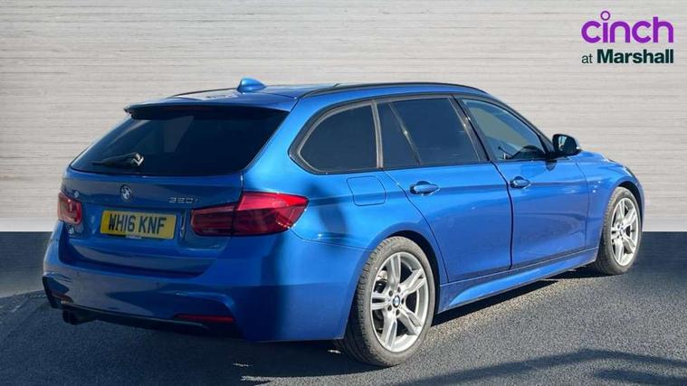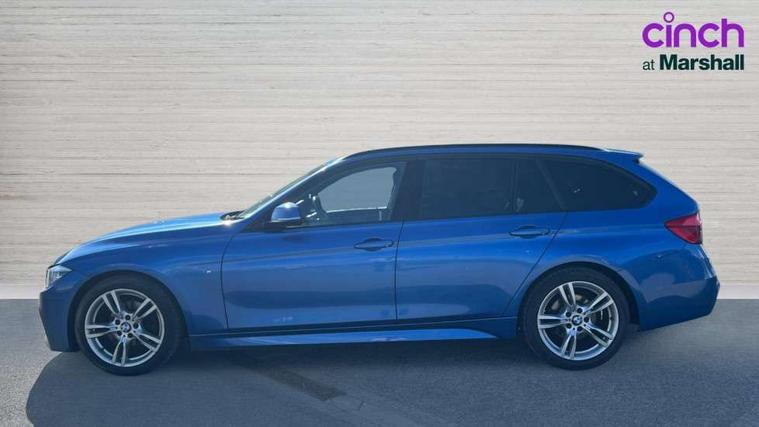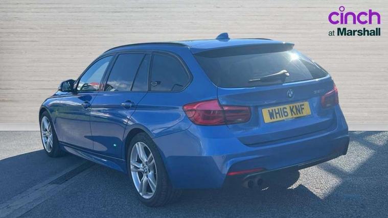 Automatic tailgate operation, BMW Online services, BMW Teleservices, Brake force display, Brake pad wear indicator warning light, Check control system, Cruise control with brake function + speed limiter, Digital clock, Door/boot open warning light, Lights on warning, Oil temperature gauge, On board computer, On board diagnostics, Operation warning of all exterior lights, Outside temperature display, Push button starter, Service interval indicator, Traffic message channel (TMC), Drive Performance Control, Electronic differential lock, Auxiliary point for auxiliary devices, BMW professional radio/CD/MP3, CD Changer preparation, DAB Digital radio, 'Guide me home' headlamps, 2 speed adjustable intermittent wipers with wash/wipe function, Auto dimming rear view mirror, Automatic headlight beam throw control, Body colour bumpers, Body colour door handles, Body colour electric adjustable door mirrors, Body colour roof mouldings, Chrome exhaust tailpipe, Clear indicator lenses, Door sill finishers, Dynamic brake lights, Electric front and rear windows with one touch/convenient open/close function, Front ornamental grille with black kidney bars and chrome bezel, Green tinted heat insulating glass, Heated rear window with automatic switch off, Heated windscreen washer jets, High gloss shadow line, Independent opening for tailgate window, LED daytime running lights, LED fog lights, M aerodynamic body styling, Rain sensor + automatic driving lights control, Rear wash/wipe, Shark fin roof aerial, 12V sockets in front centre console and passenger footwell, 2 bag hooks in luggage compartment, 2 x folding cupholders in instrument panel above glovebox, 3 rear seat head restraints, 4 foldable grab handles - rear with clothes hook, 4 lashing points to secure luggage, 40:20:40 split folding rear bench seat, Ambient lighting, Automatic interior light soft on/soft off system, Driver and passenger sunvisors with vanity mirrors + slide cover, Dual zone automatic air conditioning, Foldable boot floor with storage compartment, Folding front centre armrest + storage, Front and rear door armrests, Front and rear velour floor mats, Front door storage bins with bottle holder, Front sports seats with electric side bolster adjustment, Glovebox light, Height adjustable front headrests, Indirect front interior illumination - soft-light function, Individual anthracite headlining, Isofix system on outer rear seats, Leather gear knob, Leather gear selector lever handle, Leather handbrake grip, Lockable glovebox, Luggage compartment lighting, Luggage strap, M sports leather steering wheel, Multi-function controls for steering wheel, Reach + rake adjustable steering column, Rear centre armrest with 2 cupholders, Rear storage compartment in multifunction centre console with sliding cover, Retractable luggage cover, Separation net, Storage compartment in rear doors, Through load system, Toolkit located in luggage compartment, Extended lighting package - 3 Series, Interior lights pack - 3 Series Touring, 3 point inertia reel seatbelts + pre-tensioners on outer rear seats, ABS, Automatic Stability Control (ASC), BMW emergency call, Cornering brake control (CBC), Crash sensor, Driver and passenger airbags, DSC+, Dynamic brake control, Dynamic Traction Control - DTC, Front and rear head airbags, Front passenger airbag deactivation, Front seat side impact airbags, Front seatbelt pretensioners + load limiters, Hill start assist, Rear child proof door locks, Seatbelt warning, Three 3 point rear seatbelts, Twin horns, Tyre pressure monitor, Warning triangle and first aid kit, Automatic drive away locking facility, Central locking fuel filler cap, Centre lock switch, Electronic immobiliser, Key integrated remote control central locking, Remote control alarm, Low rolling resistance tyres, Run-flat tyres,