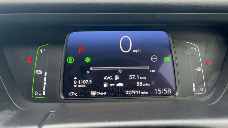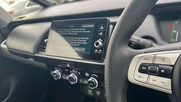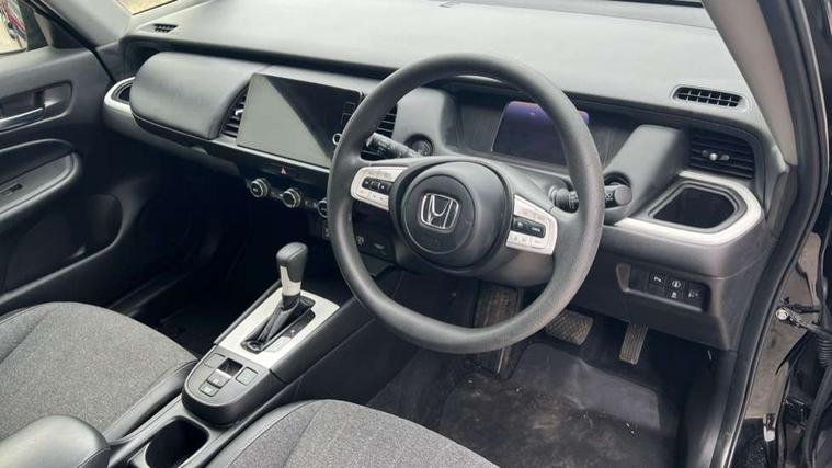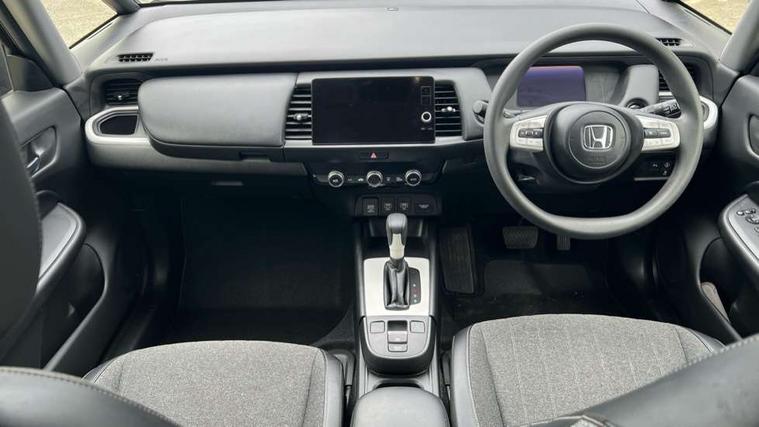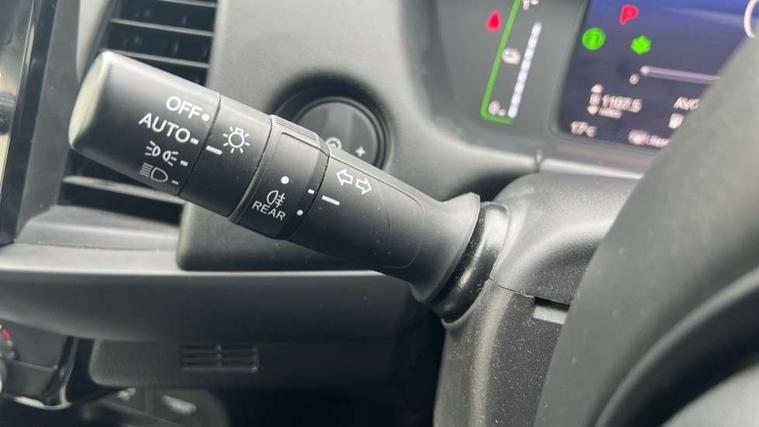 Adaptive cruise control, Adjustable speed limiter, Agile handling assist, Bluetooth hands free telephone connection, eCall emergency call system, Econ mode, Electric power steering wheel with variable gear ratio steering, Emergency stop signalling system, Forward collision warning, Front and rear parking sensors, Honda CONNECT with 9" touchscreen, AM/FM/DAB/Apple Carplay and android auto, Idle stop, Intelligent speed limiter, Lane departure warning system, Lane keep assist system, Low speed following, Multi-information display, Road departure mitigation, Traffic sign recognition, Vehicle stability assist, 'Shark fin' mobile antenna, 2x USB Front socket (1 data & 1 charge), 4 speakers, Remote audio controls on steering wheel, Aspheric door mirrors, Auto wipers, Automatic headlights with on/off timer, Coming/leaving home function, Body colour door handles, Body coloured bumpers, eHEV emblem, Electric adjustable door mirrors, Electric front windows, Electrically folding door mirrors, Heated door mirrors, High beam assist, LED daytime running lights, LED Headlights, LED rear lights, Rear side wing doors, Rear wiper, Single exhaust tailpipe, Third brake light, 3 seat bench in 2nd row, 60/40 split rear bench seat, Cargo net hooks, Climate control air conditioning, Driver and front passenger seat armrests, Driver and passenger front seat pockets, Driver's seat height adjustment, Fabric/leather upholstery, Front accessory power socket, Front head restraints, Front map lights, Front/rear courtesy lights, Isofix child seat restraint mechanism, Isofix points, Magic seat flexibility system, Plating interior door handles, Rear head restraints, Rear parcel shelf, Single front passenger seat, Sunvisors with vanity mirrors, Tilt/telescopic adjustable steering wheel, Tonneau cover, Trunk light, 3x3 point rear seatbelts, Anti-lock braking system (ABS), Brake assist function, Brake hold function, Child locks on rear doors, Collision mitigation braking system, Deflation warning system, Driver knee airbag, Driver SRS airbag (single stage inflation), Driver/Front Passenger airbags, Electric parking brake, Front and rear side curtain airbag, Front side airbags, Hill start assist, Passenger SRS airbag cut-off device, Rear side airbags, Whiplash lessening front headrests, Front seat belt with emergency locking retractor, Honda super locks, Immobiliser, Mirrors key fob operation, Remote central locking with 2 remote folding keys, Security alarm, Soft pad leather interior panels, 15" Multi apperance alloy wheels in mat berlina black, Tyre repair kit,