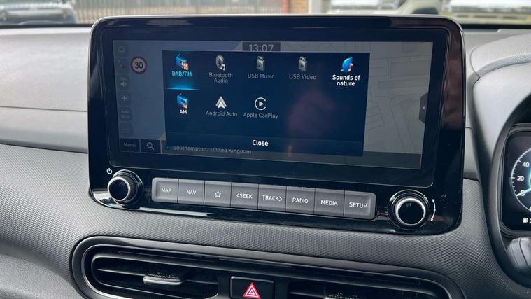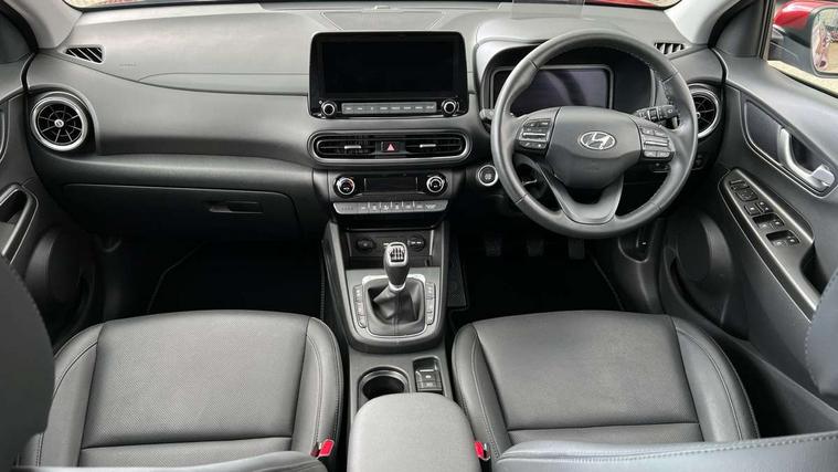 10.25" touchscreen centre console display satellite navigation with live services and mapcare, Blind spot Collision Warning (BCW), Bluetooth connectivity, Cruise control + speed limiter, Digital clock, Driver attention warning, Driver supervision instrument cluster with 10.25" LCD display, eCall emergency call system, Forward collision avoidance assist with pedestrian detection, Front parking sensor, Head up Display, Intelligent speed limit warning, Lane follow assist, Lane keep assist, Leading vehicle departure alert (LVDA), Parking system with rear camera and guidance system, PAS, Phone connection with apple carPlay and android auto, Rear cross traffic collision warning (RCCW), Rear parking sensor, Roadside assistance, Safe exit warning (SEW), Windscreen washer fluid sensor and warning indicator, Wireless phone charging pad, 6 speed intelligent manual transmission, Front and rear USB ports, Krell premium audio system with 8 speakers including external amplifier and subwoofer, RDS and Digital DAB, Steering wheel mounted audio/phone controls, Auto dimming rear view mirror, Automatic headlights with dusk sensor, Automatic windscreen wipers with rain sensor, Body colour door mirrors and handles, Door mirror integrated indicators, Electric front/rear windows with drivers one touch/anti-trap, Electric tilt/slide glass sunroof, Electrically adjustable and heated door mirrors, Front fog lights, LED daytime running lights, LED Headlights, LED rear lights, Painted anthracite body garnish, Positioning Lights - LED, Power folding door mirrors, Privacy glass - Rear windows and tailgate, Rear roof spoiler with integrated LED brake light, Rear side wing doors, Rear skid plate - silver, Rear wiper, Roof rails, Solar glass with front door glass and windscreen shade band, Windscreen auto defog function, 12V power outlet in front console, 3 seat bench in 2nd row, 60/40 split folding rear seat, Adjustable head restraints, Air conditioning climate control, Ambient lighting, Centre interior light, Door scuff plate, Driver and passenger front seat pockets, Driver's seat electric adjustments, Driver's seat electric lumbar support, Driver/passenger sunvisors and illuminated vanity mirrors, Front interior light, Front passenger's seat electric adjustments, Heated front seats, Heated rear seats, Heated steering wheel, Height/reach adjustable steering column, Isofix rear child seat fastenings, Leather upholstery, Leather wrapped steering wheel and gear knob, Luggage compartment lighting, Luggage hooks, Luggage net, Metal paint effect interior door handles, Parcel shelf, Rear centre armrest, Rear centre console with air vents, Single front passenger seat, Sunglasses holder, Ventilated front seats, Vertical adjustment rear head restraints, Trailer wiring package - Kona, Airbags - front, front side and curtain airbags, Anti-lock brake system (ABS), Childproof rear door locks, Downhill brake control, EBD + Brake Assist, Electric parking brake, Electronic stability control, Fasten seatbelt reminder, Fixed 3 point for second row centre passenger seatbelt, Front seatbelt pretensioners, Height adjustable front seatbelts, Hill start assist control (HAC), Passenger airbag deactivate switch, Rear seat alert, Traction control, Tyre pressure monitoring system, Alarm/immobiliser, Deadlocks, Folding key, Locking wheel nuts, Remote central locking, Smart key with keyless entry and engine start/stop button, 18" Alloy wheels,