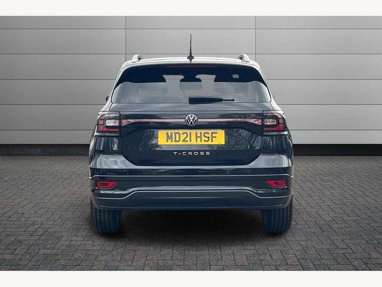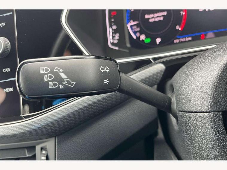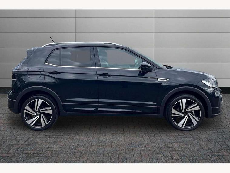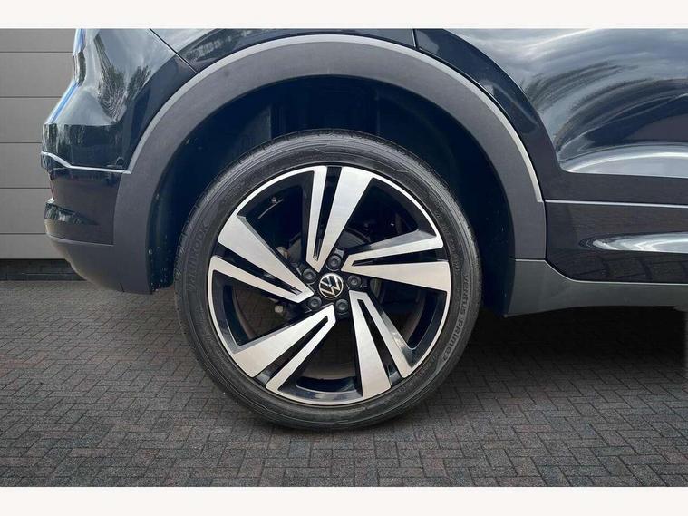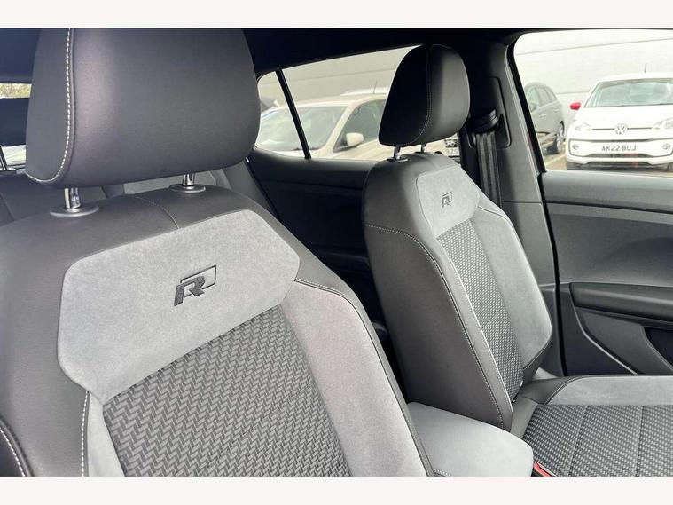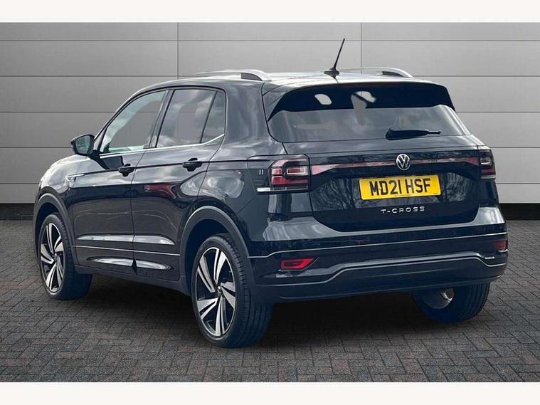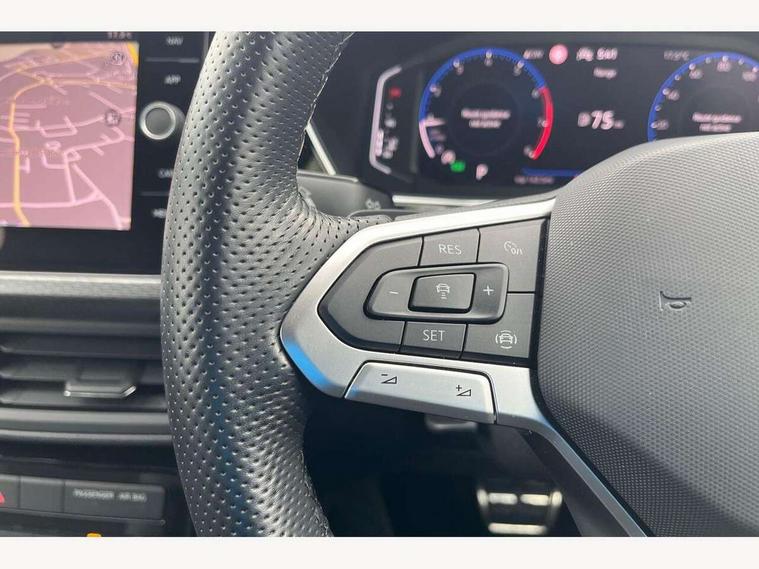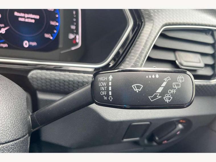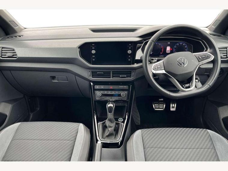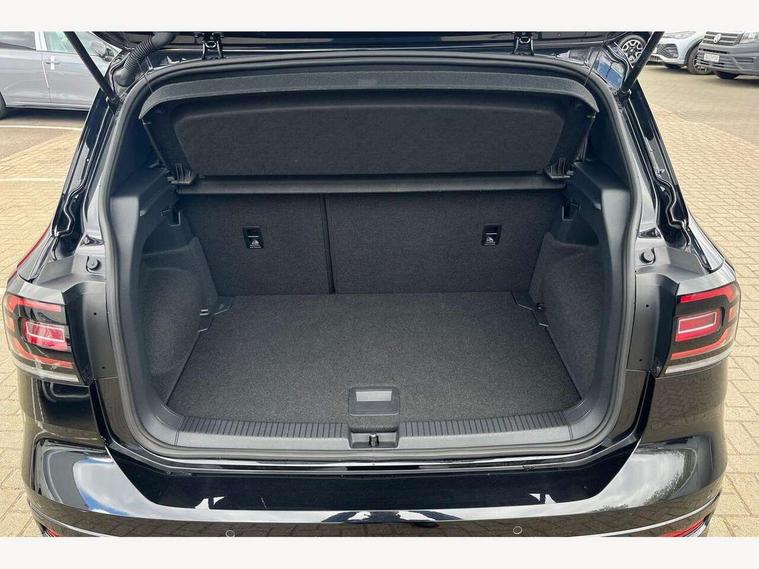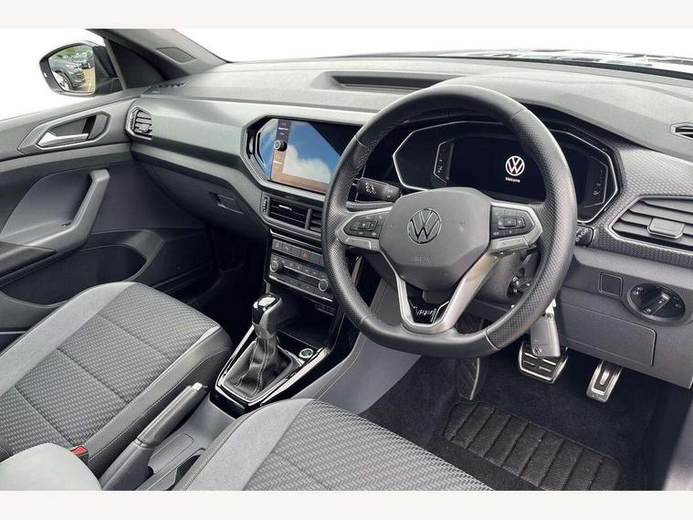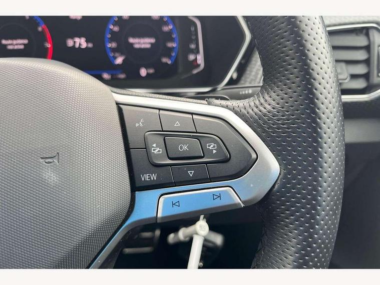 'Lights On' Reminder warning buzzer, 2D/3D map view, Adaptive cruise control including front assist, forward collision warning, autonomous emergency braking, speed limiter, Blind spot monitoring, Bluetooth telephone and audio connection for compatible devices, Car information display, Digital Cockpit Pro - Active info display, Driver alert system, eCall emergency call system, Lane assist, Multifunction computer with visual gear change recommendation for fuel consumption, Operating permit alteration, Power assisted speed sensitive steering, Speed limit display, Speedo, rev counter, electronic odometer, trip, service interval display, exterior temperature and fuel gauge, Stop/start system, Warning sound and light for doors and tailgate open, Warning sound and light for front seatbelts unfastened, We connect plus preparation, Wireless Car net app connect with Apple CarPlay, combined functionality of Apple CarPlay/Android Auto and MirrorLink, Battery regeneration during braking, Misfuel prevention device, 2x USB connection with USB charging sockets and in rear centre console, DAB Digital radio receiver, Diversity antenna for FM reception, Multi device interface (MDI) with USB connection, Music playback - MP3, WMA and AAC files, Premium USB cable for Apple or Android smartphone compatibility, Simultaneous pairing of 2 compatible mobile devices, SMS Functionality, Three route options - Fast, Short, Eco, Title and cover art display, Automatic dimming interior rear view mirror, Automatic hazard lights activation under emergency braking, Body colour door handles, Body colour rear roof spoiler, Body coloured bumpers, Dusk sensor + automatic driving lights, Dynamic headlight range control with self adjusting whilst driving, Front and rear electric windows, Front fog lights with static cornering function, Galvanised body, Heated rear window, High level 3rd brake light, LED dipped and main beam headlights with automatic range adjustment including separate unique signature LED daytime running lights, Lower door sills and door pillars in black, Manual coming/automatic leaving home lighting function, Radiator grille with chrome trim and chrome bezel front fog lamp, Rain sensor, Rear fog light on one side, reversing light on both sides, Rear lights incorporating LED technology, Rear tinted glass 65% approx light absorbing from B pillar backwards, Rear window aerial, Rear windscreen washer and wiper with interval delay, Reflectors in all doors, Silver roof rails, Stainless steel door sill protection, Tailgate with integrated roof spoiler, Unique R Line badging, Windscreen wipers/ intermittent wipe + 4 position delay, 12V Accessory socket in centre console, 2 Front and rear reading lights incorporating LED technology, 2 Zone electronic climate control with automatic air recirculation, 3 rear head restraints and 3 rear three point seat belts with ECE label, 60/40 split folding rear seat backrest, Ambient lighting and sourround lighting, Black headlining, Branded points of interest, Brushed stainless steel pedals, Carbon flag cloth upholstery, Drawer under drivers seat, Driver and front passenger sunvisor with vanity mirror, Driver's sunvisor with ticket holder, Dust and pollen filter, Front and rear carpet mats with contrast stitching, Front centre armrest with storage compartment, Front footwell illumination, Front seat back storage pockets, Front seat R Line logo with rear seat backrest, Front sports seat with height and lumbar adjustment, Glovebox, Heating and fresh air system with 4 stage blower, Height/reach adjust steering wheel, Instrument lighting white adjustable panel illumination, Interior light with delay, Isofix child seat preparation for 2 rear child seats, Leather trimmed three spoke multifunction steering wheel with contrast stitching and aluminium inserts with R Line logo, Luggage compartment cover, Luggage compartment lighting, Moveable and foldable Rear bench seat, Scuff plates in door apertures, Steering wheel paddle shift, Storage compartment in drivers and front passengers door, Variable boot floor, R Line styling pack - T-cross, Anti-lock Braking System (ABS) with Hydraulic Brake Assist (HBA), Automatic post collision braking system, Driver and front passenger safety-optimised head restraints, Drivers and Front Passengers airbags with front passengers airbag deactivation switch, ESC with EDL, ASR, EDTC and trailer stabilisation function, Extended and proactive pedestrian protection, Front and rear curtain airbags, Front seat side impact airbags, Height adjustable 3 point automatic front seatbelts with pretensioners, Hill start assist, Pre crash preventive occupant protection, Rigid safety cell with front and rear crumple zones, Single torn horn, Tyre pressure loss indicator, Volkswagen roadside assistance, Alarm with interior protection and deactivation via infotainment system, Child security locks in rear doors, Electronic engine immobiliser, Remote tailgate unlocking using key fob, Race decorative inserts in dash and doors, 18" Nevada black diamond turned alloy wheels + anti theft wheel bolts, Breakdown kit,