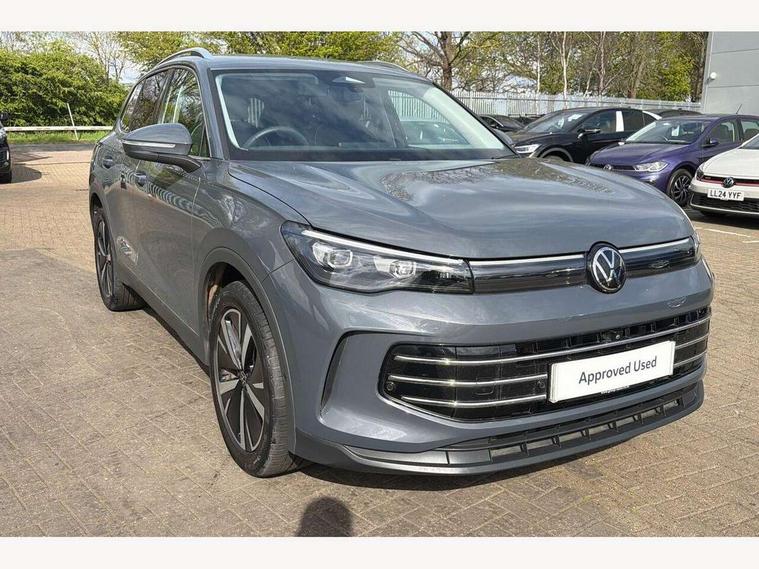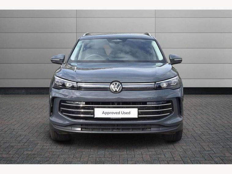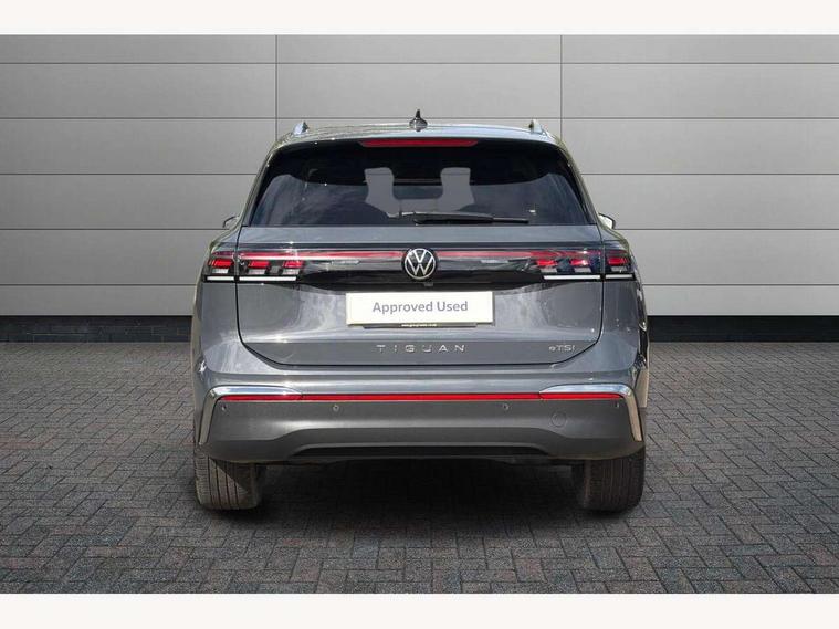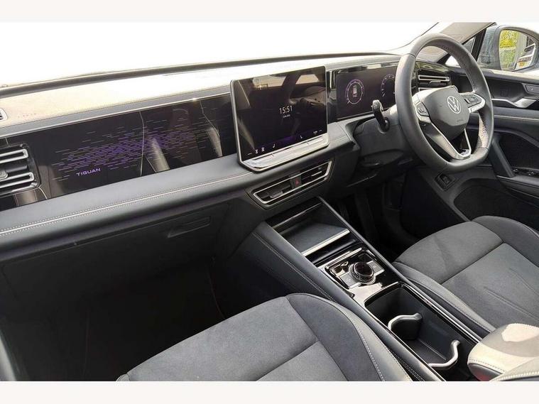 Adaptive cruise control (ACC), Advanced driver attention and drowsiness monitor, Bluetooth mobile phone interface, Comfort drive travel assist, lane keeping system, lane assist and emergency assist, Digital Cockpit Pro - 10.25" high resolution dash display screen with customisable menus and information, Dynamic road sign display, E-Sim card for online connectivity, eCall emergency call service, Front Assist - Autonomous emergency braking with pedestrian and cyclist monitoring, Lane change system, Side assist, Rear traffic alert and Exit warning system, Multifunction front facing camera, Oncoming vehicle braking when turning including swerve support, Park assistance plus with front and rear parking sensors, Power assisted steering with speed sensitive, Start/stop system with regenerative braking, Warning signal and warning light for front and rear seatbelts not fastened, Wireless App-Connect, Front wheel drive, Digital radio reception (DAB), Diversity antenna for FM reception, Ambient lighting with logo projection, Auto dimming interior rear view mirror, Automatic headlight control system, Body colored bumpers in R-Line style, Body coloured door handles, Body-coloured exterior mirror housings, Chrome moldings on the side windows, Coming/leaving home lighting function, Heat insulating glass in side and rear windows, Heated rear window, Heated windscreen washer jets, High level 3rd brake light, Illuminated door handle recesses, Illuminated lightline between headlamps, Laminated safety glass from B-pillar backwards 90% tinted, Laminated safety glass windshield, Rain sensor windscreen wipers, Rear fog light on one side, reversing light on both sides, Rear side wing doors, Rear wiper, Silver roof rails, 12V outlet in center console rear and in luggage compartment, 12V socket in centre console, 3 bench rear seats in 2nd row, Air care climatronic 3 zone air conditioning system with rear air conditioning control panel, Carpet mats, front and rear, Centre console with illuminated storage compartment with sliding cover and two drinks holders, Ceramique headlining, Chrome elements on the mirror switch and power window switches and door pulls, Door and side trim panel with leatherette insert, Door sill protectors, Front centre armrest, Interior ambient lighting with 30 colour options, ISOFIX anchors for child seats on outer rear seats and front passenger seat compatible with i-Size, Mechanical rear seat release, Power adjustable lumbar support in front, Rear bench seat, split folding, longitudinally movable and folding with load-through hatch and centre armrest, Safety optimised front head restraints, Single front passenger seat, Sports comfort seats in front, Sun visors with illuminated vanity mirrors, Three rear head restraints, Variable luggage compartment floor, Comfort package incl. Memory feature for Park assist and Safelock - Tiguan, Driver assistance package - Tiguan, 3 point seat belt for centre rear seats, 3 Point seat belts in front with pretensioners, 3 point seatbelts in outer rear with ECE label, Driver and front passenger airbag with front passenger airbag deactivation, Electronic parking brake with auto hold, Front and rear curtain airbags, Front and rear side airbags, Front centre airbag, Front disc brakes, Manual child proof rear door locks, Rear disc brakes, Two tone horn, Warning triangle, Anti theft wheel bolts, Decorative inserts Cross in dash and front door panels, Interior door handle in matte chrome, Soul instrument panel,