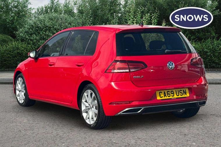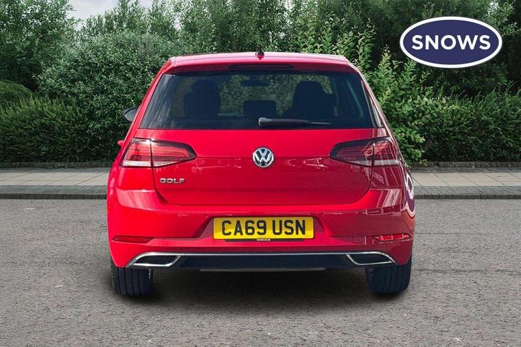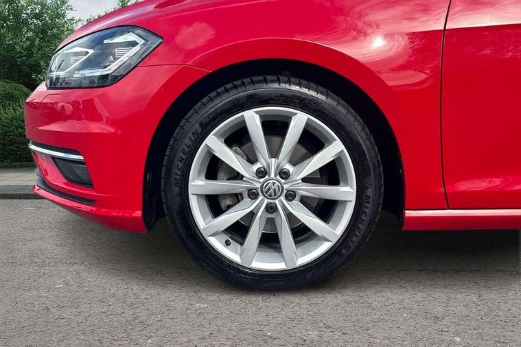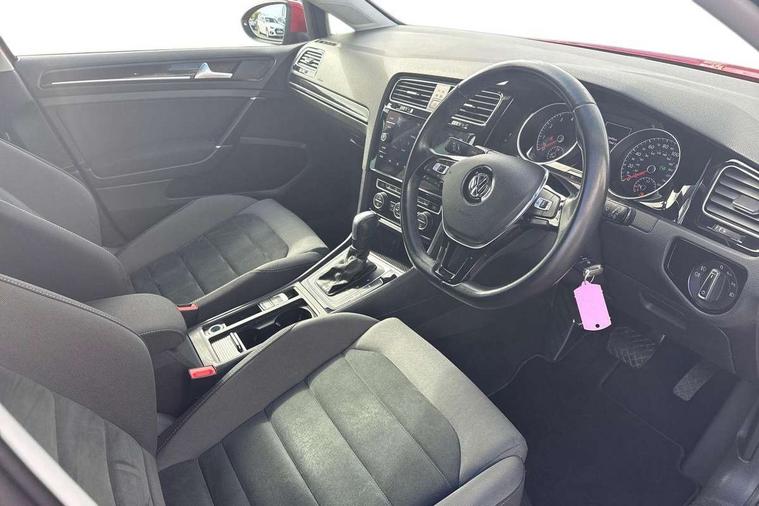 'Lights On' Reminder warning buzzer, ACC - Adaptive cruise control with front assist, forward collision warning, distance monitoring, city emergency brake and speed limiter, Bluetooth telephone and audio connection for compatible devices, Brake pad wear indicator warning light, Driver alert system, Driving Mode Selection with four preset modes - Eco, normal, sport or individual modes, Multifunction computer with visual gear change recommendation for fuel consumption, Power assisted speed sensitive electro-mechanical steering, Push tank flap, Speed limit display, Speedo, rev counter, electronic odometer, trip, service interval display, exterior temperature and fuel gauge, Stop/start system, Think blue trainer driver tips and journey analysis, Warning buzzer and light for front seatbelts unfastened, Battery regeneration during braking, XDS electronic differential lock, Composition media system, DAB Digital radio receiver, Driver Personalisation profile selection, MP3/WMA compatability, Multi device interface (MDI) via USB connection, Premium USB cable in choice of either Apple or Android smartphone compatibility, SMS Functionality, Title and cover art display, USB and SD card connectivity, Volkswagen media control, Black front air intake and radiator grille with chrome insert, Black rear diffuser, Body colour bumpers, Body colour door handles, Body colour door mirrors with integrated indicators, Chrome trimmed front air intake surrounds, Dusk sensor + automatic driving lights, Electric front windows, Electric rear windows, Electrically adjustable and heated door mirrors, Fully galvanised body, Heated rear windscreen, High level 3rd brake light incorporating LED Technology, LED front fog lights with static cornering light function, Range adjustable headlights via infotainment system with LED daytime running lights, Rear fog lamp, Rear number plate lights incorporating LED technology, Rear tinted glass 65% light absorbing from B pillar backwards, Rear window aerial, Rear window wash/wipe with intermittent wipe, Reflectors in all doors, Tailgate with integrated rear roof spoiler, Windscreen wipers/ intermittent wipe + 4 position delay, 12V socket in luggage compartment, 3 rear headrests, 4 load lashing points in luggage compartment, 60/40 split folding rear seat backrest, Bag hook in luggage compartment x 2, Climate control - 2 zone electronic air conditioning with automatic air recirculation and allergy filter, Cooled glovebox, Cover for storage compartment in centre, Dust/pollen filter, Front + rear carpet mats, Front centre armrest with storage compartment and two rear air vents, Front seat back storage pockets, Grab handles front x 2, rear x 2 with integrated coat hooks, Height and reach adjustable steering wheel, Illuminated vanity mirrors, Instrument lighting white adjustable panel illumination, Interior light delay, Isofix preparation for 2 rear child seats, Load through provision with rear centre armrest and cupholders x2, Luggage compartment lighting, Overhead storage box, Pearl grey headlining, Storage box in luggage compartment, Storage compartment in roof console with cover, Storage compartments in centre console, Storage compartments in front doors, Storage compartments in rear doors, Stowable luggage compartment cover, Sun visors, Variable boot floor, height adjustable and removable, Ambient lighting pack - Golf, Convenience Pack - Golf, Mirror pack - Golf, Winter pack - Golf, 3 rear three point seatbelts, Airbags - Driver's and front passenger's, curtain airbag, Driver's knee, front side impact and passenger's airbag deactivation switch, Anti-lock Braking System (ABS) with Hydraulic Brake Assist (HBA), Automatic post collision braking system, Child locks on rear doors, Driver/Passenger optimised head restraints, Electronic parking brake with auto hold, Electronic stability control (ESC) including Electronic differential lock (EDL) and ASR (Traction control) with deactivation via infotainment system, Front ventilated disc brakes and rear disc brakes, Pre crash preventive occupant protection, Three point height adjustable front seatbelts with tensioners, Tyre pressure loss indicator, Alarm with interior protection and deactivation via infotainment system, Electronic engine immobiliser, Chrome plated air vent surround, Chrome plated electric mirror adjustment switch surround, Chrome-plated light switch surround, Piano black decorative inserts in centre console, Tumbler decorative inserts, Steel space saver spare wheel,