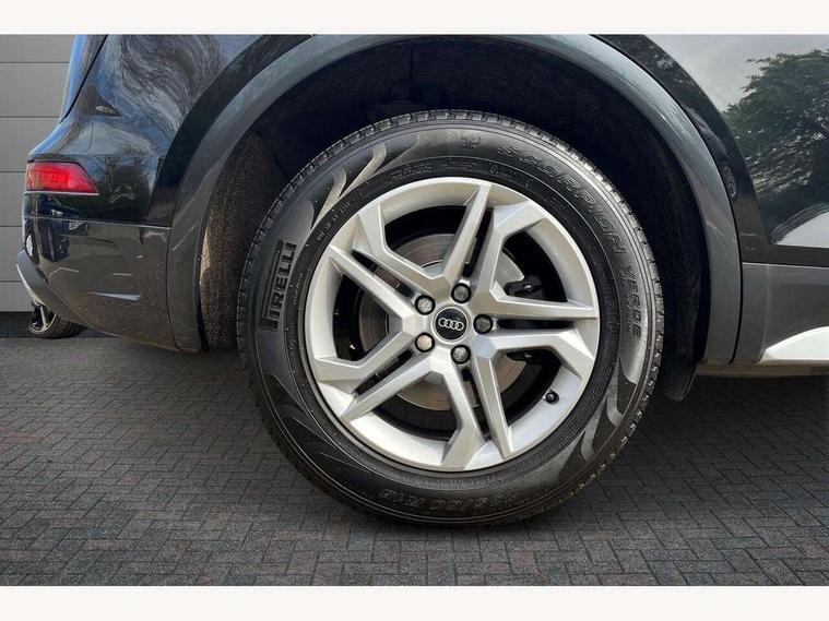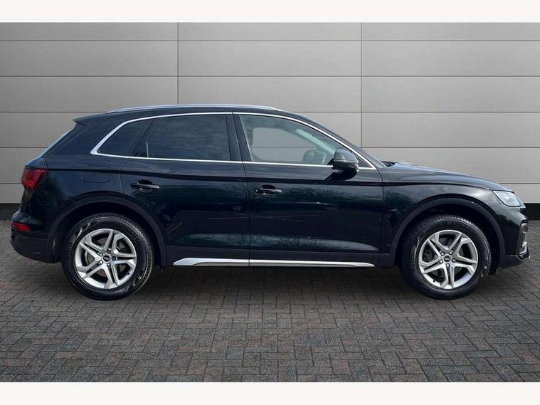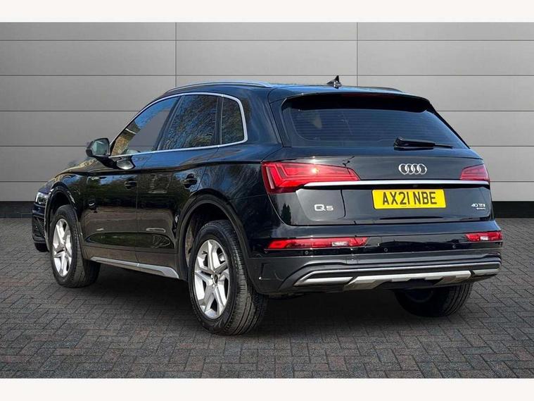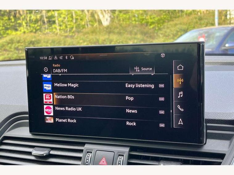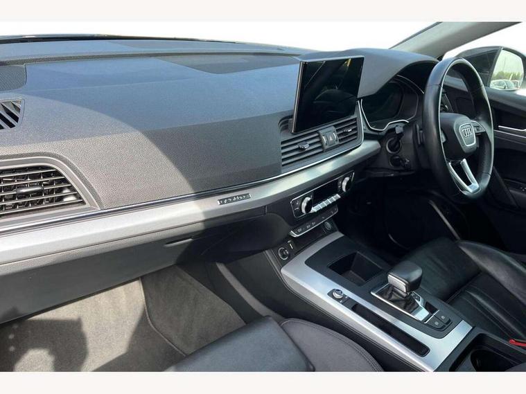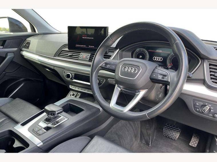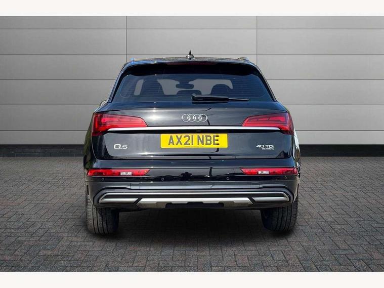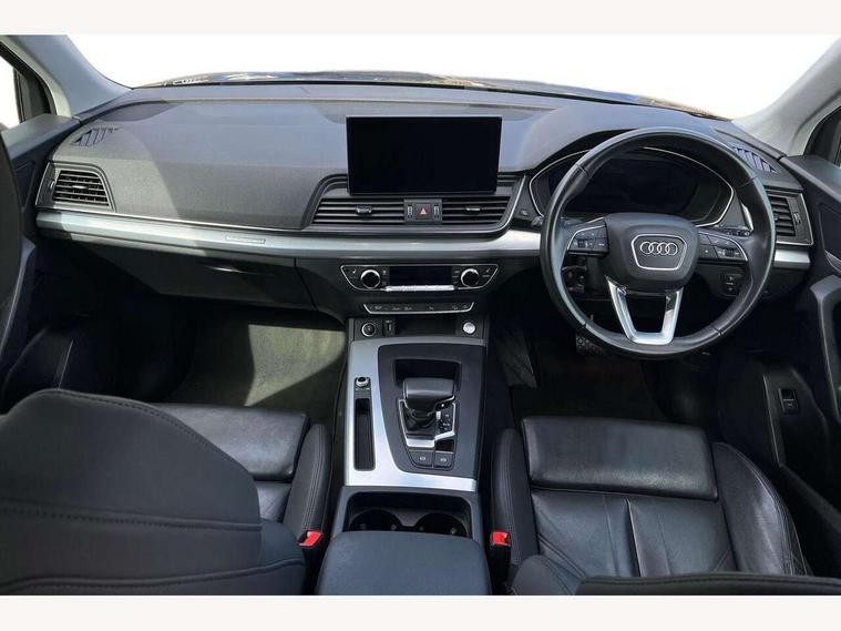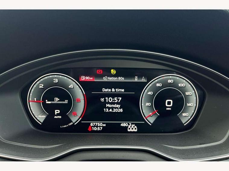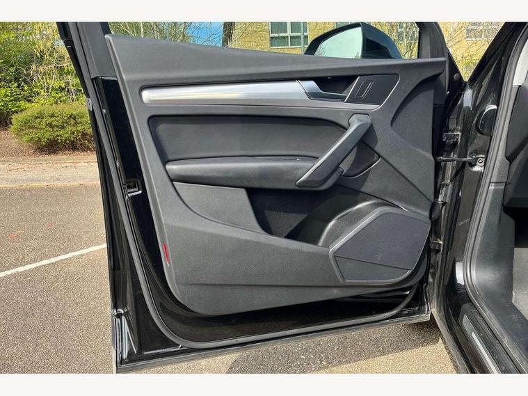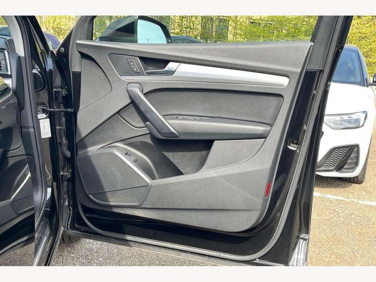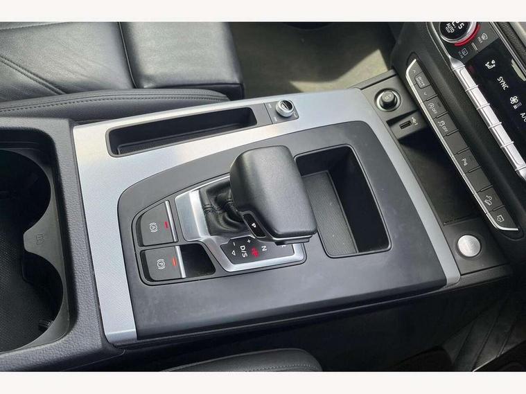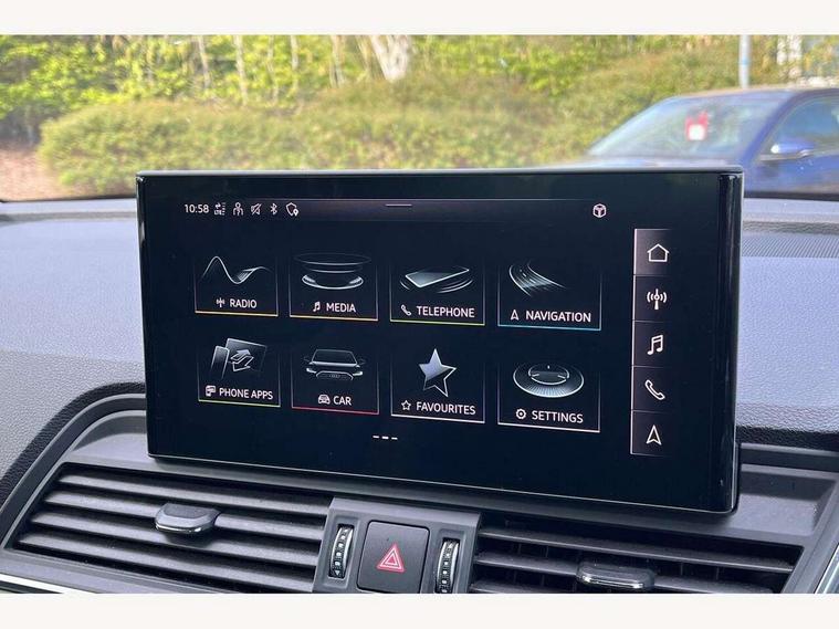 Audi connect safety and service (e-call), Audi connect with Amazon Alexa Integration, Audi drive select, Audi virtual cockpit plus with 12.3" screen and three different layout designs, Audi wireless smartphone interface, Automatic start-stop system with coasting functionality and efficiency programme, Bluetooth interface, Cruise control + speed limiter, Electro - mechanical power assisted steering, MMI navigation plus with 10.1" touch screen, Power tailgate, Reversing camera, Service interval indicator, Voice control system with Audi hotword activation "Hey Audi", Diesel particulate filter, Dynamic suspension, Quattro on demand, DAB Digital radio, Acoustic windscreen, Air inlets in matt titanium black with blades in matt aluminium silver, Aluminium roof rails, Auto dimming rear view mirror, Automatic headlights and windscreen wipers, Body colour bumpers, Body colour door mirrors, Chrome plated exhaust trims, Door sills in Selenite silver, Electric adjustable/heated/folding door mirrors, Front and rear electric windows, LED headlights and LED tail lights, Lower bumpers painted in contrast Manhattan grey, Matt selenite silver underbody protection, Matt twilight grey radiator grille with chrome vertical struts, Rear chrome trim strip below lights, Rear diffuser strip in selenite silver, Rear spoiler, Rear wiper, Roof bars, 2 x USB charging port with aux input socket, 3 rear headrests, 3 spoke multifunction leather steering wheel with shift paddles, 40:20:40 split folding rear seat with rear centre armrest, Comfort front centre armrest, Deluxe 3 zone electronic climate control, Door sills trims with aluminium inlays, Front/rear floor mats, Heated front seats, Height adjustable front head restraints, Height/reach adjustable steering column, ISOFIX child seat mounting and top tether, Luggage compartment cover, Manual seat adjustment with 4-way electric lumbar support, Removable luggage compartment floor, Silver cloth headlining, Sunvisors with vanity mirrors, Twin leather upholstery + front sports seats, High gloss pack - Q5, LED interior light pack - Q5, 3 point seatbelts on all seats, 6 airbags - Driver, front passenger, curtain and side airbags, Electrically operated child locks on rear doors, Electromechanical parking brake, Electronic stabilisation control including ABS, ASR and EDL, Front passenger airbag deactivation, Hill descent control, Hill hold assist, Multi collision brake assist, Pop-up bonnet for pedestrian protection, Pre sense city, Seat belt force limiter, Seatbelt monitoring, Tyre pressure warning, Warning triangle and first aid kit, Anti theft alarm, Anti-theft wheel bolts, Keyless Go access/ignition system, Aluminium rhombus inlay,