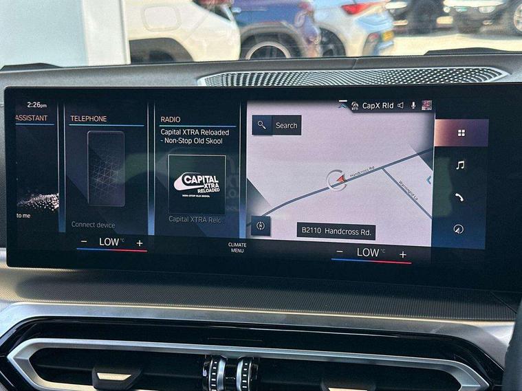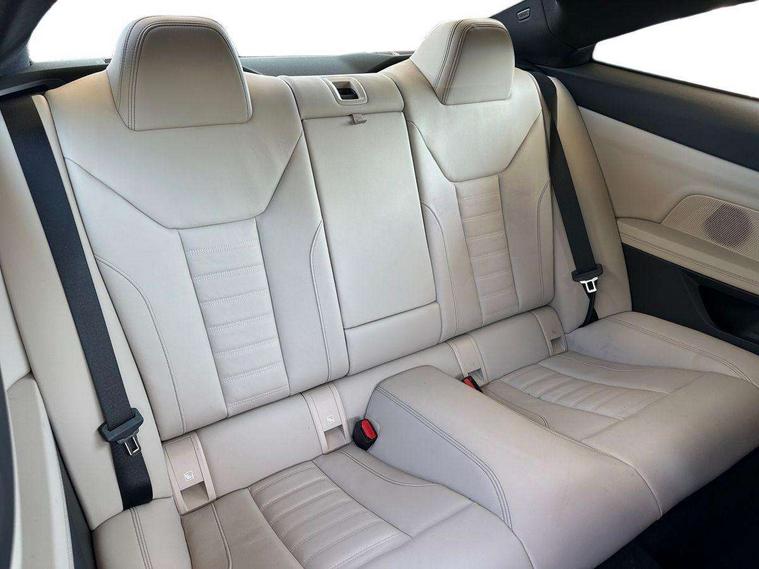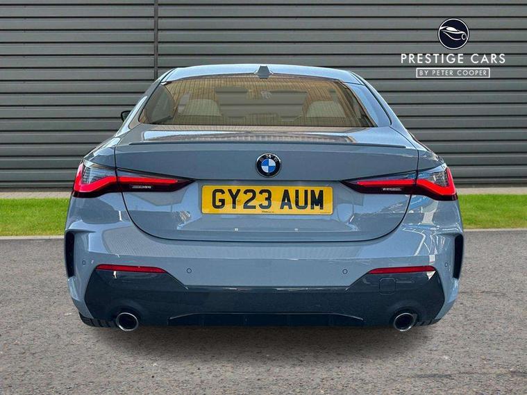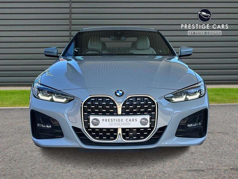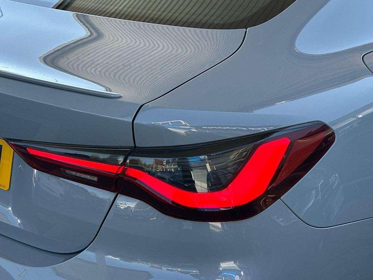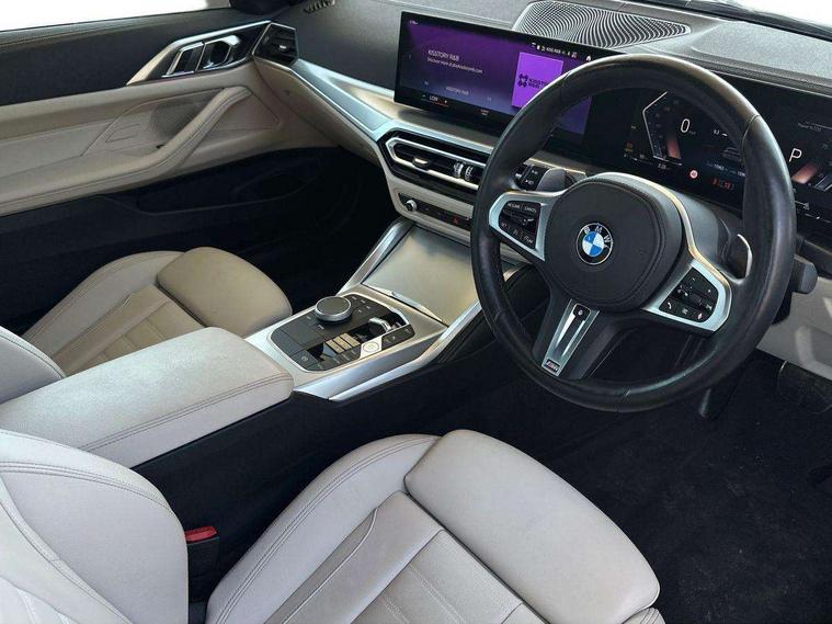 Active guard plus, Attentiveness assist, Auto start-stop, Bluetooth hands free facility with USB audio interface with audio streaming, BMW ConnectedDrive online services, BMW iDrive controller on centre console, BMW Live Cockpit Plus Nav-12.3" instrument&14.9" control Widescreen curved display/Intelligent Voice Assist/iDrive touch/Access 3rd party app/4G LTE, BMW service history, BMW Teleservices, Brake pad wear indicator in front and rear, Check Control warning system for monitoring of lights and door/luggage compartment open warning, Condition based service, Cruise control with speed limit function, Electric power steering with Servotronic steering optimised at all speed ranges, Gearshift time display in manual mode, Instrument cluster with speedometer with mph readout, tachometer, fuel gauge and oil temperature gauge, Integrated owners handbook, Oil sensor for level and grade, warning by check control system, On board computer - average speed, fuel consumption, outside temp display with acoustic warning, clock/date, service interval, odometer/trip meter, Optimum shift indicator, Run flat indicator, Shifting point display, Variable sport steering, 8 speed automatic steptronic transmission with gearshift paddles, Balanced 50/50 weight distribution, Double joint spring strut front axle, Double VANOS, Drive performance control - ECO PRO, comfort and sport modes, Electronic differential lock control (EDLC), High precision injection, Low centre of gravity, M sport suspension, Petrol Particulate Filter, Stroke dependent dampers, VALVETRONIC engine management, 2x USB Type C ports in front centre console for charging and data transfer, 2x USB Type C ports in rear centre console for charging, DAB tuner, Electronic service booklet, Acoustic glazing, Automatic headlight beam throw control with load dependent regulating reaction, dynamic compensation of braking dive and acceleration squat, Automatic windscreen wipers and automatic headlight, Automatically dimming electrochromatic rear view mirror, BMW emblem on engine compartment lid and tailgate, BMW kidney grille with mesh grille front side of the nuggets in matt aluminium and frame in chrome high gloss, Body colour fuel filler flap, Body colour roof fin, Brushed aluminium inserts in the front door sill finishers with BMW designation, Door sill strips, Dynamic brake lights, Electric windows - front and rear, with open/close fingertip control, anti trap facility and comfort closing function all round, Exterior mirrors - electrically folding with anti-dazzle, Fading support, Follow me home headlights, Front and rear bumper system, Front apron plastic in body colour, Green tinted heat protection glazing, High gloss shadow line exterior trim, Illuminated bow type door handles in body colour drivers side with door lock, Interior rear view electrochromatic mirror with automatic anti dazzle function, LED daytime running lights, LED front fog lights, LED front indicators, Licence plate panel integrated into front bumper and tailgate, Lightweight engineering, M designation on front side panels, left and right, M rear boot spoiler, Model designation on right side of tailgate, One piece front bumper cover including towing eye cover in body colour, Preparation for high beam assistant, Rear boot, Reversing light, Side frame decorative moulding black matt, Two part LED tailights in L-shape with components in smoked glass, brake light, LED turn indicator and rear fog light, Visible exhaust tailpipe finisher, Visible VIN plate, Welcome lights in interior and door handle area, Widened track and increased camber values for max transverse dynamics, agility and steering precision, Window recess cover black high gloss, Windscreen wipers with integrated heated washing jets, 12V power socket in front centre console, 2 front cupholder in centre console with clamping elements and matt black inlay, 2 Rear seat headrests, 2 seat bench in second row, 3 spoke M sport leather multifunction steering wheel, 3 zone automatic air conditioning, 4 pieces lashing eyelets in luggage compartment, 40:20:40 split folding rear seat and rear centre armrest with two cupholders, Anthracite headlining, Armrest integrated in front and rear door trim + front centre console armrest, BMW ID, Driver seat backrest width adjustment, Extended storage - Luggage compartment partition net on left side trim panel, Bag hook on both sides of the luggage compartment, Four grab handles integrated in roof lining, Front and rear door pockets, Front and rear reading lights, Front sport seats, Heated driver and front passenger seats, Height adjustable front headrests, Height adjustable mechanically and infinitely variable steering column, Illuminated armrest storage compartment, Illuminated glove compartment with separate small compartment, Make-up mirror lights, Single front passenger seat, Storage compartment in rear centre console, Sunvisors with illuminated vanity mirrors and ticket pocket, Toolkit located in luggage compartment, Velour front floor mats, Vernasca leather upholstery, Ambient lighting pack - 4 Series, Connected professional package - 4 Series, M sport exterior styling pack - 4 Series, 2 x 3-point rear seatbelts, Battery safety cut-off, BMW emergency call, Brake energy regeneration, Braking pre-tensioning, Child seat ISOFIX attachment for the two outer rear seats, Coasting in idle in ECO PRO mode, Cornering brake control (CBC), Crash sensor activating of airbags, Unlocking doors, hazard warning lights, interior light, safety battery terminal, Driver and front passenger side airbags, integrated in the door side seat backrest bolsters for all seat variants, Driver/Front Passenger airbags, Dry braking, Dynamic brake control, Dynamic stability control + (DSC+) - Anti-lock Braking System (ABS) with brake assist and cornering brake control + Automatic Stability Control (ASC), Dynamic Traction Control - DTC, Electric parking brake including automatic hold function and automatic release of the parkin