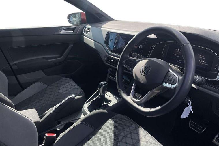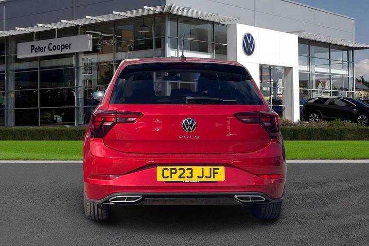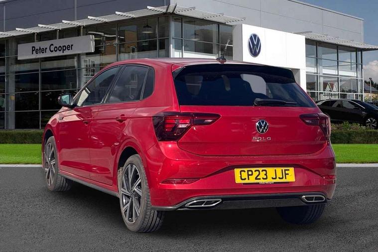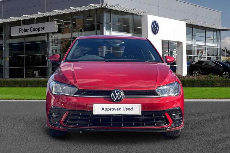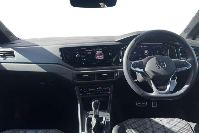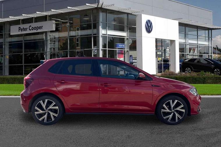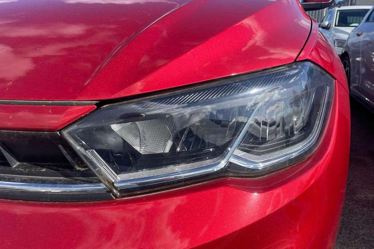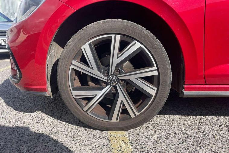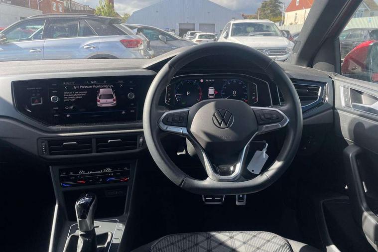 Adaptive cruise control with follow-to-stop and speed limiter, Bluetooth mobile phone interface, Digital Cockpit Pro with 10.25" Display, Driver alert system, Dynamic road sign display, Emergency call service, Power assisted speed sensitive steering, Preparation for We connect and We connect plus, Speedo and rev counter, electronic odometer, trip, service interval display and fuel gauge, Standard rear axle, Travel Assist - Lane keeping system and traffic jam assist, Travel assist including emergency assist, Trip computer, Warning signal and warning light for front and rear seatbelts not fastened, Washer fluid level indicator, Wireless app connect, Front wheel drive, Rear shock absorpion, Start-stop system with battery regeneration (recuperation - energy recovery during braking), DAB Digital radio, Diversity antenna for FM reception, Front and rear 6 speakers, Body colour bumpers, Body colour door handles, Body colour door mirrors, Electric front windows, Front scuff plates with R-Line logo, Heat insulating darkened glass in side and rear windows, Heat insulating glass windscreen, Power folding adjustable/heated exterior mirrors and front passenger exterior mirror lowering function, Rear electric windows, Rear fog light, Rear side wing doors, Rear tinted glass from B-pillar backwards approx 65% tinted, Rear windscreen washer and wiper with interval delay, Third brake light, 12V power socket in centre console, 2 USB-C ports in the front, 2 USB-C charging sockets on the center console in the rear, 3 rear head restraints, 60/40 split folding rear seat and rear seat bench not split, Air care climatronic air conditoning system with active combination filter and 2-zone temperature control, Black roof lining, Chrome plated radiator grille inserts, air vent surrounds and light switch surrounds, Door and side trim panel, Driver and front passenger seat height adjustment, Driver/passenger sunvisors with illuminated vanity mirrors, Front + rear carpet mats in recycled material, Front centre armrest, Front footwell illumination, Front seat backrest storage pockets, Front sports comfort seats, Handbrake lever handle in leather, Headliner in recycled material, Isofix child seat preparation easy-fit (for two outer rear seats, and front passenger seat) compatible with I-size, Karoso artvelours cloth upholstery, Leather trimmed gear knob, LED interior light with switch off delay and dimmer, 2 reading lights front and rear, Luggage compartment cover, Luggage compartment floor, Luggage compartment lighting, Lumbar adjustment for front seats, Single front passenger seat, Stainless steel pedals, Standard pedal cluster, Three spoke leather wrapped multifunction steering wheel with shifting paddles, Light and sight pack - Polo R-Line/Black Edition, 3 point height adj front seatbelts + pretensioners, 3x3 point rear seatbelts, ABS, Driver and front passenger airbag with front passenger airbag deactivation, Drivers and front passengers safety optimised head restraints, ESC (Electronic stability control) + EDL (Electronic Differntial lock) and ASR (Traction control), Extended and predictive pedestrian/ cyclist protection, Front curtain and side airbags with center airbag, Hill hold control, Manual child lock in rear doors, Single tone horn, Tyre pressure loss indicator, Alarm with interior protection, Anti-theft alarm system with interior monitoring, backup horn, and towing protection, Anti-theft wheel bolts, Electronic engine immobiliser, Chrome applications on rotary light, mirror adjustment, window regulator switches, outlet with frame in black, Dark grey anodised matt decorative inserts in dash and front door panels, Low rolling resistance tyres,