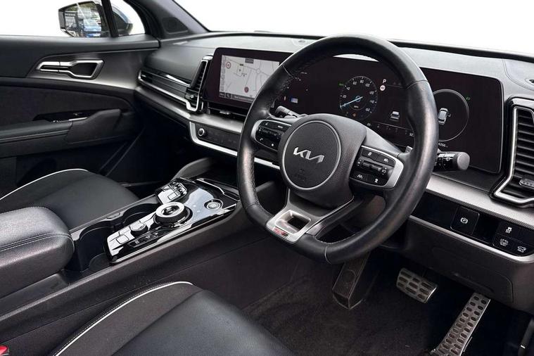 12.3" Display with navigation, 12.3" supervision colour cluster display, 360 degree around view monitor, Apple car play/Android Auto with voice control, Blind spot collision avoidance assist, Blind spot view monitor, Drive mode selector, E-call, Forward collision avoidance assist (FCA) - city/pedestrian/cyclist/junction covering, Front and rear parking sensors, Highway Driving Assist (HDA), Intelligent speed limit assist, Kia Connect (UVO), Lane Following Assist (LFA), Lane keep assist, Low washer fluid warning, Parking collision avoidance assist (PCA), Remote smart parking assist, Reversing camera system integrated into centre fascia screen, Smart cruise control with stop and go functionality, Smart power tailgate, Speed sensitive power steering, Trip computer, Windscreen washer level indicator, Wireless Smartphone charger, Intelligent Stop and Go, Terrain mode select (Mud, Snow, Sand), Bluetooth audio streaming, DAB Radio with MP3, Harman Kardon premium sound system, Rear USB port, Steering wheel mounted audio controls, USB C type charging ports on centre console, USB C type charging ports on side of front seats, USB port for connection of a media device, All round electric windows with drivers and front passenger auto up/down function, Automatic headlight control system, Automatic window defogger, Backlite glass heated with timer, Body colour and black bumper with silver accents, Body colour exterior door handles, Body colour radiator upper garnish and door garnish, Dual LED adaptive headlamps, Electric panoramic glass sunroof (Electric one touch with safety function), Electrically adjustable/heated/folding door mirrors with LED indicators, Front and rear chrome skid plates, Gloss black door mirrors, Gloss black radiator grille, Gloss black side sill and wheel arch body mouldings, Glossy black roof rack, High beam assist, Interior electrochromic mirror, LED daytime running lights, LED front fog lamps, LED High mounted stop light, LED rear combination lamp, Rain sensing wipers with aero blades, Rear fog lamp, Rear privacy glass, Rear side wing doors, Rear spoiler, Rear wiper, Satin finished beltline, Silver coloured inserts to bumpers, Tinted rear glass, Trailer stability assist, 10 way driver/8 way passenger electrically power adjustable seats, 12V power socket in front centre fascia and luggage compartment, 3 seat bench in 2nd row, 3 x passenger assist grips, 40/20/40 split folding rear seat, All-round height adjustable headrests, Ambient lighting, Black headlining, Centre console storage box, Cupholders in rear armrest, D-Shaped sports leather steering wheel and perforated inserts with GT-Line logo, Door courtesy lamps, Drink holder at centre armrest, Driver and front passenger side sunvisors with illuminated vanity mirrors, Driver seat memory function, Drivers seat power lumbar support, Front and rear door storage, Front seat and rear pockets, Front/rear centre armrests, Gear shift indicator, Glovebox illumination, Heated front and outer rear seats, Heated steering wheel, Interior door lock/unlock function, ISOFIX Child seat top tethers and anchor fixings outer rear seats, LED interior personal lamp, LED lighting in overhead console, Luggage area LED light, Luggage area load cover, Luggage net with hooks, Metal paint interior door handles, Paddle shift controls, Rear cabin light, Rear coat hooks, Single front passenger seat, Sports pedals, Suede leather upholstery, Three zone climate control, Tilt/telescopic adjustable steering wheel, Ventilated front seats, Ventilation ducts to rear compartment, Active front headrests, All round 3-point seatbelts, Anti-lock braking system (ABS), Dual front side airbags, Dual horn, Electronic parking brake, Electronic stability control with downhill brake control, Front passenger airbag cut-off switch, Front seatbelt pretensioners + load limiters, Height adjustable front seatbelts, Hill start assist control (HAC), Impact sensing auto door unlocking, Multi collision brake assist, Rear door child safety locks, Rear seat alert system, Traction control, Twin curtain airbags, Twin front airbags, Tyre pressure monitoring system, Advanced anti-theft system including immobiliser and alarm, Door deadlocks, Engine Start/Stop Button with Smart Entry System, Locking wheel nuts, Speed sensitive auto door locking, Visible vehicle identification number, Aluminium pattern finish centre fascia and door garnish, 18" GT-Line alloy wheels, Michelin tyres, Tyre mobility kit,