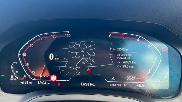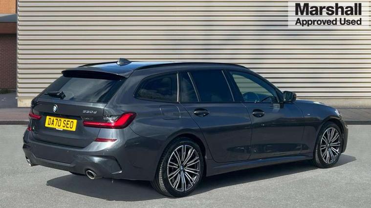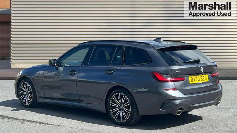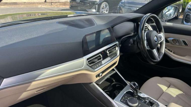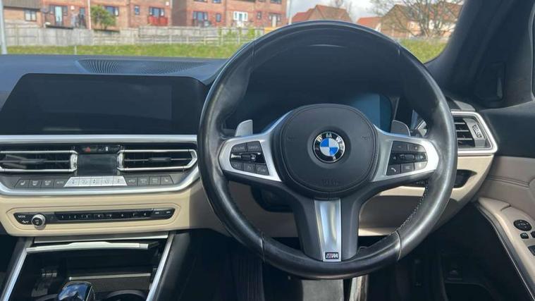 Active guard plus, Attentiveness assist, Auto start-stop, BMW iDrive controller on centre console, BMW Live Cockpit Professional Nav with 12.3" instrument display + 10.25" display, Intelligent Voice Assist, BMW OS 7, HDD, 2USB, 4G LTE connect, BMW service history, BMW Teleservices, Brake pad wear indicator in front and rear, Check Control warning system for monitoring of lights and door/luggage compartment open warning, Condition based service, Electric power steering with Servotronic steering optimised at all speed ranges, Instrument cluster with speedometer with mph readout, tachometer, fuel gauge and oil temperature gauge, Integrated owners handbook, Oil sensor for level and grade, warning by check control system, On board computer - average speed+fuel consumption, service interval, clock/date, odometer/trip meter, outside temperature display and ice warning, Optimum shift indicator, Personal Profile - automatic lock when driving away selectable, Variable sport steering, Balanced 50/50 weight distribution, Battery cut-out switch, Diesel particulate filter, Drive performance control - ECO PRO, comfort and sport modes, Electronic differential lock control (EDLC), Incorrect fuelling protection, Larger capacity fuel tank, M sport suspension, Sport automatic transmission with steering-wheel mounted gearshift paddles and launch control, Stroke dependent dampers, DAB tuner, Electronic service booklet, Acoustic glazing, Automatic headlight beam throw control with load dependent regulating reaction, dynamic compensation of braking dive and acceleration squat, Black roof mouldings, Body colour door handles, Body colour fuel filler flap, Body colour mirror caps, Dynamic brake lights, Electric windows - front and rear, with open/close fingertip control, anti-trap facility and comfort closing, Exhaust tailpipe - split left and right, Exterior mirrors - electrically folding with anti-dazzle, Fading support, Front and rear bumper system with replaceable deformation elements, Front black door sill finishers with BMW designation, Green tinted heat protection glazing, Interior rear view electrochromatic mirror with automatic anti dazzle function, LED daytime running lights, LED front fog lights, Lightweight engineering, M designation on front side panels, left and right, Matt black exterior B pillar, Rain sensor with automatic headlight activation, Rear wiper, Shark fin antenna, Two part LED tailights in L-shape with components in smoked glass, brake light, LED turn indicator and rear fog light, Visible VIN plate, Welcome lights in interior and door handle area, Windscreen wipers with integrated washing jets, xDrive designation on left tailgate, 12V power socket in front storage compartment, 2 front cupholder in centre console with clamping elements and matt black inlay, 3 rear seats with non folding headrests with 3 point seat belts, 3 zone automatic air conditioning, 4 pieces lashing eyelets in luggage compartment, 40:20:40 split folding rear seat with loading system, Ambient lighting with welcome carpet light, Anthracite headlining, Armrest integrated in front and rear door trim + front centre console armrest, Centred top Luggage compartment lights, Four grab handles integrated in roof lining, Front and rear door exit lighting (left / right), Front and rear door pockets, Front and rear reading lights, Front and rear velour floor mats, Front head restraints, Front sport seats, Heated driver and front passenger seats, Height adjustable mechanically and infinitely variable steering column, Illuminated armrest storage compartment, Illuminated glove compartment with separate small compartment, Interior lighting - front centre over interior mirror with soft light, rear centre and front and rear footwell lighting, M Sport multifunction leather steering wheel, Make-up mirror lights, Rear centre armrest with 2 cupholders, Rear centre console with storage compartment and ventilation grille, Sunvisors with vanity mirrors and ticket pocket, Toolkit located in luggage compartment, Connected pack professional - 3 Series Saloon/Touring, M Aerodynamics pack - 3 Series Saloon/Touring, 2 tone horn, BMW emergency call, Brake energy regeneration, Braking pre-tensioning, Child proof locking system in rear door, Child seat ISOFIX attachment rear outer seats, Coasting in idle in ECO PRO mode, Crash sensor activating of airbags, Unlocking doors, hazard warning lights, interior light, safety battery terminal, Driver and front passenger side airbags, integrated in the door side seat backrest bolsters for all seat variants, Driver/Front Passenger airbags, Dry braking, Dynamic brake control, Dynamic stability control + (DSC+) - Anti-lock Braking System (ABS) with brake assist and cornering brake control + Automatic Stability Control (ASC), Dynamic Traction Control - DTC, Electric parking brake including automatic hold function and automatic release of the parking brake when driving off, Front passenger manual airbag deactivation, Head airbags for all 4 outer seats, Hill start assist, M Sport braking system, Seat belt security check for driver and front passenger, Side impact protection, Three 3 point seat belts on all seats including front belt stopper, pyrotechnic belt tensioners and belt force limiters, Tyre pressure monitoring with three level warning strategy, Ventilated front and rear disc brakes, Warning triangle and first aid kit, Alarm system (Thatcham 1) with remote control and electronic engine immobiliser, Central locking switch for all doors, fuel filler cap and luggage compartment, Remote control with integrated key one button open/close vehicle and windows, sole opening of the luggage compartment lid and panic mode, Start/stop button with Comfort Go keyless engine start and auto Start/stop deactivation button, Vehicle key with M specific designation, Reduced rolling resistance tyres,