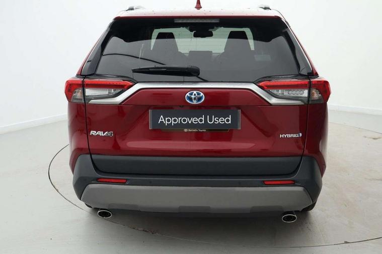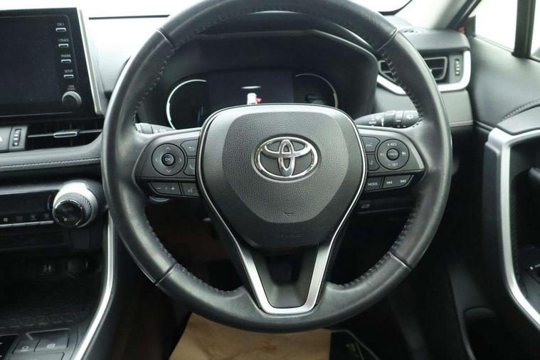 7" colour TFT display, Adaptive cruise control with lane trace assist, Adjustable speed limiter, Bluetooth system, Cyclist Detection, Drive mode selector, eCall emergency call system, ECO-driving indicator, Electric power steering, Hybrid system indicator, Lane departure warning system, Lights on warning, Night Time Pedestrian Detection, Pedestrial detection, Power boot opening and closing, Rear parking camera, Rear parking sensors, Remote boot door release in cabin, Tachometer, Touch 2 Go navigation system including 3D maps and voice control, Traffic sign recognition, Trip computer, Voice control system, Vehicle Stability Control (VSC), 6 speakers, 8" Multimedia display touch screen, Auxiliary socket for external MP3 player, DAB audio, Steering wheel mounted audio controls, Toyota touch media system, USB connection, Auto dimming interior mirror, Auto high beam, Automatic headlamp levelling, Automatic headlights, Automatically retractable door mirrors, Black roof rails, Body colour door handles, Body colour door mirrors, Body colour rear spoiler, Body coloured bumpers, Body coloured Shark-fin antenna, Electric adjustable door mirrors, Emergency brake-light signal (EBS), Follow me home headlights, Front fog lights, Headlight cleaners, Heated door mirrors, LED daytime running lights, LED High mounted stop lamp, LED rear lights, Meshed shape upper front grille, Parabola LED headlights, Power front windows, Power rear windows, Privacy glass, Rear screen wiper - intermittent, Rear windscreen defogger, Silver front under-run, Silver rear under-run, Trailer sway control, Turning signal integrated indicators in door mirrors, 3 rear headrests, 60/40 split fold rear seat back, Boot light, Clean air filter, Cloth upholstery, Driver and front passenger personal light, Driver and front passenger Whiplash Injury Lessening seats, Driver and passenger sunvisors with illuminated vanity mirrors, Dual sided deck board in boot, Dual zone automatic air conditioning, Floor mats, Folding rear centre armrest, Front and rear bottle holders, Front centre armrest, Front footwell lights, Front headrests, Front/rear roof mounted assist grips, Grey roof lining, Isofix child seat preparation, Leather gear shift with chrome surround, Manual telescopic and tilt 3-spoke leather steering wheel with Chrome insert, Manually height-adjustable sliding and reclining driver seat, Manually reclining and sliding front passenger seat, Pollen filter, Rear coat hooks, Rear door armrests, Rear passenger air vents, Reclining rear seats, Satin chrome interior door handles, Sunglasses holder, Parking pack - Rav4, 3x3 point rear seatbelts, ABS/EBD, Adjustable front driver and passenger seat belt extender, Brake assist function, Child proof door locks, Collision mitigation braking system, Driver/Front Passenger airbags, Driver/front passenger side airbags, Drivers knee airbag, Electronic parking brake, Electronic Stability Programme (ESP), Emergency brake light system (EBS), Front and rear curtain airbags, Front and rear seatbelt reminder, Hill start assist, Passenger airbag cut-off device, Seatbelt pretensioners with load limiters, Traction control, Tyre pressure warning, Alarm/immobiliser, Glass-breaking alarm sensors, Light - on and Key in reminder, Remote central locking, Smart entry + Smart start, Speed sensitive auto door locking, Tilt detection sensors, Piano black centre console with silver insert, Soft-touch black lower dashboard, Soft-touch black upper dashboard with silver insert, Full size spare wheel,