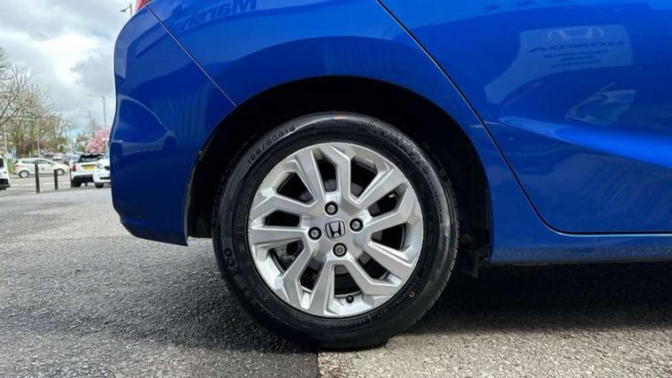 Adaptive motion for electric power steering, Bluetooth hands free telephone connection, Connect Navigation with 7" touchscreen, Digital Radio, Radio/CD/Mp3, Aha app integration, internet browsing, Cruise control with speed limiter, Emergency stop signalling system, Forward collision warning, Front and rear parking sensors, Idle stop, Intelligent speed assist, Lane departure warning system, Multi-information display, Traffic sign recognition, Vehicle stability assist, 'Shark fin' mobile antenna, 2x USB and HDMI, 4 speakers, Steering wheel mounted audio controls, Automatic coming/leaving home lighting function, Automatic headlights with dusk sensor, Automatic rain sensing wipers, Body colour door handles, Body colour door mirrors, Body coloured bumpers, Drivers one touch power window up/down, Electric heated + adjustable door mirrors, Electrically retractable door mirrors, Front and rear power windows, Halogen headlights, High beam assist, LED daytime running lights, LED high level brake lights, Rear wiper with intermittent and reverse linked, Cloth upholstery, Driver's seat height adjustment, Driver/passenger sunvisors and vanity mirrors, Front accessory power socket, Front map lights, Front/rear courtesy lights, Gear shift indicator, Isofix child seat restraint mechanism, Luggage area under floor storage box, Magic seat flexibility system, Manual air conditioning, Paddle shift controls, Passenger seat back pocket, Rear head restraints, Rear parcel shelf, Reclining rear seats, Tilt/telescopic adjustable steering wheel, Trunk light, 3x3 point rear seatbelts, ABS/EBD, Active city braking, Anti-whiplash front headrests, Brake assist function, Deflation detection system, Driver's side SRS airbag, Dual front SRS airbags, Front and rear curtain airbags, Front and rear seat belt with emergency locking retractor, Front side airbags, Hill start assist, Passenger SRS airbag cut-off device, Honda super locks, Immobiliser, Remote central locking with 2 remote folding keys, Security alarm, Tyre repair kit,