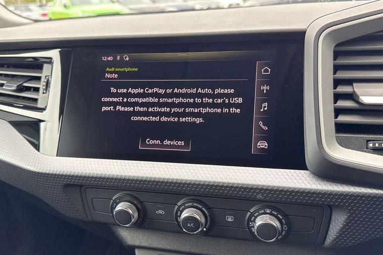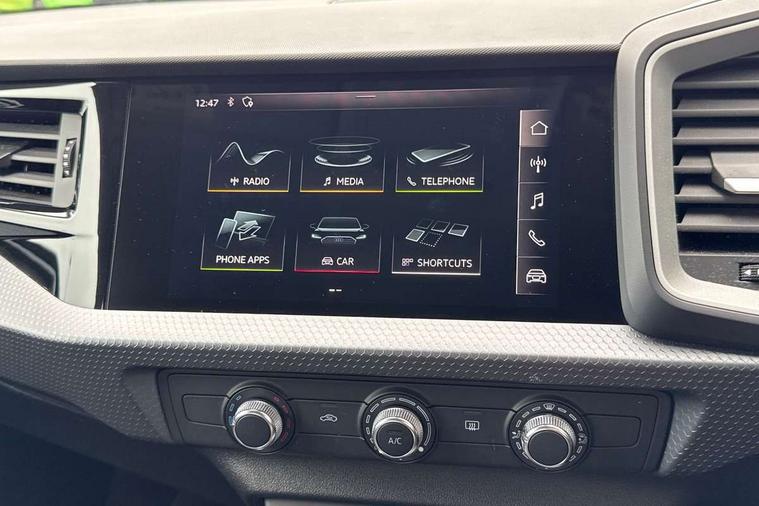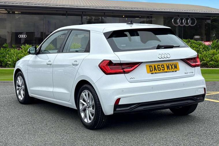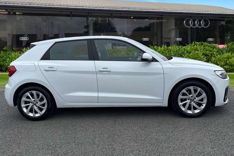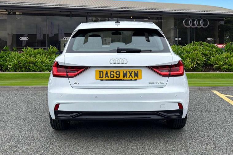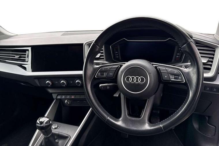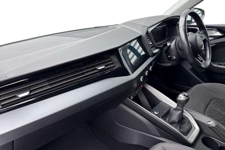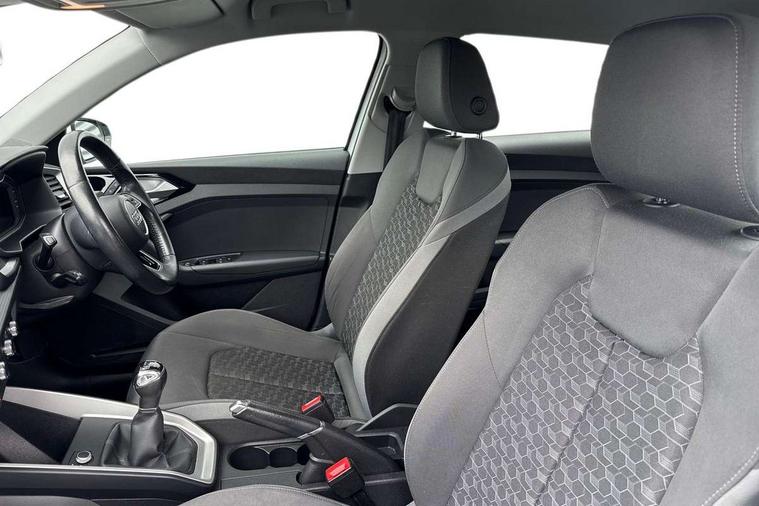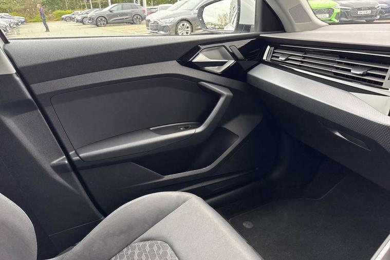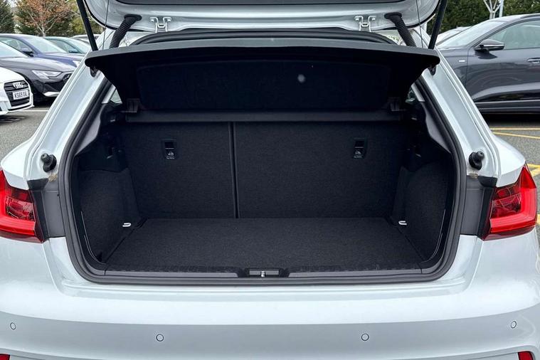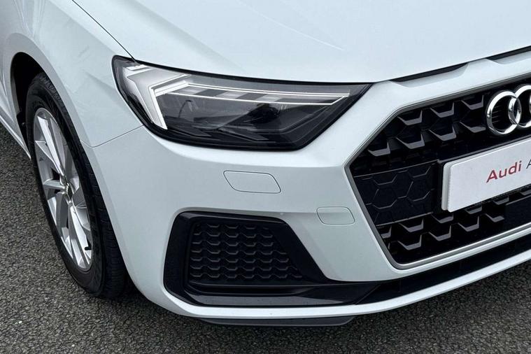 Aluminium trim for control switches, air vents and digital instrument cluster, Silver grey accent areas including air vents, door handle recesses and centre console in diamond paint finish, Slate grey inlays polygon structure in fine paint finish, Luggage compartment pack - A1, Anti theft alarm, Anti theft wheel bolts and loose wheel warning, Audi pre-sense front with pedestrain and cyclist recognition, Immobiliser, Remote central locking with 2 foldaway keys, 1 x SDXC card reader, 1 x USB type C and 1 USB type A charging points, DAB Digital radio, MMI radio plus with 8.8" colour MMI display screen and MMI touch, 3x3 point rear seatbelts, Brake assist function, Driver and front passenger airbag with front side and head airbags, Electronic Stability Control including ABS, EBD, ASR and EDL, Front and rear seatbelt reminder, Front passenger airbag deactivation switch, Hill hold assist, Seatbelt height adjustment for front seats, Seatbelt monitoring, Tyre pressure warning light, Warning triangle and first aid kit, Auto dimming rear view mirror, Body coloured bumpers, Body coloured door mirrors, Electric front and rear windows, Electrically adjustable, heated, folding door mirrors with integrated LED side indicator, Front side air inlets in grained matt black and C frame in titanium black, Heat insulating glass windscreen and side windows, Heated rear windscreen, LED headlights with LED rear lights + dynamic rear indicators + headlight adjustment and high beam, turning light + LED daytime running lights, Radiator grille and rear diffuser in matt titanium black, Radiator protective grille frame in matt aluminium silver, Rain and light sensors, Rear fog lights, Rear wiper, Scandium grey tailpipe trim, Side front spoiler lips in grained matt black, 12V socket in centre console with two cup holders, 3 rear seats with headrests, 40:60 Split folding rear seat or folded fully, Door sill trims with aluminium inlay, Driver and passenger seat with manual height adjust with forward and backwards adjustment, Front head restraints, Front/rear floor mats, Height and reach adjustable steering wheel, ISOFIX child seat mounting for front passenger and outer rear seats including top tether attachment point of outer rear seats, Leather gear knob with aluminium trim, Leatherette handbrake grip, Luggage compartment light with front and rear reading lights, Manually adjustable lumbar support in front seats, Novum cloth upholstery with front sport seats, Titanium grey cloth headlining, 10.25" Digital instrument cluster display classis style instrument dials + speed, odometer, time, outside temperature, telephone menu + fuel level warning, Audi connect safety emergency and service including E-call, Audi drive select - power steering assistance + engine, Audi smartphone interface with connect compatible smartphone via USB directly MMI display + Nav, music, third party apps controlled via MMI controller, Automatic start/stop system, Bluetooth interface, Cruise control, Driver's information system, Electromechanical power steering, Lane departure warning system, Rear parking sensor, Service interval indicator, Speed limiter, Voice control system, Washer fluid level indicator, Dynamic suspension,