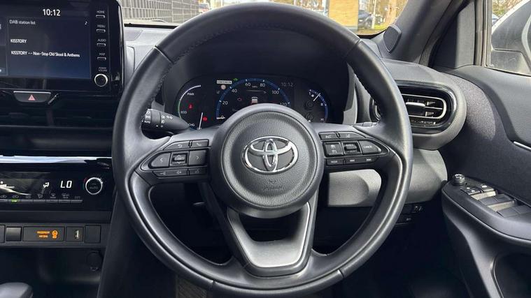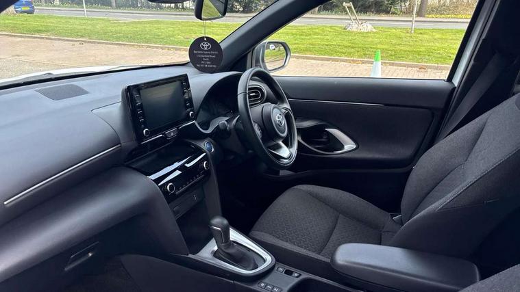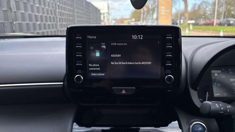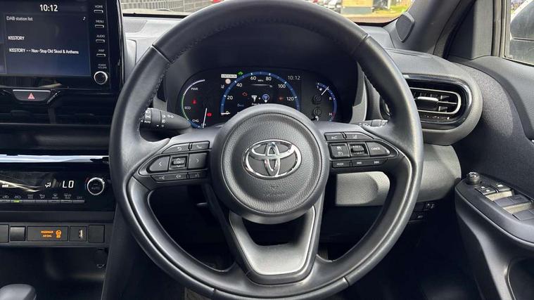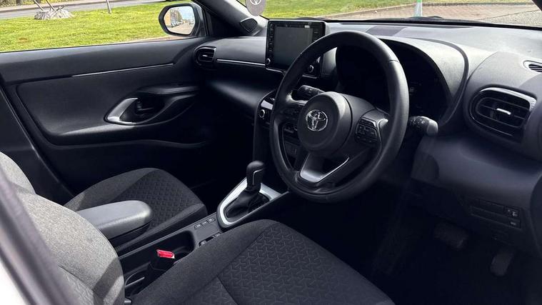 7" Multi information display screen, 8" Toyota touch 2 multimedia system with Smartphone integration with Apple CarPlay and Android auto, Adjustable speed limiter, Bluetooth connectivity, Driver attention alert system, eCall emergency system, Electric power steering, Full range intelligent adaptive cruise control, Hybrid system indicator, Key reminder warning, Lane trace assist, Multimedia, audio, telephone and voice recognition switches on steering wheel, My T Connected services, Pre-collision system enhanced with emergency steering assist, Reversing camera, Road sign assist - RSA, Steering assisted vehicle stability control, 6 speakers, DAB Digital radio, USB connection, 3rd brake light, Acoustic windscreen glass, Aluminium roof rails, Anti-jam protection on power windows, Auto high beam [AHB] with on/off switch, Automatic headlights, Black lower front grille, Black Shark-fin antenna, Black upper front grille, Black wheel arch mouldings, Body colour door handles, Body colour front bumper, Body colour rear bumper, Electric adjustable heated door mirrors, Follow me home headlights, Front and rear electric windows with auto up/down function, Front intermittent wipers, Headlight cut off reminder, Indicators integrated on door mirrors, Intermittent rear wiper, LED daytime running lights guide, LED front fog lights, LED front light guide, LED Indicators, LED projector headlights, LED rear light guide, Manual headlight levelling, Manually retractable door mirrors, Noise reduction layer on windscreen, Privacy glass, Rain sensor, Rear LED lights with sequential indicators, Rear side wing doors, Rear spoiler, Rear window defogger, 12v power outlet - front, 2x Rear coat hooks, 3 seat bench in 2nd row, 3 spoke leather steering wheel, 40:20:40 split folding rear bench seat, Adjustable speed limiter switch on steering wheel, Auto air conditioning, Black roof lining, Boot light, Central armrest, Centre console in light blue ambent lighting, Driver and front passenger personal lights, Fabric door trim, Fabric upholstery, Footwell in light blue ambient lighting, Front console box, Front cup holders, Front head restraints, Glovebox, Height adjustable driver's seat, Height adjustable front passenger seat, Hooks for luggage holding belts, ISOFIX child restraint system, Lane departure alert switch on steering control, Leather gearshift, Light blue ambient lighting on front doors, Manual telescopic and tilting steering wheel, Mirror on driver and passenger sun visor, Pollen air filter, Rear cup holders, Rear head restraints, Single front passenger seat, Soft tonneau cover, 3x3 point rear seat belts, ABS+EBD+Brake assist, Driver and passenger central airbags, Driver and passenger front airbags, Driver and passenger side airbags, Electronic parking brake, Emergency brake light system (EBS), Front seat belt reminder, Hill start assist control (HAC), Passenger airbag on/off switch, Pre-collision system with pedestrian and cyclist detection, Rear door child safety locks, Rear passenger side airbags, Rear seat belt reminder, Traction control, Tyre pressure warning system, Immobiliser, Intrusion alarm, Keyless smart entry with push button start, Power door locks, Power passenger window lock, Remote door lock, Tyre repair kit,