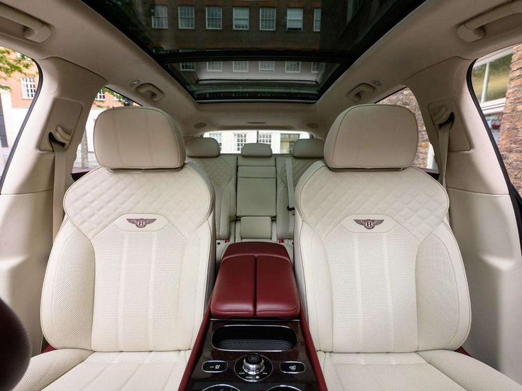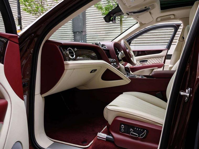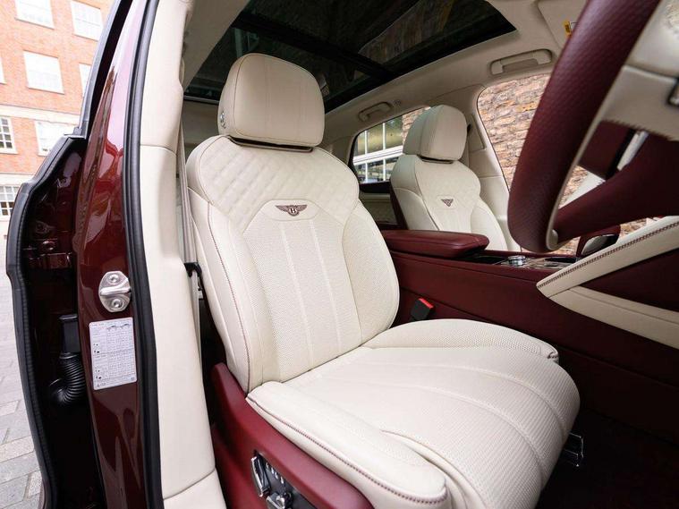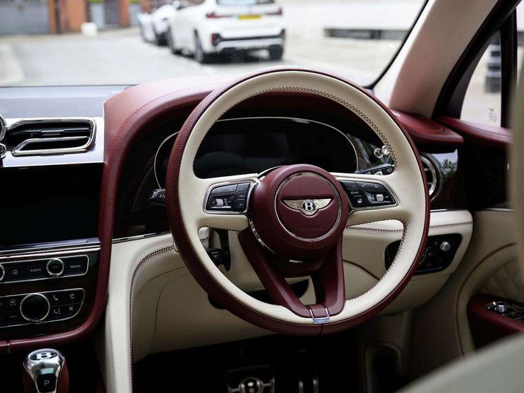 10.9" touch screen high resolution and configurable infotainment display and digital drivers information display, Advanced navigation function with text, search, 3D, satellite maps, speed limit, dynamic traffic route guide, telephone, Text-speech + voice, Bentley branded clock, Bentley GPS tracking system full fitment, Bentley safeguard plus, Blind spot assist, Bluetooth and WIFI enabled, Emergency services call system, Four drive dynamics modes (bentley, comfort, sport, custom), Front/rear park distance control, Hands free power tailgate, MMI Screen, My Bentley connected car services, Power latching to all doors for easy entry, Redesigned instrument panel lower trim rolls, incorporating a storage compartment on the passenger side, Seamlessly integrated technology with wireless apple car play and android auto, Speed sensitive variable ratio electric power steering, Touch screen remote, Traffic jam assist, Voice control system, Wireless phone charging compartment, Air suspension with continuous damping control, Bentley Dynamic ride with electronic all wheel steer, Permanent all wheel drive with centre torsen differential, DAB Digital radio, 3rd brake light, Adaptive low beam, Auto dimming rear view mirror, Automatic headlights, Azure exterior door badges, Azure fascia badge, Bentley badge in tailgate opening switch, Black painted shark fin aerial, Body colour door mirrors, Body coloured lower bodywork - Standard paint range, Bright chromed matrix style grille to lower bumper apertures, Bumper design with large side intakes and sculptured surfaces, Clamshell rear tailgate design with Bentley lettering under the wings, Elec/heat/adj/fold door mirror+memory, Electric tilt/slide panoramic sunroof, Fender design reduces over bodied perception, Fixed rear spoiler, Front and rear fog lamps, Full LED supplementary lamps and tail lamps, Full matrix LED headlamps with high beam assist, Full width clamshell design and deeply contoured rear tailgate panel, Heated rear windscreen, Illuminated treadplates, Jewel fuel and oil filler caps, Large dominant B shaped side wing vent front position, LED daytime running lights, Long fender vent above the power line on body side, Lower door side mouldings, Number plate aperture position under rear bumper, Oval split tailpipe, Phone antenna amplifier, Rain sensing wipers, Rear side wing doors, Rear wiper, Roof rails, Trailer sway mitigation, Tunnel detection for auto light control, V8 exterior badge, Wet arm wipers and heated water jets, 12V power in rear centre console, 12V socket in glovebox, 12V socket in luggage compartment, 3 seat bench in 2nd row, 4-Zone HVAC, Air Ioniser, Azure seat emblems, Deep pile overmats to front and rear, Electric tilt and reach adjustment steering column with memory and easy entry function, Electronic accessory preparation, Embroidered Bentley emblems, Fluted seat design, Foams and cover design on all seats, Folding luggage compartment cover, Front and rear cupholders, Indented steering wheel, Interior mood lighting, Isofix attachments on outer rear seats, Key box, Load through facility, Lockable cooled glovebox, Luggage rails, Rear dual window switches, Rear seat climate control, Single front passenger seat, Sports pedals, Stowage with instrument panel, doors (front and rear), armrests and console, Twin front armrests, Two metal bulls eye vents with organ stops and redesigned centre vents, Two type C USB ports front and rear, Wing pockets for small items, Harmony diamond quilt specification pack - Bentayga, Touring specification pack - Bentayga, 3 rear seatbelts, ABS/EBD, Child safety lock, EDL, Electronic park brake with move-off assist, Electronic tyre pressure monitoring, ESP + MSR + ASR, Exit warning, Front and rear head airbags, Front and rear thorax airbag system, Front passenger airbag deactivation, Front seatbelt pretensioners with force limiters, Hill descent function, Hydraulic Brake Assist (HBA), Rear outer seatbelt pretensioners with force limiters, Rollover mitigation, Side airbags, Traction control, Immobiliser, Keyless entry, Keyless ignition, Preparation for vehicle tracking, Remote central locking, Volumetric anti theft alarm, Veneered centre fascia panel,
