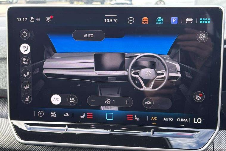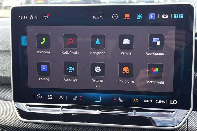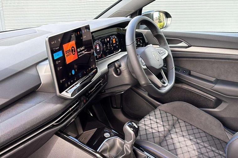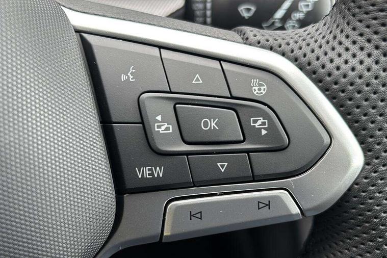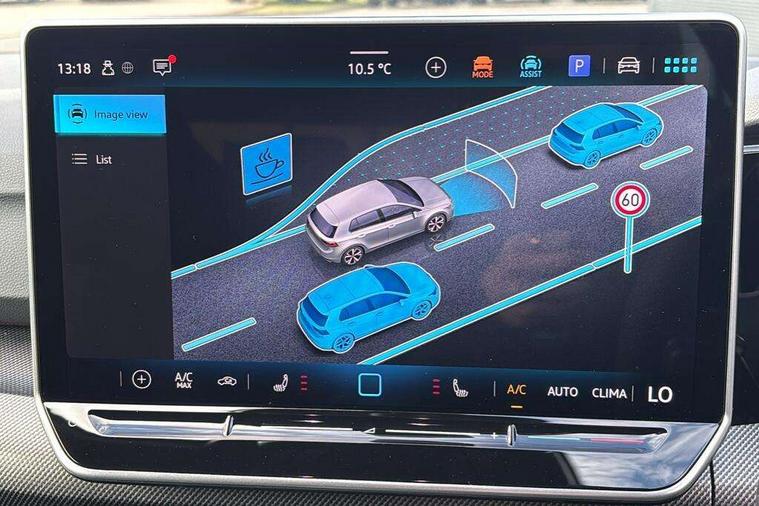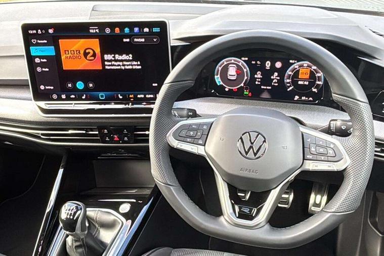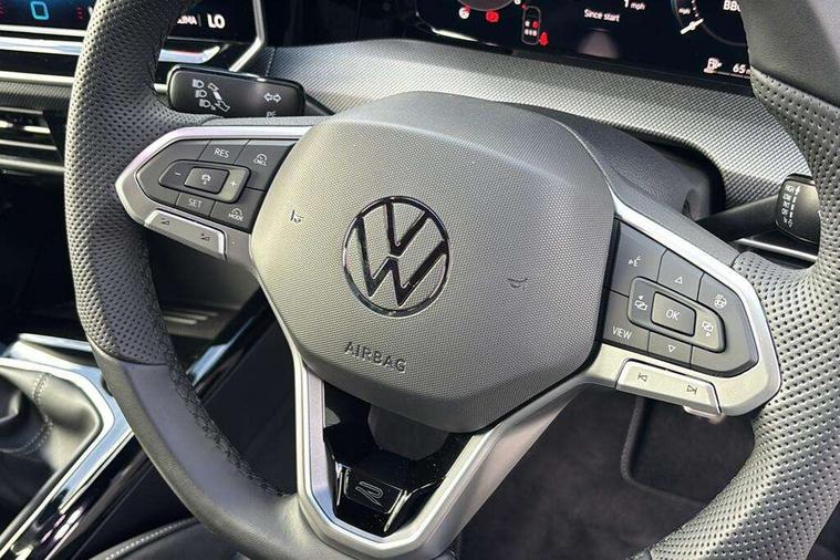 Activated carbon canister, Adaptive cruise control (ACC), Advanced driver attention and drowsiness monitor, Dynamic road sign display, Dynamic steering, E-Sim card for online connectivity, eCall emergency call system, Multi-color Digital cockpit pro, selection of different info profile possible, Multifunction front facing camera for distance control, Navigation system, Oncoming vehicle braking when turning including swerve support, Speed limiter, Speedo, rev counter, electronic odometer, trip, service interval display, exterior temperature and fuel gauge, Traffic jam assist, Voice enhancer and voice control, Warning signal and warning light for front and rear seatbelts not fastened, We connect plus preparation, We connect preparation, Wireless app connect, Petrol Particulate Filter, Start-stop system with battery regeneration (recuperation - energy recovery during braking), XDS electronic differential lock for improved traction and handling, 2 USB C ports in front, 2 USB charging sockets on the centre console in the rear charging capacity upto 45W, Digital radio reception (DAB), Diversity antenna for FM reception, Gaming platform via car app, Infotainment system with 12.9" display, Mobile phone interface with inductive charging feature, 3rd brake light, Auto dimming rear view mirror, Automatic headlamp activation with Coming home and Leaving home feature, Body colored bumpers in R-Line style, Body colour door handles, Exterior ambient lighting, Exterior mirrors convex on the left and aspherical on the right, Front and rear electric windows, Heat insulating windshield made of laminated glass, LED separate daytime running light, Rain sensor, Rear exhaust tailpipe, Rear fog light on one side and reversing lights on both sides, Rear side wing doors, Rear windscreen washer and wiper with interval delay, Remote electrically foldable door mirrors, puddle lights and reverse activated passenger's door mirror, Volkswagen logo in front, illuminated lighting animation with wake up/goodbye scenario and illuminated door handles, Welcome light with surround lighting, 12V socket in front centre console, 12V socket in luggage compartment, 3 rear head restraints, 3 seat bench in 2nd row, Ambient lighting with 30 colour including LED light unit in front footwell with selectable light colour, Black roof lining, Brushed stainless steel pedals, Chrome plated radiator grille inserts, air vent surrounds and light switch surrounds, Front + rear black carpet mats, Front centre armrest, Integrated front head restraints, ISOFIX anchors for child seats on outer rear bench seats and on front passanger seat compatible for i-Size, Leather gearshift handle, Luggage compartment lighting, Premium sports seats in front, Rear cupholder and loadthough, Single front passenger seat, Split folding backrest with centre armrest and unsplit rear seat bench, Sun visors with illuminated vanity mirrors, Titanium black instrument panel, Black exterior Styling package with Matrix LED headlights - Golf, 3 point height adj front seatbelts + pretensioners, 3 rear three point seatbelts, ABS, Autonomous emergency braking front assist with pedestrian and cyclist monitoring, Child locks on rear doors, Driver and front passenger airbag with front passenger airbag deactivation, Electronic parking brake with auto hold, ESC (Electronic Stability Control), Extended pedestrian protection measures, Rear disc brakes, Two tone horn, Tyre pressure loss indicator, Volkswagen roadside assistance, Anti theft wheel bolts, Preparation for alcohol interlock, Decorative inserts carbon grey for dashboard and front door trim panels, 18" Leeds alloy wheels,