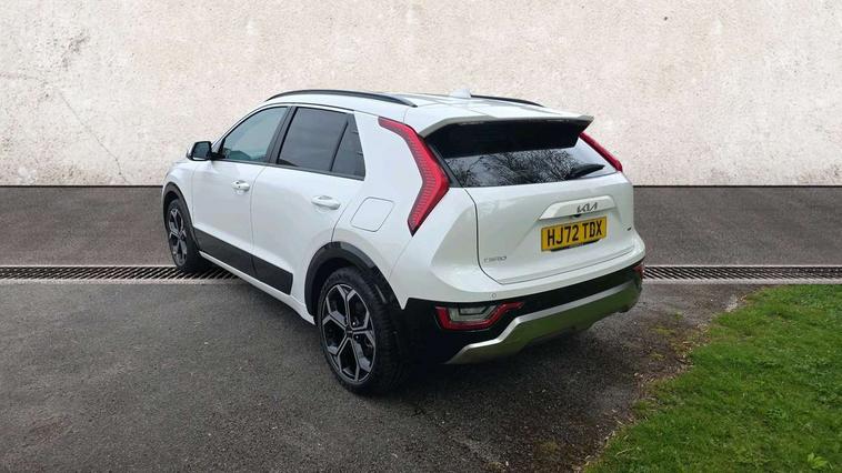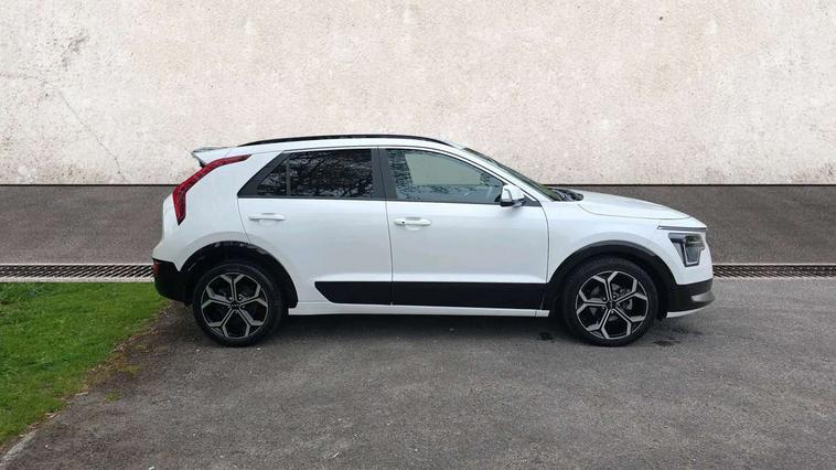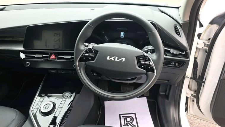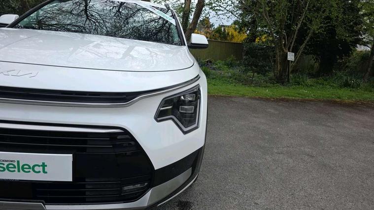 10.25" touchscreen satellite navigation, 4.2" supervision colour cluster display, Adaptive smart cruise control function (SCC) with stop and go, Apple car play/Android Auto with voice control, Blind spot collision avoidance assist, Drive mode select (Eco, sport), E-call, Emergency stop signalling system, Forward Collision-Avoidance Assist (FCA) 1.5 - City/Pedestrian/Cyclist/Junction turning, Front parking sensors, Highway Driving Assist (HDA), Kia Connect (UVO), Lane Following Assist (LFA), Lane keep assist, Motor driven power steering, Rear cross traffic alert, Rear parking sensors, Reversing camera with dynamic guide lines, Safe exit warning (SEW), Speed limit assist, Tailgate, Trip computer with distance/fuel consumption/average speed, Wireless Smartphone charger, 220v AC Inverter, 'Shark fin' mobile antenna, 2 type C USB ports on front seats, 2 USB ports in centre console including 1 type C, 6 speakers, Bluetooth with music streaming, DAB Digital radio, Steering wheel mounted controls, Acoustic windshield, All round electric windows with drivers and front passenger auto up/down and safety function, Auto dimming rear view mirror, Automatic defog system, Automatic headlight control system, Black beltline mouldings, Black grille with chrome surround, Body colour bumpers, Body colour exterior door handles, Dual LED headlights (low and high projection), Electric heated door mirrors, Electrically folding door mirrors, Front and rear chrome skid plates, Front fog lights, Heated rear window with timer, High gloss black cladding, High gloss black door mirrors, LED daytime running lights, LED rear combination lights, LED third brake light, Privacy glass - Rear windows and tailgate, Rain sensing front wipers, Rear fog lights, Rear side wing doors, Rear spoiler, Rear wiper, Roof rails, Solar glass windscreen, Welcome and follow-me home light functionality, Windscreen Washer Level Warning, 12V socket in front, 12V socket in luggage compartment, 3 seat bench in 2nd row, 60/40 split/folding 2nd row of seats, All-round height adjustable headrests, Artificial leather centre console storage box, Artificial leather steering wheel, Bulb type overhead console lamp with sunglasses case, Centre console cupholder, Chrome coating interior door handles, Cloth / Artificial leather upholstery, Driver's power adjustable seat, Driver/passenger sunvisors with illuminated vanity mirrors, Drivers seat power lumbar support, Dual zone automatic air conditioning, Front and rear door storage, Heated front seats, Heated steering wheel, Illuminated glovebox, Interior door lock/unlock function, ISOFIX Child seat top tethers and anchor fixings, Luggage area lamp, Luggage area load cover, Luggage board, Paddle shifts, Passenger seat height adjuster, Rear armrest, Seatback pocket - driver, Seatback pocket - front passenger, Shift by wire SBW, Single front passenger seat, Tilt/telescopic adjustable steering wheel, Ventiliation ducts to rear compartment, Towing pack - Niro, 3 point seatbelts on all seats, ABS, Automatic unlocking of doors in case of impact, Centre side front airbags, Curtain and side airbags, Drivers knee airbag, Dual shell horn, Electric parking brake with auto hold function, Electronic stability control, Front passenger airbag deactivation, Height adjustable front seatbelts, Hill start assist control (HAC), Manual rear child locks, Rear seat alert system, Traction control, Tyre pressure monitoring system, Alarm system and engine immobiliser, Deadlocks, Engine Start/Stop Button with Smart Entry System, Locking wheel nuts, Visible vehicle identification number, Warranty - 7 Years/ 100, 000 miles, Metal chopped carbon centre fascia, 18" Alloy wheels, Tyre mobility kit,
