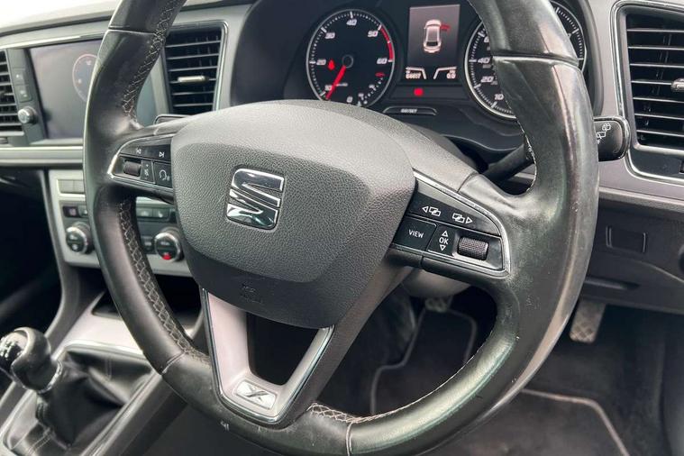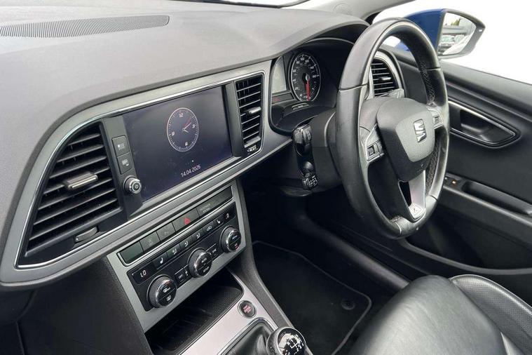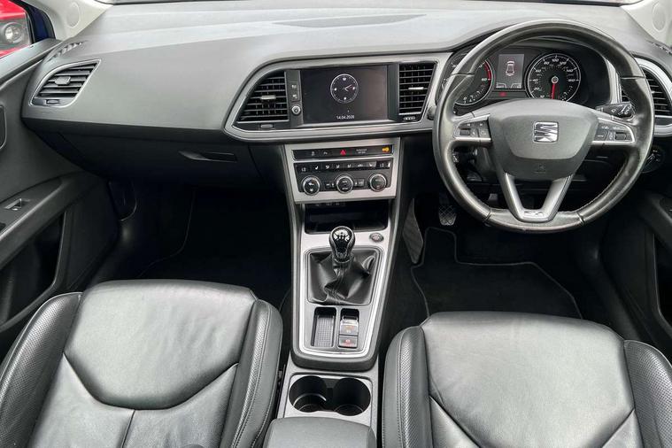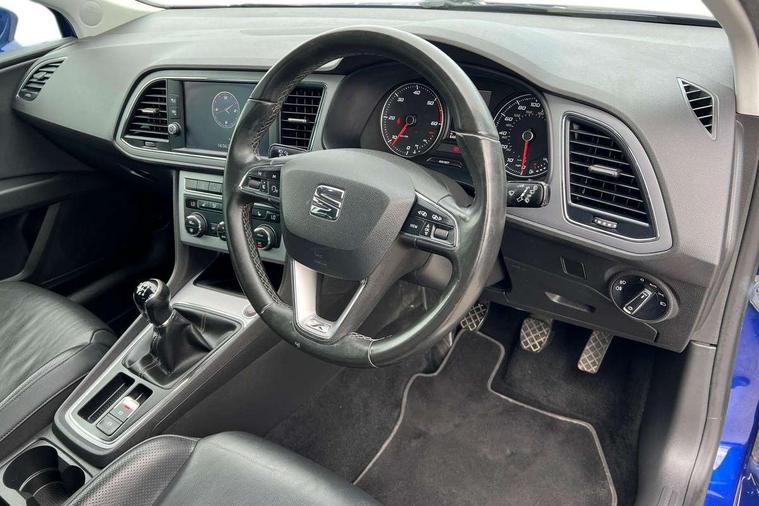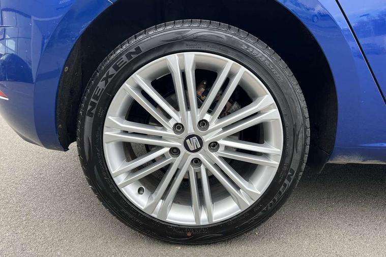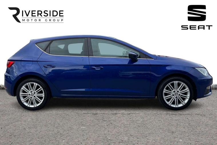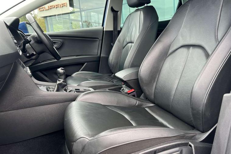 Electro-mechanical power steering, Front and rear parking sensors, Front assist with pedestrian protection, Full Link Smartphone Integration with Mirror Link, Apple Car Play, Google Android Auto with USB Type C cable for Apple and Android compatibility, Media system plus with 8" display, 4 USB, 8 speakers, CD, voice control, DAB, bluetooth and handsfree, steering wheel mounted audio and phone control, Navigation system 3D map display, high resolution colour driver display, two SD card slots, Rear view camera, RPM, trip computer, outside temp gauge, instrument light brightness, low fuel warning light, lights on reminder, gearshift indicator, SEAT logo boot release, Service interval indicator, Comfort suspension, XDS electronic differential lock, Auxiliary input socket, SEAT USB media cable, Body colour door handles, Body coloured bumpers, Body coloured exterior mirrors with integrated LED indicators, Chrome roof rails, Chrome window trim, Dark tinted rear windows, Electric folding door mirrors, Electric front/rear windows, Electrically adjustable and heated door mirrors, Front grille frame in chrome, Front grille hot stamping, Full LED headlights with LED day time running lights + LED rear tail lights + LED licence plate lights and LED front and rear fog lights, High gloss black finish B and C pillars, Illuminated aluminium front door sill with XCELLENCE logo, Rear wash/wipe, Visible twin exhaust tailpipes, 12v power point in centre console, 60/40 split folding rear seat with armrest, Additional heating and ventilation outlet in rear of centre console, Boot storage net, Cargo rings in boot, Double boot floor, Driver and passenger seat height adjust, Driver and passenger sun visor, covered and illuminated mirror, driver sun visor with card holder, Driver seat lumbar adjustment, Dual zone climate control, Dust/pollen filter, Front centre armrest with storage compartment, Front cupholders x 2, Front passenger seat lumbar adjustment, Front seatback storage pockets, Front sport seats in leather, Front/rear floor mats, Height adjustable front and rear headrests and third rear headrest, Height/reach adjust steering wheel, High centre console with integrated box & cup holder, rear air outlet, with armrest in front seats, ISOFIX points in outer rear seats with top tether anchorage points, Leather steering wheel with XCELLENCE logo and leather gear knob, Luggage compartment cover, Luggage tie-down hooks, Multi-colour ambient interior lighting, Storage box under drivers and passenger seat, Convenience pack+ - Leon, Winter pack - Leon, 3 point seatbelts on all rear seats, ABS, traction control system, electronic stability control, Child proof door locks, Driver and front passenger airbags with front passenger airbag de-activation, front side, curtain, driver knee airbags, EBA, Electric handbrake, Electronic parking brake with auto hold, Front seatbelt pretensioners, Front seatbelt reminder, Hill hold control, Multi-Collision braking, Tyre pressure monitoring system, 2 folding remote keys with window open/close function and boot opening/door mirror folding function, Central locking fuel filler cap, Engine immobiliser, Keyless entry and go with wireless phone charger, Locking wheel bolts, Remote central locking + deadlocks, Volumetric alarm with back up horn, Chrome interior detailing, 17" Dynamic alloy wheels 30/1,