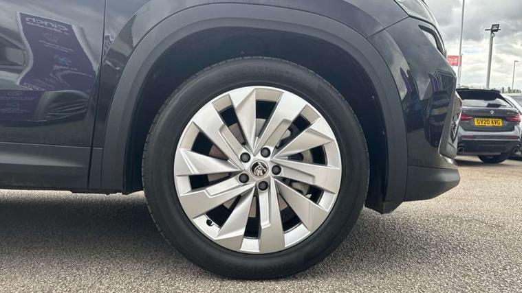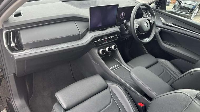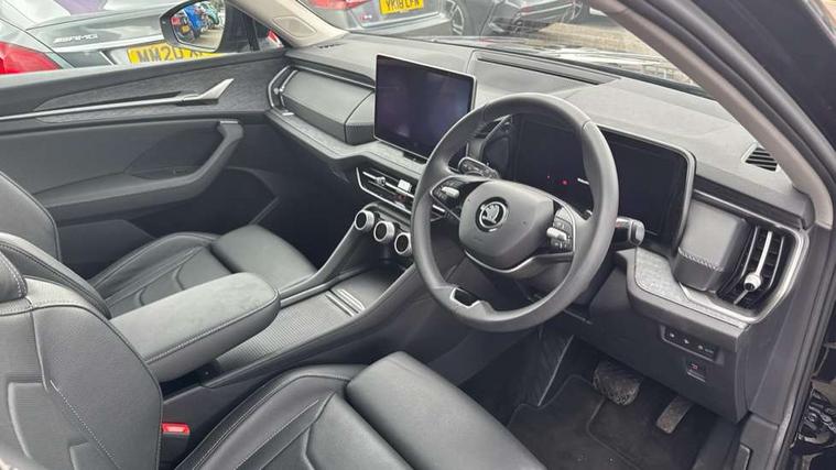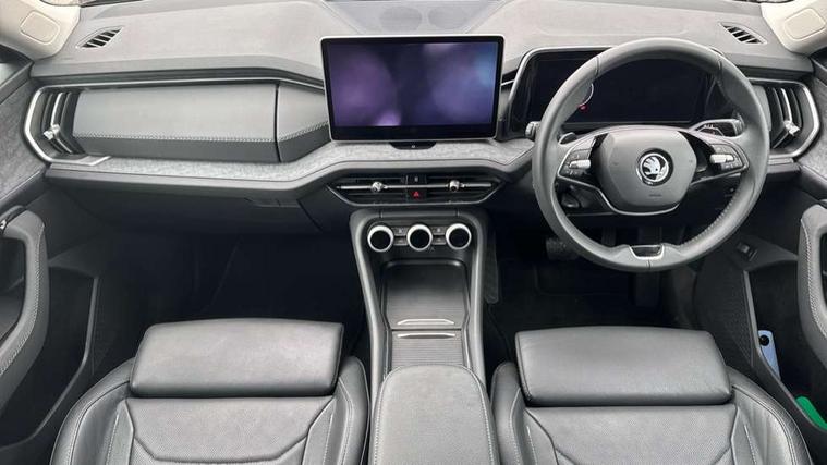 13" satellite navigation touchscreen display, Blind spot detection with door exit warning, Bluetooth system, Drive mode selector, Driver alert with fatigue sensor, Driver drowsiness alert system, Dry display cleaner, e call+, Front cross traffic assist, Lane assist, PAS, Rear traffic assist, Tailgate unlocking from outside, Traffic sign recognition, USB C Port x 2 in front centre console, Virtual Cockpit - 10.25" digital display, Voice control system, Wireless charging for two smartphones (15W) with cooling function, Wireless SmartLink for Apple CarPlay and Android Auto, Stop/start function, 2x USB-C in the rear, DAB Digital radio, Aero front windscreen wipers with intermittent function, Auto dimming rear view mirror, Black wheel arch surrounds, Body colour bumpers, Body colour door mirrors and handles, Cornering light and poor weather light, Electric folding /adjustable/separted heated/folding door mirrors, auto dimming with boarding sports and memory function, Electric front and rear windows, Heat insulating glass in windshield, Heated rear window, Ice scraper in fuel tank cap, Invisible tailpipe, LED daytime running lights, LED rear fog light, LED third brake light in rear spoiler, Light assistant with automatic headlight control and coming home feature, Logo projection in door mirrors, Privacy glass, Rear side wing doors, Rear spoiler, Rear window wiper, Safety reflectors on front and rear doors, Window control switches with black trim, Windscreen wipers with rain sensor, Without engine designation, 1.5l bottle holder points in all door, 12V socket in boot, 1x centre rear reading light, 2 seat bench in 3rd row, 3 configurable smart dials with 32mm coloured display, 3 seat bench in 2nd row, 4 foldable roof handles with rear coat hooks, Automatic gear selector on steering wheel, Chrome interior door handles, Driver/front passenger reading lights, Fabric headlining, Fixed bench 40:60:40 split folding backrests, Front and rear floor mats, Front centre armrest with jumbo box storage compartment, cup holder and 12V socket, Front courtesy lights, Height adjustable front headrests, Interior ambient lighting, Isofix child seat fittings in outer rear seats and front passenger with top tether, Manually adjustable steering column, Pollen filter, Rear centre armrest with cupholders, Rear seat boot backrest release, Retractable luggage compartment cover, Single front passenger seat, Sliding trunk cover, Small Bags on the inner sides of the front backrests, Storage pocket including mobile phone pockets on the backs of the front seats, Sunvisors with illuminated vanity mirrors, Three rear height adjustable headrests, Ticket holder on A Pillar, Tri zone climate control, Umbrella in door panel x1 made from sustainable materials, Upper and lower glovebox with card holder and coin compartment, USB C port by rear view mirror for charging only (15W), Exterior styling package - Kodiaq, Auto door release and activation of warning lights in the event of an accident, Driver and front passenger airbag with knee airbag and front passenger airbag deactivation, Electric child locks, Electronic parking brake, ESC (incl. ABS+EMD+MSR+ASR+EDL+HBA+DSR+RBS+ESBS+MCB+TSA+XDS), Front assist with braking reaction to vehicles, pedestrians and cyclists, Front disc brakes, Fuel cut off safety device, Height adjustable front 3 point seatbelts + pretensioners, Hill hold control, Junction assist with automatic emergency braking, Rear disc brakes, Safety vest holder in door, Seat belt reminder for all seats, Three point rear seat belts, Two tone horn, Tyre pressure monitor, Anti-theft wheel bolts, Immobiliser, Remote central locking with 2 keys, Black/grey fabric with green cross stitching on dashboard, Swan feathers grey dashboard and door decorative inserts, Breakdown kit,