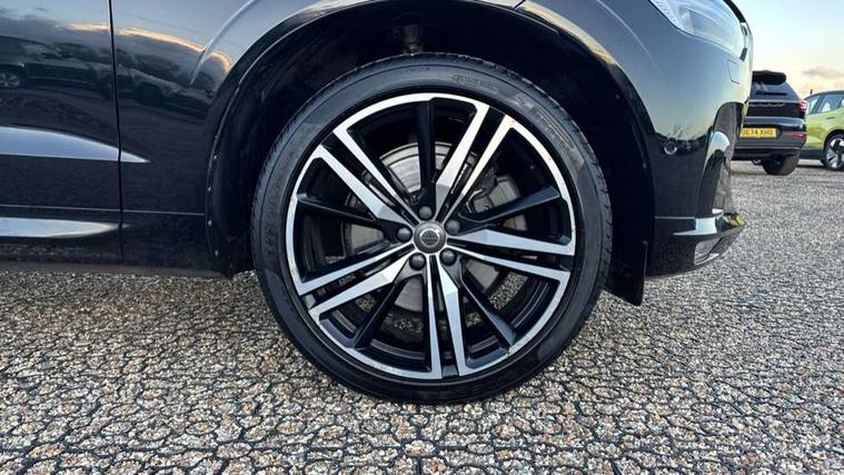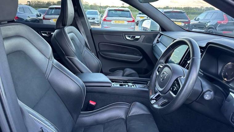 12.3" Active TFT crystal driver's instrument display, 9" Touch screen, Adjustable steering wheel force, Bluetooth hands free telephone kit, Drive mode selector, Front collision warning with full auto brake, Intelligent driver information system (IDIS), Lane keep assist with driver alert control, Oncoming Lane Mitigation, Power tailgate, Remote fuel flap release, Road Edge Detection, Service interval indicator, Speed limiter, Speed sensitive steering, Trip computer, Voice control system, Volvo on call, Active four-C chassis + four corner adaptive damper with electronic rear air suspension, DAB Digital radio, Active bending headlights with adaptive shadow technology, Auto dimming interior + exterior mirrors, Body colour bumpers, Dark tinted glass for rear windows + rear screen + side luggage area window, Dual integrated exhaust pipes with high gloss black surround, Electric folding door mirrors, Electric front+rear windows, Electrically adjustable and heated door mirrors, Headlamp cleaning system, Headlamp levelling, Heated aqua blades, High gloss black front grille, Home safe and approach lighting, Illuminated side steps, LED front fog lights with static cornering light function, LED Headlights + Active high beam incorporating daytime running lights, Matt silver finish door mirrors, Puddle lights, R Design tread plates, Rear wiper, Roof antenna, Roof spoiler, Silver matt window frame surround, Silver roof rails, Tinted windscreen, Visible VIN plate, 12V power point in luggage area, 12V socket in front + rear tunnel console, 3 spoke leather steering wheel with chrome trim, 60/40 split folding rear seat, A-pillar parking ticket holder, B Pillar ventilation, Black headlining, Bright metal luggage threshold, Centre armrest storage illumination, Centre console cupholders and storage, Door ambient lighting, Electric drivers seat with memory, height adjust and multi directional lumbar support + mirrors memory, Extended front seat cushions, Front footwell illumination, Front/rear reading lights, Gearshift paddles, Glovebox illumination, Head restraints for all seats, Heated front seats, Heated steering wheel, Height/reach adjustable steering column, High gloss black steering wheel remote infotainment controls, Illuminated driver/passenger vanity mirrors, Illuminated front cupholder, Illuminated luggage compartment, Illuminated tailgate, ISOFIX attachment on outer rear seats, Load cover, Multicolour theatre lights, Perforated leather gearknob, Perforated Leather Key Integrated Remote, Perforated leather steering wheel, Pollen filter, Rear armrest / integral cup holders / storage tray, Rear footwell illumination, Rear seat concealed storage, Sport pedals, Sports floor mats, Ticket holder, Underfloor stowage compartment, Vanity mirror with ticket holder, WHIPS - Whiplash Protection System, 5 three point seatbelts, ABS/EBD, City safety with steering support with Pedestrian + cyclist + large animal detection + front collision warning with full auto brake, Curtain airbags, Drivers knee airbag, DSTC-Dynamic Stability and Traction Control, Dual stage driver/passenger airbags, EBA, Electronic parking brake with auto hold, Fasten seatbelt reminder, First aid kit, Hill descent control, Hill start assist, Hydraulic Brake Assist (HBA), Passenger airbag deactivate switch, Road sign information display, Run off Road Protection, Seatbelt pre-tensioners, SIPS airbags, Tyre pressure monitor, Warning triangle, Anti-theft alarm including immobiliser/volume sensor + level sensor, Key integrated remote control central locking + fuel flap with deadlocking system and auto open/close power windows, Keyless drive (incudes keyless entry and start) with remote tag and handsfree tailgate open/close, Locking wheel nuts, Private locking for tailgate, Metal mesh inlays, Tailored instrument panel with contrast stitching,