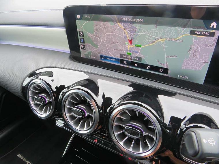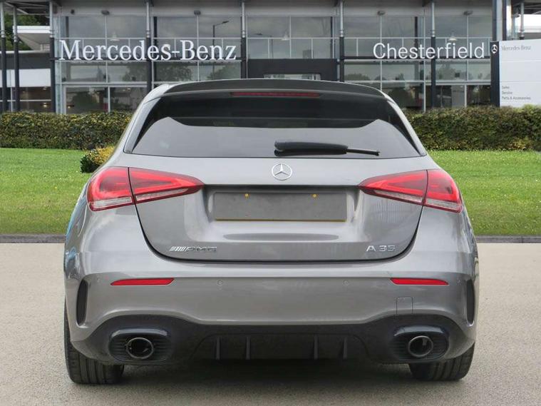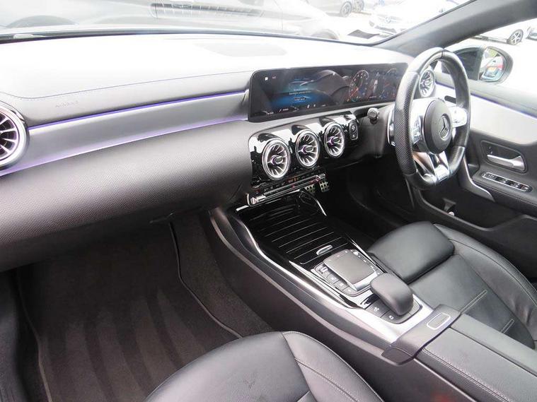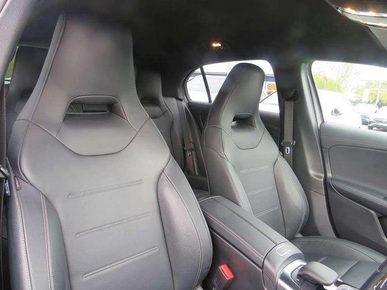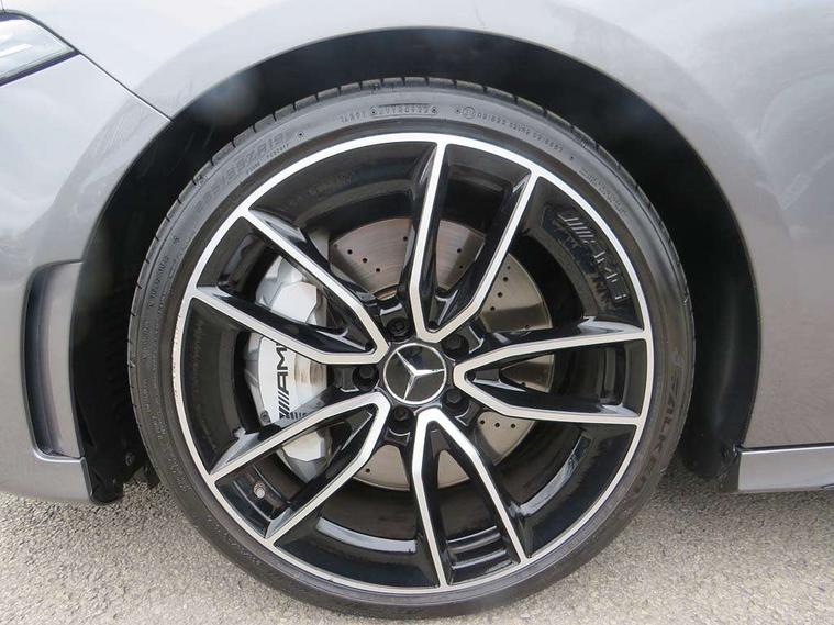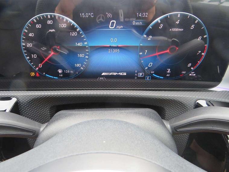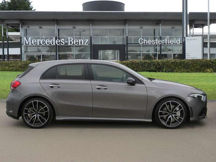 Ultrasonic sensors positioned in the front and rear bumpers, 10.25" Digital instrument cluster display screen, 10.25" media display, 180 degree rear view camera with parking guidelines, Active parking assist with visual and audible warning of detected obstacles, Attention assist, Brake pad wear indicator warning light, Car wash mode, Cruise control + speed limiter, Direct steering, Dual bluetooth interfaces, DYNAMIC SELECT with driving programs (Slippery, Comfort, Sport, Sport+ and Individual), ECO start/stop function, Fluid level warning indicator for fuel, oil, coolant and washer fluid, Hard-disk navigation, Hey Mercedes Voice activation, Lamp failure indicator, Lane keeping system, Mercedes me connect including emergency call system, accident recovery, breakdown management and maintenance, Mercedes me remote services, Outside temperature gauge, Owners manual in English, Pre-installation for car sharing, Preinstallation for Mercedes Benz link, Service indicator (ASSYST), Smartphone integration with Apple CarPlay and Android auto, Speed limit assist, Speed sensitive power steering, Trip computer, AMG performance suspension, Rear axle multi-link, 2 USB ports (type C) in rear stowage compartment and one in front of center console, 6 speakers, DAB Digital radio, MBUX multimedia system with DAB digital radio and touchpad including satellite navigation, Mercedes-Benz sound system - 100W, 4 Electric Front and Rear windows, Adaptive brake lights, AMG bodystyling - Front apron with splitter in chrome, rear apron with chrome trim and chrome visible trim elements in tailpipe, AMG Front apron with flics as air deflector elements on the outer air intakes, AMG radiator grille with twin blade lamella and AMG Lettering, AMG Rear apron with specific diffuser look with four vertical fins and two round chrome plated tailpipe trim elements with a diameter of 90 mm, AMG spoiler lip on roof, AMG Sports exhaust system with two round tailpipes attached in rear apron, Automatic headlights, Black weather strip, Body colour bumpers, Body colour door handles with chrome inserts, Body colour side skirt, Electric adjustable and heated door mirrors with integrated LED side indicators, Front wings wheel arches with TURBO 4MATIC lettering, Headlamp assist automatic headlamp activation, Heated glass rear windscreen + timer control, LED High level third brake light, LED high performance headlamps with integrated LED daytime running lights, LED tail lamp, Privacy glass, Radio aerial, Rain sensing windscreen wipers with two sensitivity settings, Rear fog lights, Rear side wing doors, Rear wiper, Trim elements on louvres in outer air inlets in high gloss black, Wider wheel arches for AMG wheels, 3 seat bench in 2nd row, 40:20:40 split folding rear seats, AMG Performance steering wheel in nappa leather, Auto Mercedes-Benz child seat recognition sensor, Black air vents with surround in silver chrome, Black roof lining, Brushed stainless steel sports pedals with rubber studs, Controller on centre console with chrome surround, Floor mats with AMG lettering, Front centre armrest with storage compartment, Front seat backs luggage nets, Heated front seats, Height/reach adjustable steering column, Illuminated AMG front door sills with changeable cover, Interior lighting - 64 colour Ambient lighting, Interior mirror with reading lamps in black and frameless, ISOFIX and top tether child seat fixing points in two outer rear seats, Manual height adjustable front seats, Rear armrest with 2 cupholders, Rear head restraints, Seat occupancy sensor for front passenger seat, Silver coloured aluminium gear shift paddles on steering wheel, Single front passenger seat, Sports seats with integrated headrests, Stowage compartment in centre console with retractable cover, Sunvisors with illuminated vanity mirrors, Touchpad on center console, Twin front cupholders, Two zone thermotronic luxury automatic climate control, AMG night pack - A Class, Light and sight pack - A Class, Mirror package - A Class, Seat comfort pack - A Class, 3 rear 3 point seatbelts, ABS with Brake Assist, Active bonnet, Active brake assist includes forward collision warning system with autonomous braking, Adaptive brake assist with hold function and hill start assist, Black seatbelts, Childproof locks manually operated for rear doors and electrically operated for rear power windows, Crash responsive emergency lighting, Driver and passenger head and side airbags, Drivers knee airbag, Dual stage driver/passenger airbags, Electronic parking brake, ESP curve dynamic assist, ESP with ASR, Front and rear seatbelt reminder, Front brake calipers with AMG lettering, Perforated front brake discs, Tyre pressure monitoring system, Warning triangle and first aid kit, Window airbags, Alarm system/interior protection/immobiliser, Keyless entry lock/unlock, Keyless Go, Remote central locking and crash sensor with emergency opening function, Urban guard vehicle protection system with immobiliser and interior protection, Light aluminium with longitudinal grain interior trim, 19" AMG 5 twin spoke light alloy wheels, Summer tyres, Tirefit sealant kit,