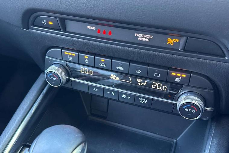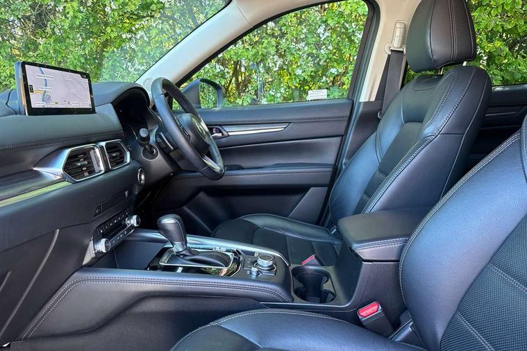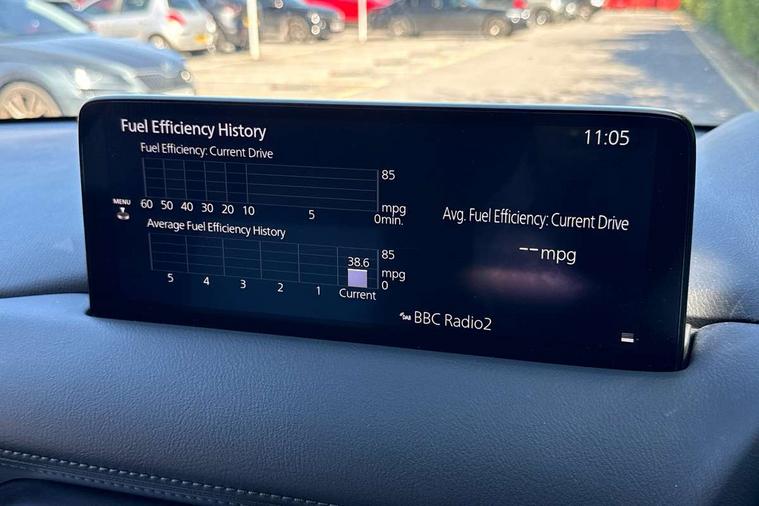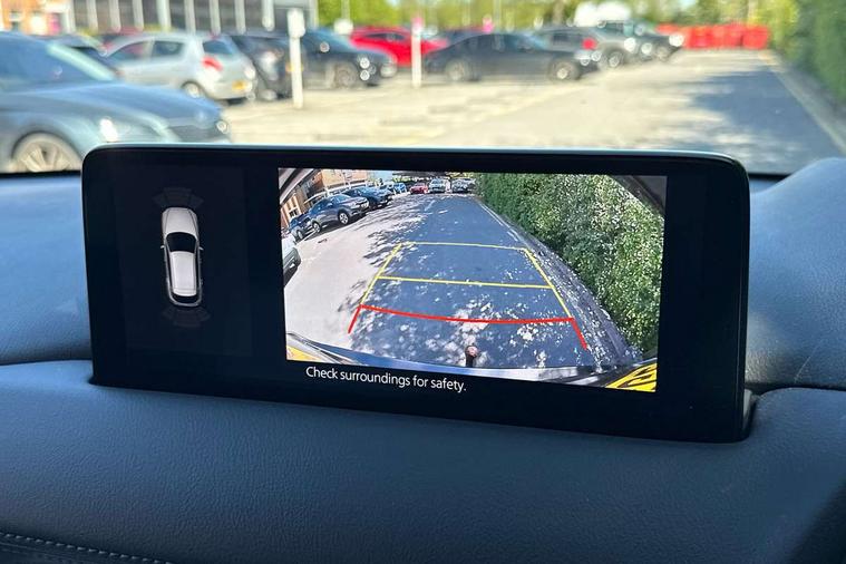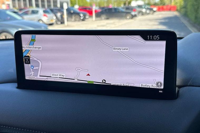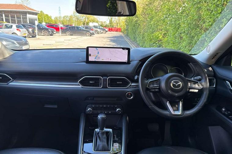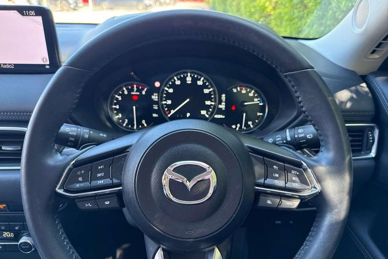 10.25" display with Mazda Connect infotainment, 7" colour TFT display, Advanced blind spot monitoring, Apple car play/Android Auto, Bluetooth connectivity with voice control, Collision prevention assist, Connected services, Cruising Traffic Support, Drive mode selector, Electric power steering, Emergency stop signalling system, Engine start/stop button, Forward collision warning, Front and rear parking sensors, Integrated navigation system, Intelligent speed assist, Lane departure warning system, Lane keep assist, Radar cruise control with Stop and Go, Reversing camera, Service indicator, Traffic sign recognition (TSR), Trip computer, Windscreen projected colour active driving display (HUD) with memory, i-stop, 2 USB sockets in rear, 2x USB sockets in front, 6 speakers, AM/FM radio, Bluetooth audio streaming, DAB Digital radio, Multimedia Commander including separate volume dial, Steering wheel mounted audio controls, Adaptive front lighting system, Auto dimming rear view mirror, Automatic headlights, Black inlay dashboard panel, Body colour door mirrors, Body colour roof spoiler, Body coloured front and rear black lower bumper mouldings, Bright finish signature wing, Coming/leaving home lighting function, Door mirror integrated indicators, Dual chrome tailpipes, Dusk sensitive headlamps, Electric front/rear windows with one touch auto up/down, Front grille in gloss black finish, Gloss black B and C pillars garnish, High beam assist, Intermittent rear wash/wipe, LED auto levelling, LED daytime running lights, LED front fog lights, LED Headlights, LED third brake light, Power folding and heated door mirrors, Power tilt/slide sunroof, Privacy glass (rear side windows only), Rain sensing front wipers, Rear side wing doors, Satin black side mouldings, Scuff plates, Shark fin antenna, Signature LED rear combination lights, Vinyl with wood grain metal inlay door trim panel, Windscreen wiper de-icer, 12v electrical power outlet, 3 seat bench in 2nd row, 3 stage heated front seats, 40:20:40 Karakuri fold-flat seat system, 6 way electric adjustable passenger seat, 8 way electric driver seat with lumbar support + memory, Cargo room flat floor board with waterproof undertray, Driver seat power slide, recline and height adjustment, Driver, Front passenger and two rear grab handles with coat hooks, Driver/passenger front seatback pockets, Driver/passenger sunvisors + illuminated vanity mirrors (drivers with ticket holder), Dual zone climate control, Folding centre armrest with 2 cup holders, Front and rear door pockets, Front centre storage with two cupholders, Front passenger seat power slide, recline and height adjustment, Heated steering wheel, Humidity sensor, Illuminated glovebox, Interior dome light with integral spotlight, ISOFIX child seat anchorage points attached on outer rear seats, Karakuri tonneau cover, Leather upholstery, Leather wrapped steering wheel and gear knob, Light roof lining, Luggage compartment LED lighting, Luggage compartment power outlet, Paddle shifts, Rear air vents, Rear headrests, Rear seat recline, Roof mounted sunglasses holder, Single front passenger seat, Three height adjustable head restraints, Tilt/height adjustable steering wheel, White interior LED illumination lighting, 3 point front seatbelts with pre-tensioners, 3 rear 3 point seatbelts, ABS, Advanced Smart City Brake Support - SCBS, Child locks on rear doors, Driver and front passenger side airbags, DSTC-Dynamic Stability and Traction Control, Dual front airbags, Electronic brake force distribution, Electronic parking brake with auto hold, ESP, Front and rear curtain airbags, Front passenger airbag deactivation, G-Vectoring control, Hill hold assist, Seatbelt reminder front and rear, Single stage passenger airbags, Smart brake support with forward obstruction warning, Tyre pressure monitoring system, Automatic door locking when moving off, Deadlock, Immobiliser, Power door locks, Remote central locking, Smart keyless entry, Thatcham Cat.1 alarm, 19" diamond cut black alloy wheels, Tyre repair kit,