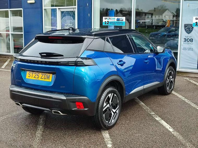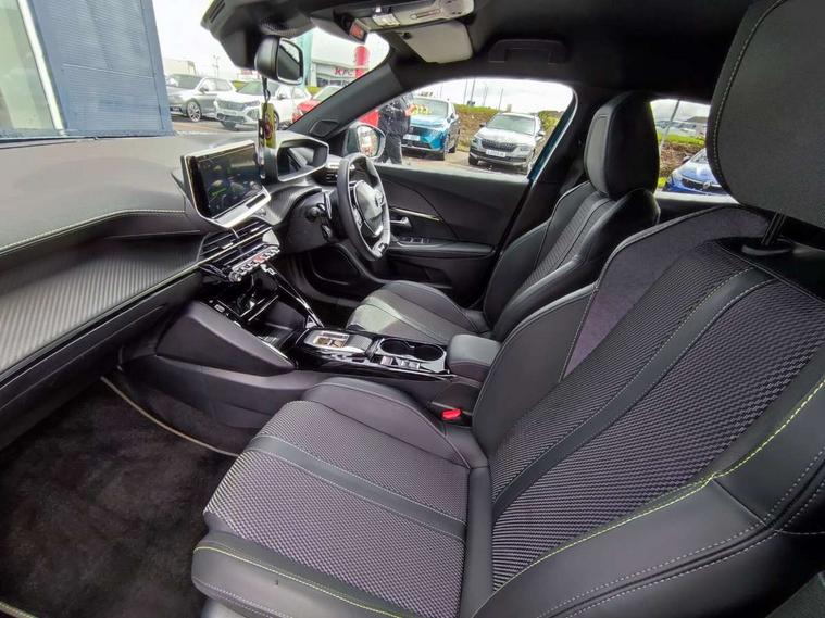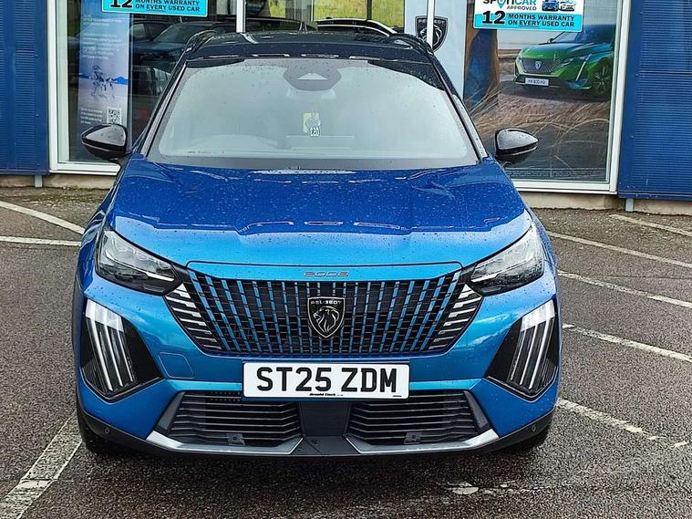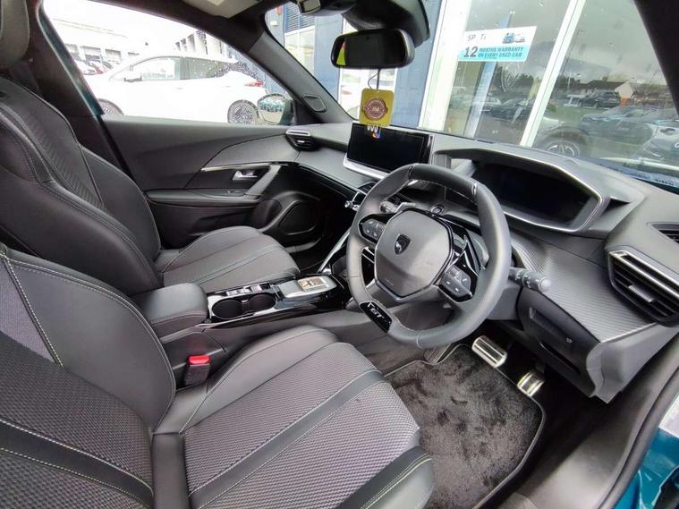 Bluetooth telephone facility, Driver attention warning, E-call, Exterior temperature indicator with ice warning, Front and rear parking sensors, Multi function trip computer, PEUGEOT i-Cockpit with 10" high definition capacitive touchscreen, PEUGEOT i-Cockpit with compact steering wheel, PEUGEOT i-Cockpit with configurable 3D headup instrument panel, PEUGEOT SOS and assistance, Speed limit recognition and recommendation, Wireless mirror screen with mirror link, apple carplay and android auto, Petrol Particulate Filter, 1x USB-C socket in rear and 1x USB-A socket in rear, 2 USB-C ports in the front, 6 speakers radio with mp3 compatible, DAB Radio (Digital Audio Broadcasting), Voice recognition for radio, navigation and telephony features, 2 X Rear number plate lights, Aluminium door sill scuff plates with peugeot lettering, Automatic hazard light activation upon heavy brake application, Black diamond roof, Black front wing trim with gloss black detail and GT badging, Body coloured exterior door handles, Dark tinted rear side and tailgate windows, Diamond black mirror shells, Diamond black rear roof spoiler, Electric, heated, and power folding door mirrors, Frameless electrochrome interior rear view mirror, Front bumper - Meteor grey lower trim, Full LED headlights with smartbeam assist with auto height adjustment, Gloss black finish on B pillar, Gloss black rear cluster connecting strip, Gloss black roof bars, Gloss black window surround, GT model designation badging on tailgate, Headlights left on audible warning, LED daytime running lights with distinctive 3 claw signature, LED side indicator lights integrated into door mirrors, LED third brake light, Model designation badges front and rear, One touch electric front/rear windows with pinch protection, Radiator grille - body coloured vertical chequered grille, Radiator grille - gloss black top edge trim, Rear full LED 3D peugeot signature claw effect lights with daylight function, Rear reversing lights, Rear side wing doors, Rear windscreen wiper triggered automatically in reverse gear, Reinforcement of the front bumper, Tailgate with heated rear windscreen and wiper blade, Twin chromed exhaust pipes, Wheel arch extensions, 1/3 to 2/3 split folding rear seats, 12V socket, 3 seat bench in 2nd row, 8 Colour personalisable ambient lighting, Automatic air conditioning with pollen and active carbon filter, Central front armrest with storage compartment, Driver and front passenger sport seats, Electric power steering with reach and rake adjustable steering column, Front and rear carpet mats in black, Front LED interior light with 2 reading spotlights and rear interior light with timer, Front passenger seat manual adjustment - height, longitudinal and back rest angle, High centre console, ISOFIX child seat mounting points on passenger seat, Mistral full-grain perforated leather steering wheel with Lime Green stitch detail and satin chrome 'GT' emblem, Multifunction steering wheel, Piano keys: Gloss black and chrome toggle switches to access main functions of the vehicle and touchscreen functions, Roof lining - Mistral black, Seatbelt unfastened on the move audible and visual alert for front and rear seats, Single front passenger seat, Two position modular boot floor, Visibility pack - 2008, 2x 2nd row ISOFIX child seat mountings, ABS (Anti-lock Braking System) with EBD (Electronic Brakeforce Distribution) and EBA (Emergency Braking Assistance), Active safety brake with night function/cyclists/pedestrians, Adaptive driver and front passenger airbags with passenger airbag deactivation function, Advanced emergency braking system (AEB) with enhanced camera with the high beam and radar, Child locking functionality on rear doors, Driver/front passenger side airbags, Electric parking brake, ESP (Electronic Stability Program) + Hill Start Assist, Front and rear curtain airbags, Front and rear disc brakes, Front and rear three-point retractable seatbelts, with force limiters, Front optimised safety headrests and rear retractable headrests (x3), height adjustable, Tyre pressure sensor, Automatic door locking when moving off, Deadlocks, Electronic code immobiliser, Thatcham category 1 alarm, Carbon effect Dashboard, front and rear door panel finish,