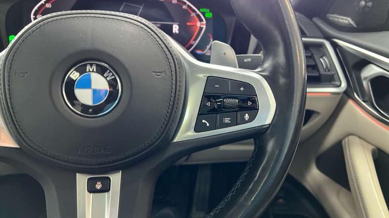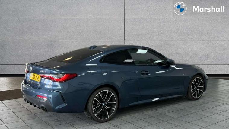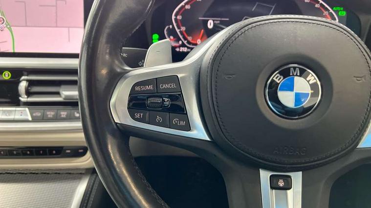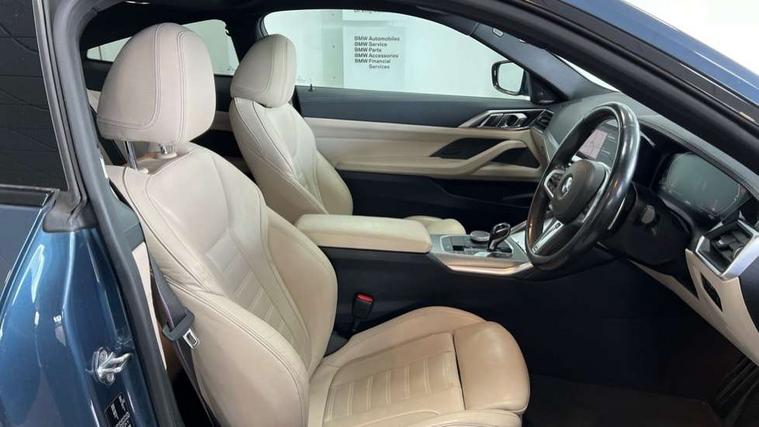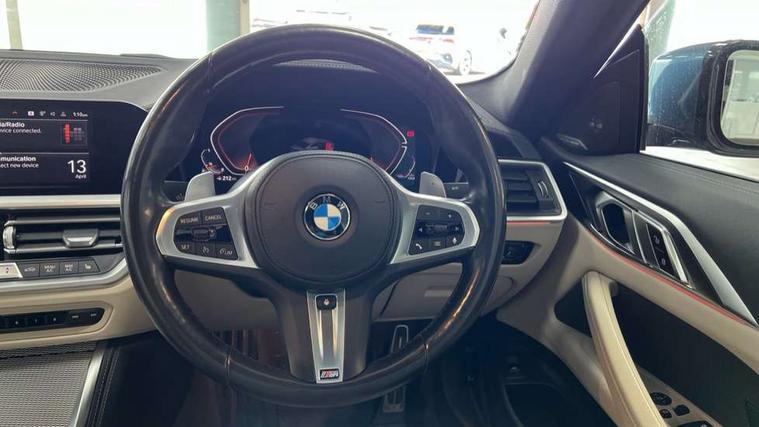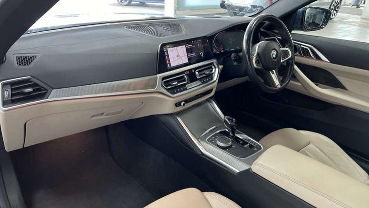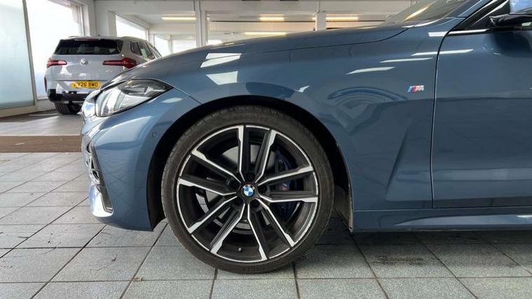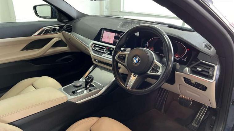 Active guard plus, Attentiveness assist, Auto start-stop, BMW ConnectedDrive online services, BMW iDrive controller on centre console, BMW Live Cockpit Professional Nav with 12.3" instrument display + 10.25" display, Intelligent Voice Assist, BMW OS 7, HDD, 2USB, 4G LTE connect, BMW service history, BMW Teleservices, Brake pad wear indicator in front and rear, Check Control warning system for monitoring of lights and door/luggage compartment open warning, Condition based service, Cruise control with brake assist, Electric power steering, Electric power steering with Servotronic steering optimised at all speed ranges, Gearshift time display in manual mode, Instrument cluster with speedometer with mph readout, tachometer, fuel gauge and oil temperature gauge, Integrated owners handbook, Oil sensor for level and grade, warning by check control system, On board computer - average speed, fuel consumption, outside temp display with acoustic warning, clock/date, service interval, odometer/trip meter, Optimum shift indicator, Personal Profile - automatic lock when driving away selectable, Variable sport steering, 48V Mild hybrid technology, 8 speed automatic steptronic transmission, Balanced 50/50 weight distribution, Diesel particulate filter, Drive performance control - ECO PRO, comfort and sport modes, Electronic differential lock control (EDLC), Incorrect fuelling protection, Low centre of gravity, M sport suspension, Stroke dependent dampers, xDrive system permanent all-wheel drive variable torque distribution, DAB tuner, Electronic service booklet, Acoustic glazing, Automatic headlight beam throw control with load dependent regulating reaction, dynamic compensation of braking dive and acceleration squat, Automatically dimming electrochromatic rear view mirror, BMW emblem on engine compartment lid and tailgate, BMW kidney grille with mesh grille front side of the nuggets in matt aluminium and frame in chrome high gloss, Body colour fuel filler flap, Body colour M rear boot sport spoiler, Body colour roof fin, Brushed aluminium inserts in the front door sill finishers with BMW designation, Dynamic brake lights, Electric windows - front and rear, with open/close fingertip control, anti trap facility and comfort closing function all round, Exhaust tailpipe - split left and right, Exterior mirrors - electrically folding with anti-dazzle, Fading support, Front and rear bumper system, Front apron plastic in body colour, Green tinted heat protection glazing, High gloss shadow line exterior trim, Illuminated bow type door handles in body colour drivers side with door lock, Interior rear view electrochromatic mirror with automatic anti dazzle function, LED front fog lights, LED Headlights, Licence plate panel integrated into front bumper and tailgate, Lightweight engineering, M designation on front side panels, left and right, One piece front bumper cover including towing eye cover in body colour, Preparation for high beam assistant, Rain sensor, Side frame decorative moulding black matt, Two part LED tailights in L-shape with components in smoked glass, brake light, LED turn indicator and rear fog light, Visible VIN plate, Welcome lights in interior and door handle area, Widened track and increased camber values for max transverse dynamics, agility and steering precision, Window recess cover black high gloss, Windscreen wipers with integrated washing jets, xDrive designation on left tailgate, 12V power socket in front centre console, 2 front cupholder in centre console with clamping elements and matt black inlay, 2 Rear seat headrests, 3 spoke M leather multifunction steering wheel, 3 zone automatic air conditioning, 4 pieces lashing eyelets in luggage compartment, 40:20:40 split folding rear seat and rear centre armrest with two cupholders, Ambient lighting with welcome carpet light, Anthracite headlining, Armrest integrated in front and rear door trim + front centre console armrest, Four grab handles integrated in roof lining, Front and rear door exit lighting (left / right), Front and rear door pockets, Front and rear footwell lights, Front and rear reading lights, Front headrests, Front seat backrest width adjustment, Front sport seats, Gear selection lever with M-specific designation, Glove compartment lighting, Heated driver and front passenger seats, Height adjustable mechanically and infinitely variable steering column, Illuminated armrest storage compartment, Illuminated glove compartment with separate small compartment, Luggage compartment light, Make-up mirror lights, Storage compartment in rear centre console, Sunvisors with vanity mirrors and ticket pocket, Toolkit located in luggage compartment, Velour front floor mats, Vernasca leather upholstery, Connected professional package - 4 Series, M Aerodynamics pack - 4 Series, 2 x 3-point rear seatbelts, Battery safety cut-off, BMW emergency call, Brake energy regeneration, Braking pre-tensioning, Child proof locking system in rear door, Child seat ISOFIX attachment for the two outer rear seats, Coasting in idle in ECO PRO mode, Cornering brake control (CBC), Crash sensor activating of airbags, Unlocking doors, hazard warning lights, interior light, safety battery terminal, Driver and front passenger side airbags, integrated in the door side seat backrest bolsters for all seat variants, Driver/Front Passenger airbags, Dry braking, Dynamic brake control, Dynamic stability control + (DSC+) - Anti-lock Braking System (ABS) with brake assist and cornering brake control + Automatic Stability Control (ASC), Dynamic Traction Control - DTC, Electric parking brake including automatic hold function and automatic release of the parking brake when driving off, Front and rear ventilated brake disc, Front passenger manual airbag deactivation, Head airbags for all 4 outer seats, Hill start assistant, Seat belt security check for driver and front passenger, Seat belt with belt stopper, pyrotechnic belt tensioners and belt force limiters, Side impact prote