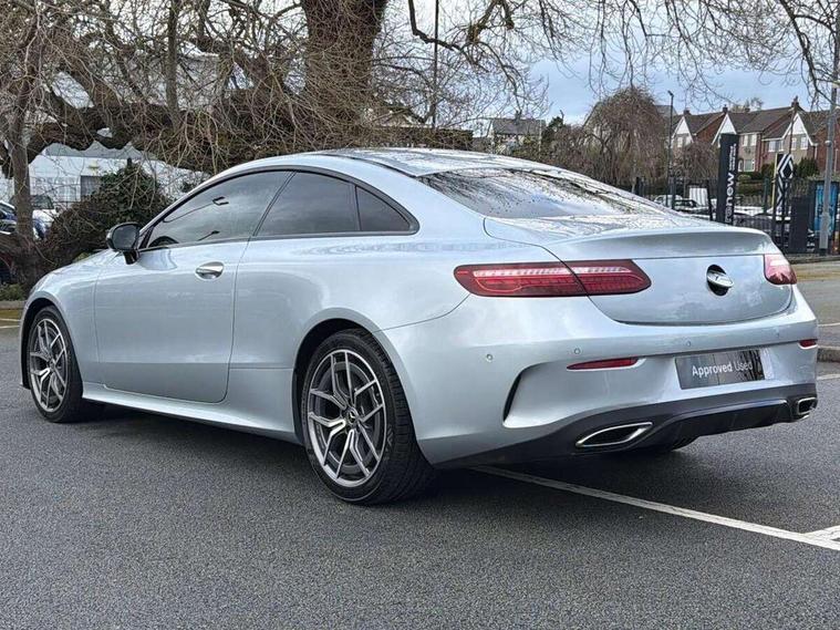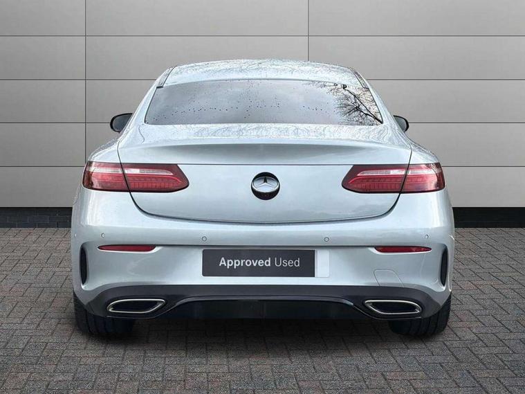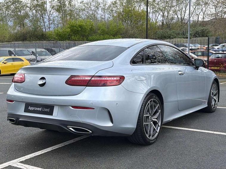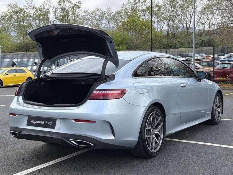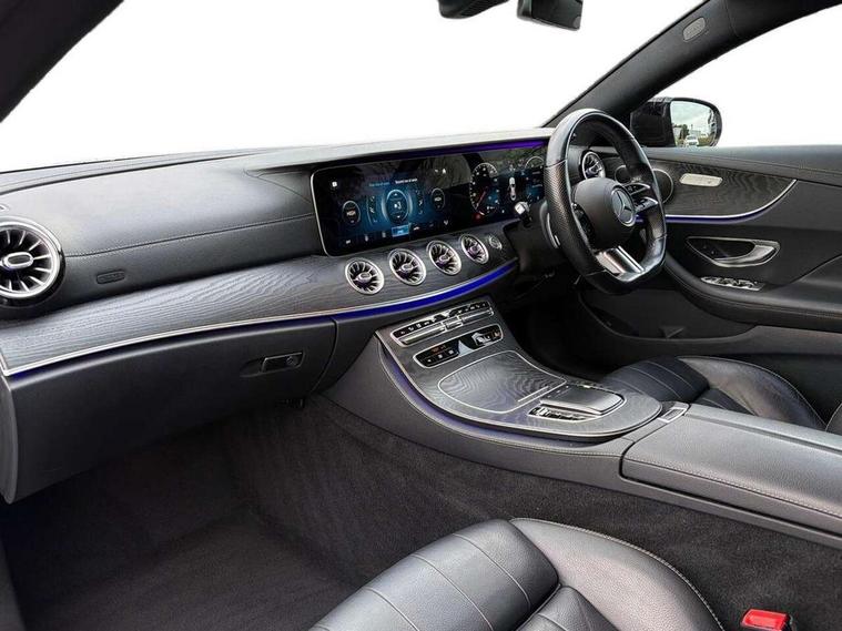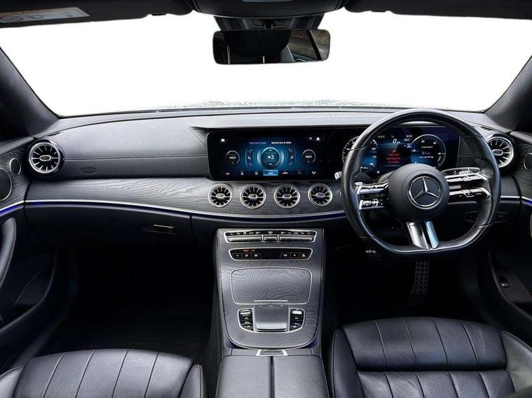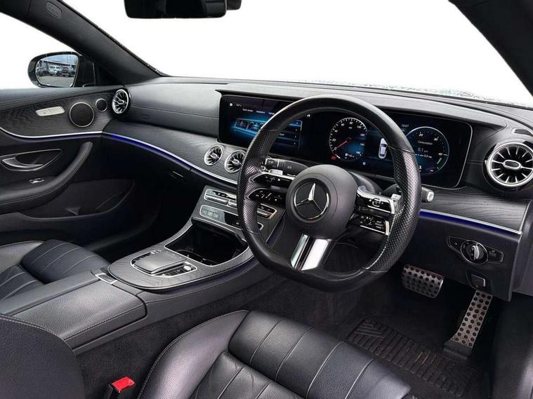 360 degree parking camera, Active parking assist including front and rear parking sensors, Analogue clock, Attention assist, Blind spot assist, Brake wear warning display, Cockpit display 12.3" widescreen digital instrument cluster, Collision prevention assist plus, Cruise control with variable speed limiter, Direct steer speed sensitive steering, DYNAMIC SELECT with a choice of driving modes (ECO, Comfort, Sport, Sport+ and Individual), ECO start/stop function, Hey Mercedes Voice activation, High resolution 12.3" multimedia colour display, Mercedes connect me, Outside temperature display, Pre-installation for Vehicle Monitoring, Pre-installation for Vehicle Setup, Remote boot release, Service indicator (ASSYST), Status display for rear seat belts in instrument cluster, Touchpad without controller, Traffic sign assist, Trip computer in multifunction display showing current fuel consumption, 25 litre AdBlue tank, 66 litre fuel tank, 9G TRONIC 9 speed automatic transmission, Agility control sports suspension with selective damping system, Diesel particulate filter, Incorrect fuelling protection, 2 USB ports in centre console, 2 USB ports in the rear, MBUX multimedia system with DAB digital radio and touchpad including satellite navigation, Smartphone integration via Android Auto/Apple CarPlay, Media Interface, USB and Bluetooth interface and touchpad with control wheel, Adaptive brake lights, AMG bodystyling front and rear aprons in polished aluminium, AMG boot lid spoiler in body colour, Body colour door handles, Body coloured bumpers, Electric windows with one touch opening/closing and obstruction sensors, Exterior mirrors heated and electronically adjustable, Illuminated front door sill panels with Mercedes-Benz lettering, LED high performance headlamps, Magic Vision Control heated windscreen wiper system, Pre-installation for roof rail systems, Privacy glass Includes rear side windows and rear windscreen, Radiator grille with integral star and 2 louvres in matt iridium silver with chrome trim, Radio aerial integrated into rear window, Rain sensing windscreen wipers, Rear LED lights, Top surround of side windows in polished aluminium, Visible twin pipe exhaust system integrated into bumper, Waistline in polished aluminium, 3-spoke flat bottom multifunction AMG steering wheel with Touch Control buttons, trimmed in black nappa leather, 40:20:40 split folding rear seats, Artico man-made leather upper dashboard and beltlines with contrast stitching, Automatic child seat recognition sensor, Belt feeder driver and front passenger seat belt automatically positioned within easier reach, Black door pins, Black roof lining, Central stowage compartment with 12 V socket in centre console, Central stowage compartment with USB socket for use with Android Auto and Apple CarPlay, Centre armrest and door handle illumination, Floor mats with AMG lettering, Front and rear door pockets, Front centre armrest with stowage compartment, Front footwell lights, Glasses compartment in overhead control panel, Glove compartment - lockable, air conditioned and illuminated, Head restraints for driver and front passenger (four-way adjustability) and in rear (two-way), Heated front seats, Interior lighting - 64 colour Ambient lighting, Interior rear light/integral reading lights, Isofix rear child seat fastenings, Leather upholstery, Multi contour front sports seats, Seat occupancy sensor for front passenger seat, Sports pedals in brushed stainless steel with black rubber studs, Steering column manually adjustable for height and reach, Steering wheel gearshift paddles, Sunvisors with illuminated vanity mirrors, THERMOTRONIC automatic climate control system with 3 climate zones, Mirror pack - E Class, Seat comfort pack - E Class, Stowage pack - E Class, 2 x 3-point rear seatbelts, Active bonnet pedestrian safety measure which detects an impact and raises bonnet, Active brake assist, Adaptive brake system with HOLD function and brake drying in the wet, Adaptive driver and front passenger airbags, Airbags - sidebag for driver and front passenger with combined thorax/pelvis bag, Anti-lock braking system (ABS), Drivers knee airbag, Electric parking brake, Electronic Stability Programme, Front and rear window airbags, Head airbags, Hill hold function, Perforated front brake discs with "Mercedes-Benz" lettering, Pre-Safe anticipatory safety system, Seatbelt warning, Tyre pressure monitoring system, Warning triangle and first aid kit, Alarm system/interior protection/immobiliser, Central locking with interior switch, automatic locking and crash sensor with emergency opening function, Chrome surround in electric key, Keyless Go entry and starting function, 19" AMG 5 twin spoke alloy wheels in tantalite grey with high sheen finish (RZI), Run flat tyres,