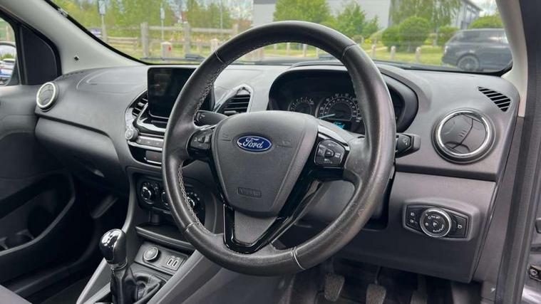 Auto start and stop system, Cruise control, Ford easy fuel, PAS, Speed limiter, Trip computer, Ford SYNC 3 DAB radio with 6.5" touch, emergency assistance, bluetooth, USB connectivity, applink, voice, steering wheel audio controls + 6 speakers, MP3 player, Body colour door handles, Body coloured bumpers, Body coloured door mirrors, Electrically operated door mirrors with side indicators, Electrically operated front windows, Front fog lamps with day running lights, Rear wiper, Upper front grille chrome surround, 3 rear head restraints, 60/40 split folding rear seat, Centre rear head restraint, Front floor mats, Front head restraints, Height adjustable driver's seat, Isofix, Leather wrapped steering wheel, Lodha cloth upholstery, Rake adjustable steering column, 3x3 point rear seatbelts, ABS, Curtain airbags, Deflation detection system, Driver and passenger airbags, Electronic Stability Programme (ESP), Front side airbags(head+thorax), Hill start assist, Passenger airbag + deactivate switch, TPMS (Tyre pressure monitoring system), Engine immobiliser, MyKey system, Perimeter alarm with remote central locking,