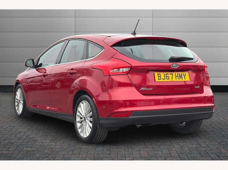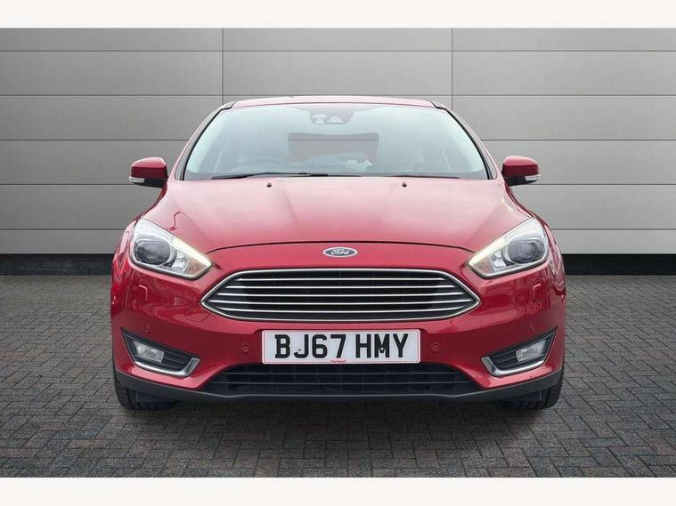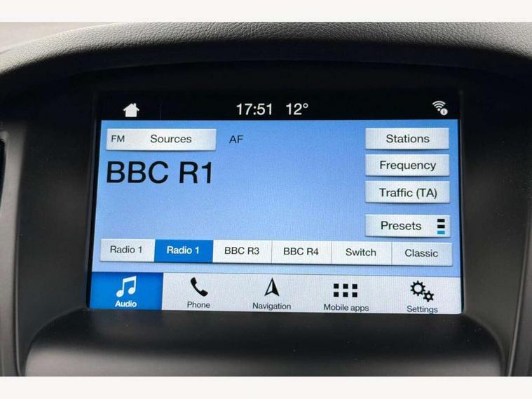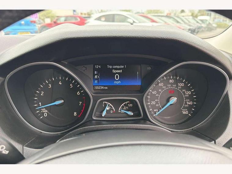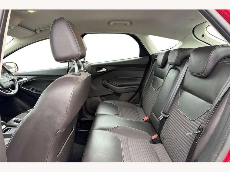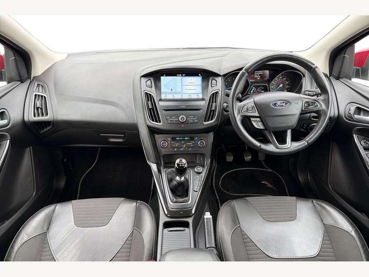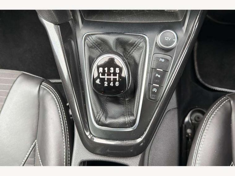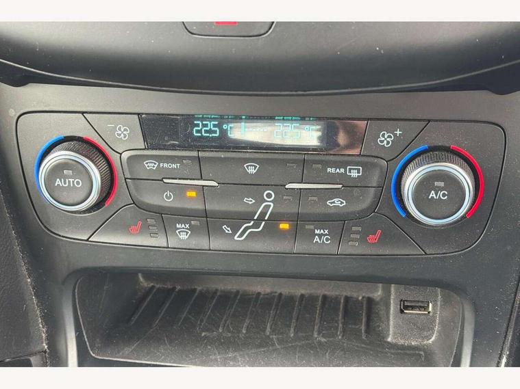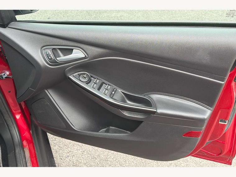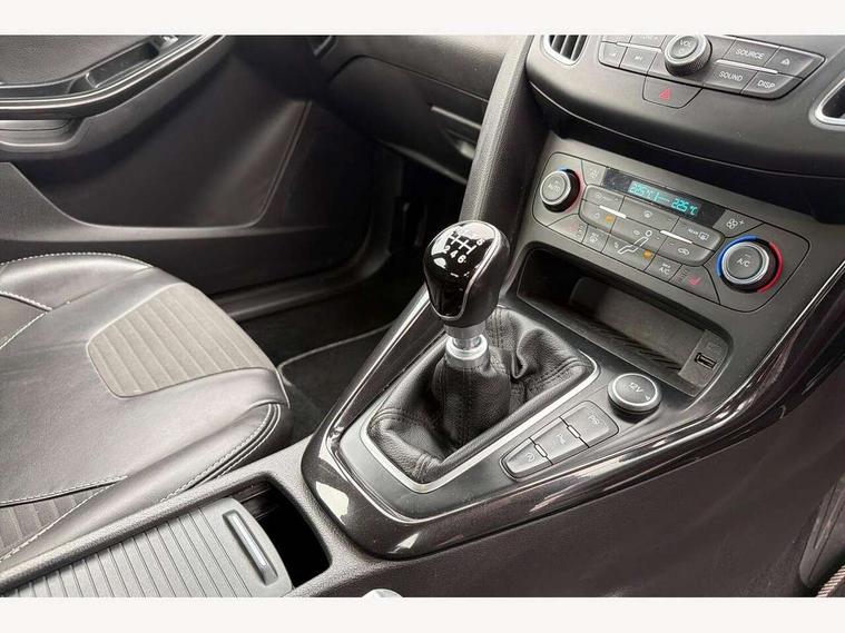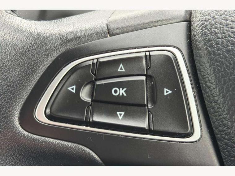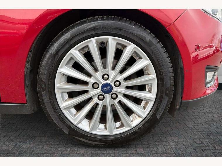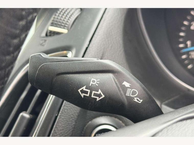 Cruise control + speed limiter, Digital clock, Easy fuel capless refuelling system, Eco mode, Electric boot release, Front and rear parking sensors, Park assist system with steering assist, PAS, Rear view camera, TFT cluster screen, Trip computer, 6 speakers, Aux input, Steering column with mounted audio controls, SYNC 2 DAB radio/CD, 8" colour touch screen, emergency assistance, Bluetooth connection, advanced voice control, USB connection, 'Quickclear' heated windscreen/heated washer jets, Adaptive front lighting system, Auto dimming rear view mirror, Automatic headlights, Automatic rain sensing wipers, Bi-Xenon headlights and headlight washers, Body colour bumpers, Body colour door handles, Body colour door mirrors, Body colour rear spoiler, Chrome finish on upper door line, Chrome radiator grille and surround, Electric adjustable heated door mirrors, Front fog lights, Front variable intermittent wipers with electric wash, Heated rear window, LED daytime running lights, Tailgate wash/wipe, 3 spoke leather steering wheel, 60/40 split back and cushion rear seats with 2 height adjustable headrests, Advanced multicolour ambient light and LED interior light, Centre console storage box/armrest, Driver's seat electric height adjustment, Driver's seat with adjustable lumbar support, Dual electronic automatic temperature control air conditioning - CFC-free, Height adjustable front headrests, Isofix child seat preparation, Passenger seat height/lumbar adjustment, Reach + rake adjustable steering column, Sports style front seats, ABS+Electronic Brake force Distribution, Active city stop, Driver airbag, ESP with traction control + emergency brake assist, Front inertia reel height adjustable seatbelts with pre-tensioners, Front passenger airbag, Front side airbags, Hill start assist, Side curtain airbags, Three rear inertia reel lap/diagonal seatbelts, Torque vectoring brake, Tyre pressure monitoring system, Immobiliser-Passive Anti-Theft System (PATS), Key free system, MyKey system, Remote central double locking, Thatcham Cat.1 alarm, Mini steel spare wheel,