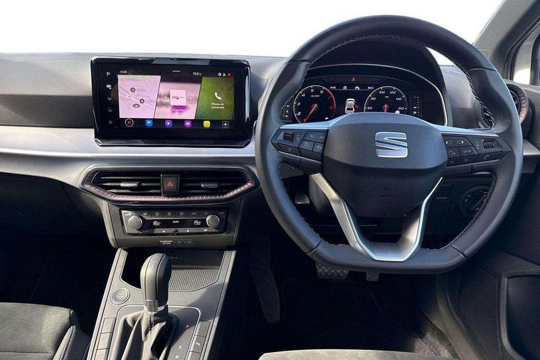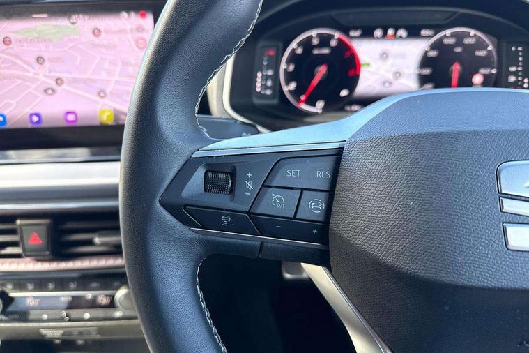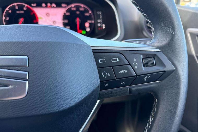 'Lights On' Reminder warning buzzer, 10" Digital cockpit, 9.2" touchscreen navigation system with type C USB socket, Voice control and DAB/AM/FM radio, Auto start and stop system, Bluetooth audio streaming with handsfree system, Digital clock, E-call, Front and rear parking sensors with rear view camera, Full link smartphone integration with mirror link, wireless apple carplay, Google android auto + USB Type C cable for apple and android devices, Lane assist, Low fuel warning light, Outside temperature gauge, Power Steering, Seat connect plus with safety, service, remote and online, SEAT drive profiles and ECO function, SEAT logo boot release, Speed limiter, Traffic sign recognition, Trip computer, Comfort suspension, Auxiliary input socket, Radio/MP3 player, SD card slot, Steering wheel mounted controls, Anti theft roof antenna, Atom grey door mirrors, Auto dimming rear view mirror, Automatic rain sensing wipers, Body colour bumpers, Body colour door handles, Chrome window surround and upper grille surround, Dark tinted rear windows, Electric adjustable/heated/folding door mirrors, Electric front windows, Electric headlight adjustment, Electric rear windows, Front/rear fog lights, FULL LED automatic headlights with dynamic headlight range control, coming and leaving home, LED daytime running lights, LED tail lights, Rear side wing doors, Rear wiper, Third brake light, 3 seat bench in 2nd row, 60/40 split folding rear seat, Ambient interior lighting, Chrome detailing and black headlining, Comfort seats, Dual zone climate control with combination filter, Front centre armrest, Front courtesy lights, Front cupholders x 2, Front reading lights, Gear shift indicator, Glovebox, Height adjustable front and rear headrests (five), Height adjustable front seats, Height/reach adjust steering wheel, Illuminated air vent surrounds, Illuminated boot, Instrument lighting with brightness control, Isofix, Leather multifunction flat bottomed sports steering wheel, Microsuede cloth upholstery, Passenger sunvisor, Single front passenger seat, Storage pockets on back of front seats, Sunvisors with mirror and driver side card holder, Safety and driving pack (M) - Ibiza, Safety and driving pack (S) - Ibiza, 3 point seatbelts on all 3 rear seats, ABS, Active front headrests, Child locks on rear doors, Electronic stability control, Energy recovery system, Front driver and passenger side airbags with curtain airbag and front passenger airbag deactivation, Hill hold control, Multi-Collision braking, Seat belt reminder for front and rear seats, Tiredness recognition system, Tyre pressure monitoring system, Electronic engine immobiliser, KESSY Keyless entry and go, Locking wheel bolts, Perimeter alarm and interior monitoring inc.backup horn, tow away protection and electronic engine immobiliser, Remote central locking + deadlocks, 18" Dynamic machined alloy wheels in Nuclear grey,