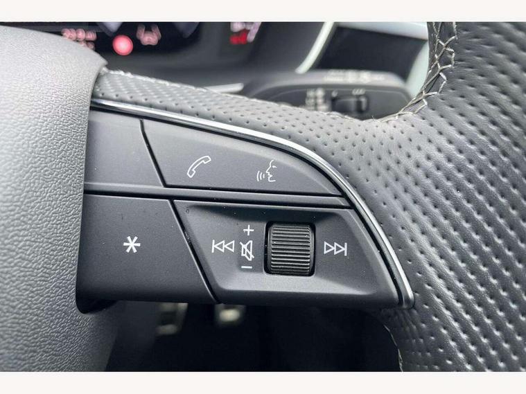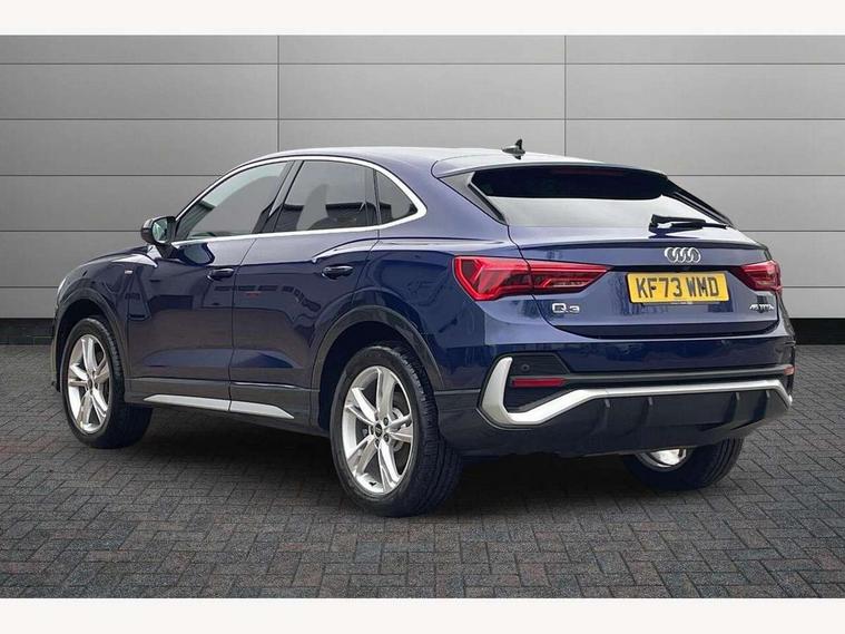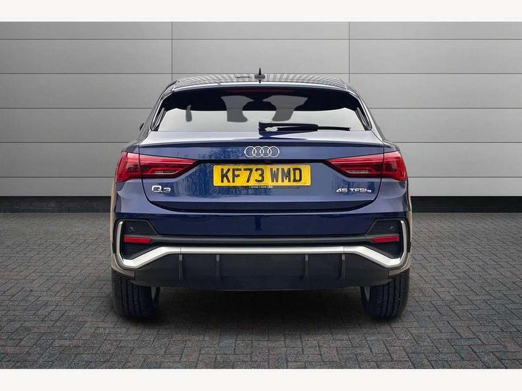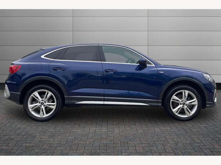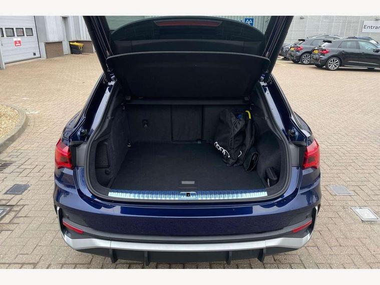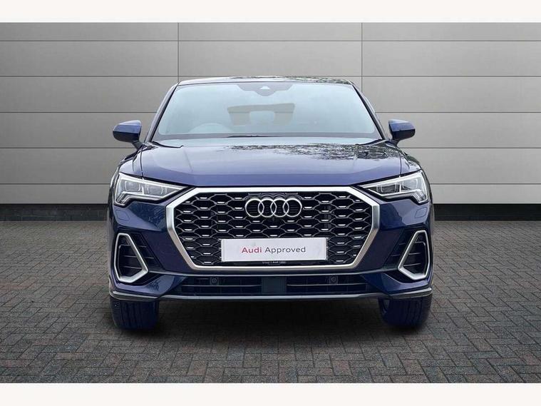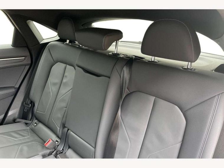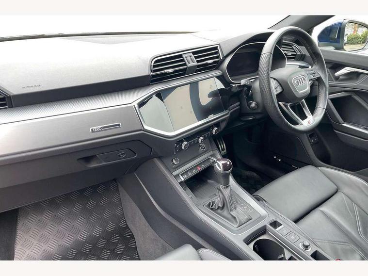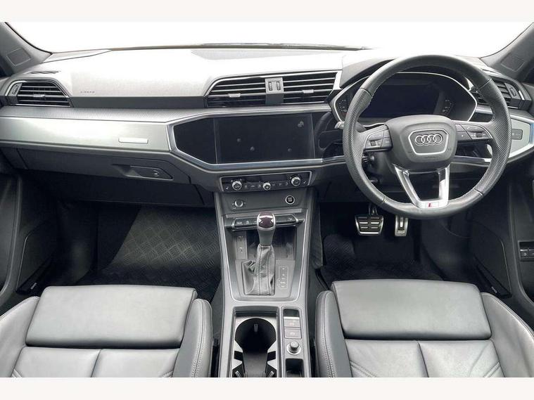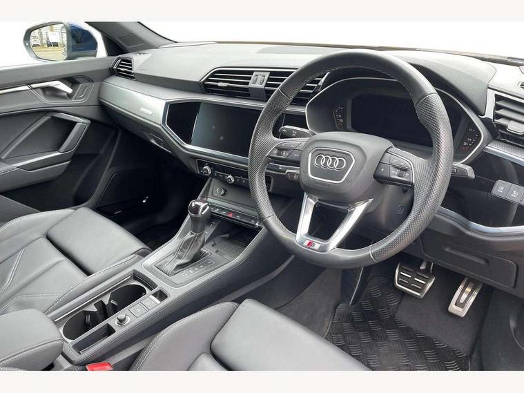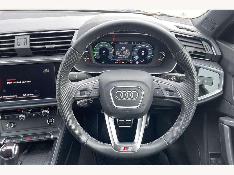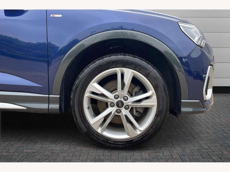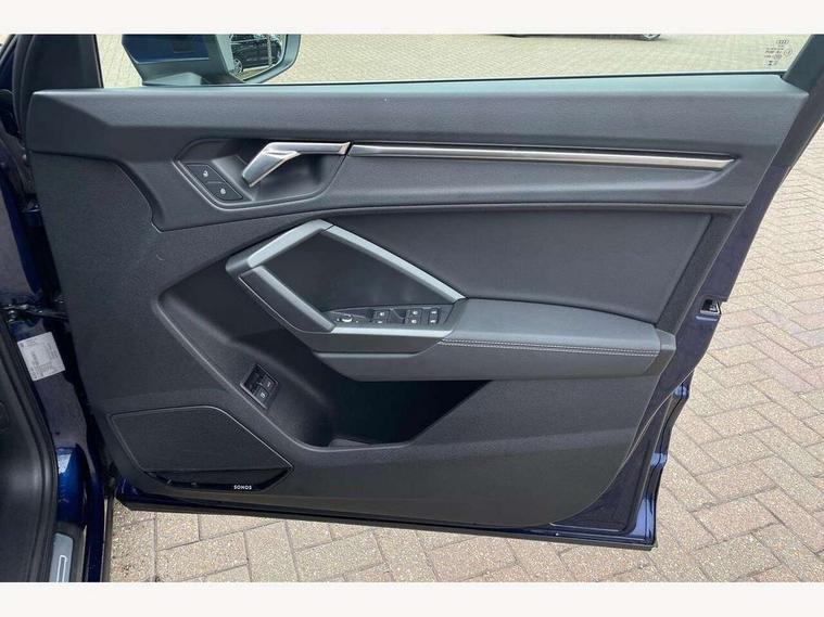 Audi drive select, Audi lane departure warning, Audi Virtual Cockpit - 10.25" display, Bluetooth interface, Camera based traffic sign recognition, Legal emergency call, MMI Navigation Plus with high resolution 10.1 inch touchscreen colour display, Power operated tailgate, Progressive steering, Service interval indicator, Smartphone interface includes wireless Apple carplay/Android Auto, Start stop system with recuperation, Voice control system with natural language interaction, 3 pin 10 amp domestic charging cable, 3.6 kw On-board charger, Standard suspension, Type 2 mode 3 32 amp charging cable, Type 2 socket for AC charging, 2 USB-C ports with charge and data functions, 6 passive loudspeakers, DAB digital radio module, Acoustic windscreen, Aluminium window trim, Auto dimming frameless rear view mirror, Diffuser grille in grained matt black, Diffuser trim in selenite silver, Electrically folding, adjustable and heated door mirrors with integrated LED side indicators and kerb view function for passenger side, Front and rear electric windows, Front fog lights, Front side air inlets in selenite silver, Front underbody protection in manhattan grey paint finish, Grille surround in aluminium silver matt, High gloss black finish B and C pillars, LED Dynamic rear indicators, LED headlights with LED daytime running lights, LED rear lights, LED third brake light, Privacy glass dark tinted rear and rear-side windows (from B-pillar backwards), Radiator grille in anthracite black with inlay in matt aluminium silver, Rain and light sensors, Rear side wing doors, Rear underbody protection in matt black, Rear wiper, S line badges on front wings, S line front and rear bumpers and side skirts in contrasting Manhattan grey paint finish, Side skirt insert in matt Platinium grey, Variable front intermittent wipers, 12V socket in rear centre console, 3 seat bench in 2nd row, 3 spoke leather multifunction steering wheel features S badging and grips in perforated leather with contrast stitching, 40:20:40 folding with manual adjustment for 60:40 forwards/backwards position and backrest angle, Adjustable rear seat bench/backrest with centre armrest and cupholder, Black cloth headlining, Dual zone electronic climate control, Front and rear black floor mats with contrast stitching, Front and rear headrests, Front and rear roof module including reading lights, Front centre armrest, Glove compartment lighting, Height and reach adjustable steering wheel, Illuminated door sill trims with S logo, ISOFIX child seat mounting for front passenger with airbag deactivation and outer rear seat including top tether attachment point for outer rear seats, Luggage compartment light right in white, Luggage compartment sill protection in stainless steel, Manual front seats with height adjustment, Perforated leather gearknob, Single front passenger seat, Stainless steel pedals, Ambient lighting pack - Q3, Non smoking pack - Q3, 3x3 point rear seatbelts, 6 airbags - Driver, front passenger, curtain and side windows, Audi pre-sense front with pedestrain and cyclist recognition, Electrically operated child locks on rear doors, Electromechanical parking brake, Electronic stabilisation control including ABS, ASR and EDL, Front seatbelt reminder, Hill descent control, Hill hold assist, Pre sense basic, Seatbelt monitoring, Tyre pressure warning, Warning triangle and first aid kit, Anti theft alarm, Anti theft wheel bolts, Immobiliser, Remote central locking, Aluminium look interior elements, Black dashboard, Dark matt brushed aluminium inlay, Detail dashboard around MMI touch colour display in glass look, black with surround in aluminium look, Leatherette door armrest, Tool kit, Tyre repair kit,