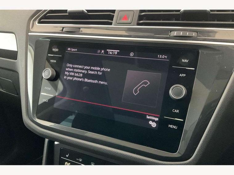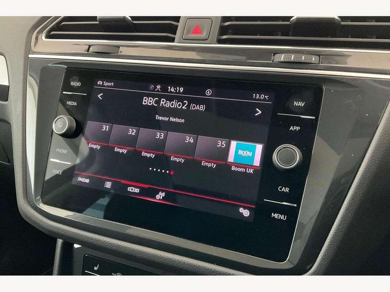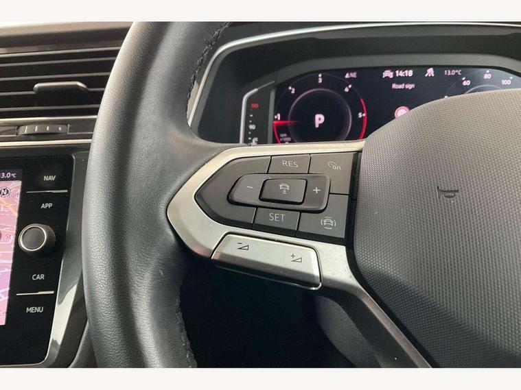 Adaptive cruise control ACC stop and go including speed limiter, App-Connect incl. App-Connect Wireless for Apple CarPlay and Android Auto, Bluetooth phone integration system, Distance control assist, Driver alert system, Driver profile selection, Dynamic road sign display, eCall emergency call system, Electromechanical speed sensitive power steering, Engine start/stop button, Lane keeping system Lane Assist, Lights on warning, Motorised electric tailgate operated via key fob, drivers door and foot movement under tailgate, Multifunction front facing camera, Outside temperature display, Premium multifunction display with multi colour display, Remote control boot opening, Rev counter, Revision / skills operating concept travel assistant, Service interval indicator, Speed limit display, Start/stop system with regenerative braking, Tailgate/trunk lid unlocking from outside, Trip computer, Warning sound and light for doors and tailgate open, All wheel drive - 4Motion, Battery regeneration during braking, Diesel particulate filter, Misfuel prevention device for diesel engine, Selective Catalytic Reduction, XDS electronic differential lock for improved traction and handling, 4 X 20 watt output, 8 speakers, Diversity antenna for FM reception, Radio, SD card slot, Simultaneous pairing of 2 compatible mobile devices, SMS functionality - read, compose and send SMS messages using touch-screen display, Title and cover art display, USB C ports, Aluminium door sill protectors, Auto dimming interior rear view mirror, Automatic headlight control system, Body colour door handles, Body coloured bumpers, Body coloured door mirrors with integrated indicators, Coming/leaving home lighting function, Dynamic headlight range control, Front and rear electric windows, Heated rear window, High level 3rd brake light, IQ light-Adv high beam, Dynamic light assist for LED matrix headlamp+LED separate DRL+DCL, dark red rear LED tech, Poor weather light+ cornering light, Laminated safety glass windshield, heat and sound insulating, LED rear number plate lights, Poor weather light and cornering light, Privacy glass for rear side windows and rear window, Rain sensor windscreen wipers, Rear exhaust tailpipe, Rear fog lamp, Rear side wing doors, Rear windscreen washer and wiper with interval delay, Side and rear windows in heat insulating glass, Tilting and sliding panoramic sunroof with rear panoramic sunroof, Trailer Stability Programme, Windscreen wipers/ intermittent wipe + 4 position delay, 12V outlet in center console rear and in luggage compartment, 12V outlet in front and tray, 2 cup holders in front, 2 LED front reading lights, 2 LED rear reading lights, 3 bench rear seats in 2nd row, 3 rear headrests, 4 load lashing points, 40:20:40 split folding rear seats, Air Care Climatronic 3 zone automatic climate control with enhanced air filter and controls in the rear, Backrest release for left front seat, Climate control unit rear with touch function, Door and side trim panel in foam film and woven fabric, Front centre armrest, Front footwell illumination, Front seats head restraints (x-adjustment), Height adjustable front seats, Height/reach adjust steering wheel, Instrument lighting white adjustable panel illumination, Interior light with delay, Isofix Preparation 2 Rear child seats, Leather gear knob, Lockable cooled glovebox, Luggage compartment lighting, Luggage net, Rear bench seat asymetrically split folding, longitudinally movable and folding with load-through hatch and center armrest, Remote unlocking for rear seat backrest, Removable luggage cover, Removable rear headrests, Safety optimised front head restraints, Single front passenger seat, Sliding/reclining rear seats, Standard rear seat release, Storage compartment in driver's door, Storage compartment in passenger's door, Storage compartment in rear doors, Storage compartments in luggage area left and right, Storage tray on dashboard, Sun visors with illuminated vanity mirrors, Tool kit, Top front comfort seats, Variable boot floor, height adjustable and removable, Easy open and close pack with safelock - Tiguan, 3 point seat belt for centre rear seats, 3 point seat belts with seat belt pretensioners for the outer rear seats, Active bonnet, Curtain airbags for front and rear passengers, Driver/Front Passenger airbags, Drivers knee airbag, Electronic parking brake with auto hold, Electronic Stability Control with driver steering recommendation, ABS, ASR, EDL, EDTC and trailer stabilization, Front assist with autonomous emergency braking (for Adaptive Cruise Control ACC up to 130 mph), Front disc brakes, Front passenger airbag deactivation, Front side airbags, Height adjustable front 3 point seatbelts + pretensioners, Hill hold control, Manual child proof rear door locks, Pedestrian monitoring system, Power assisted brakes, Proactive passenger protection system in combination with front assist, Rear disc brakes, Rigid safety cell with front and rear crumple zones, Two tone horn, Warning sound and light for front seat belts if unfastened, Anti theft alarm system with interior monitoring, backup horn and towing protection, Anti theft wheel bolts, Central locking system with safelock radio remote control and 2 remote control folding keys, Electronic engine immobiliser,